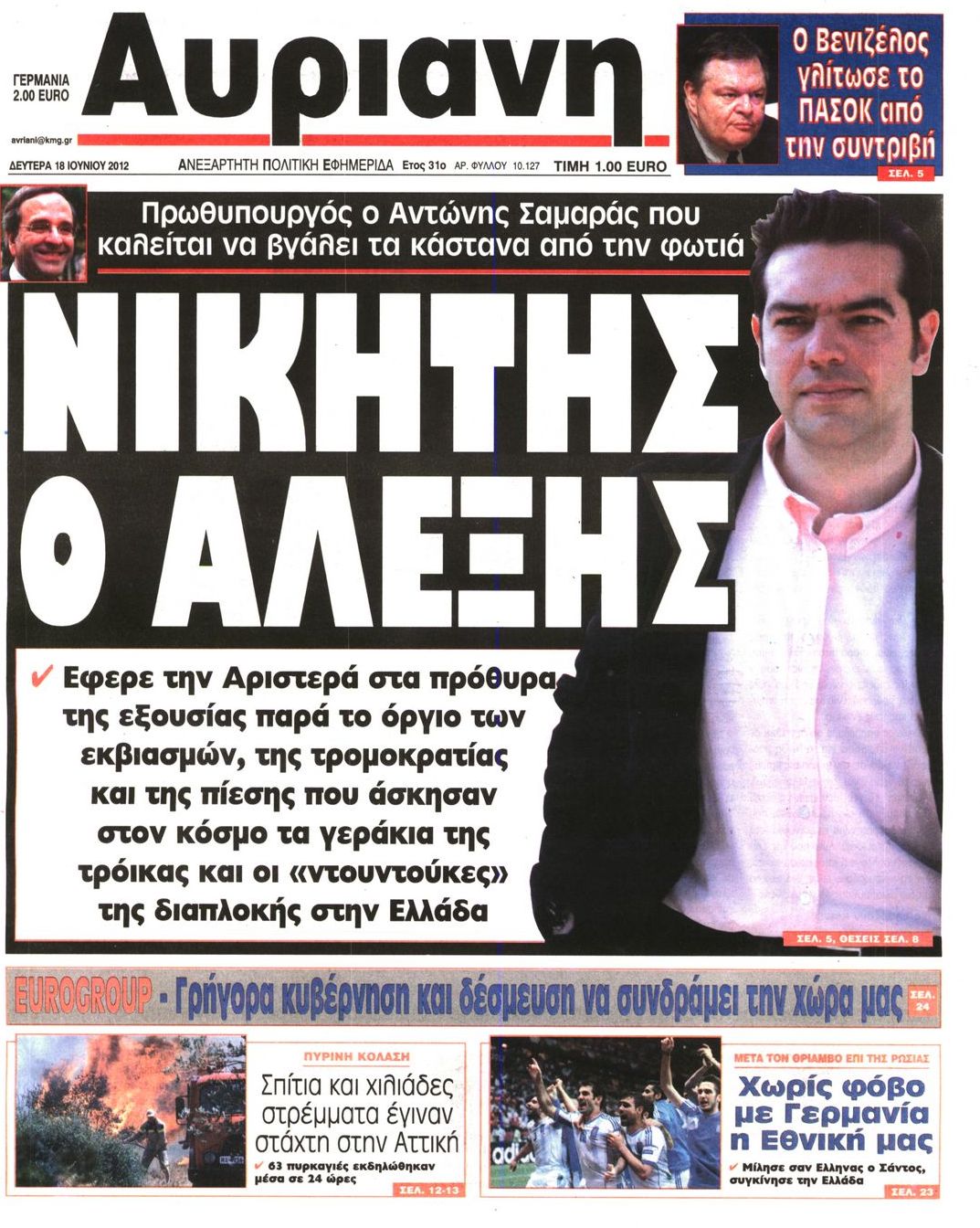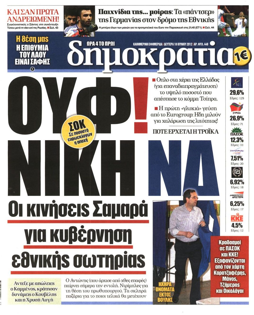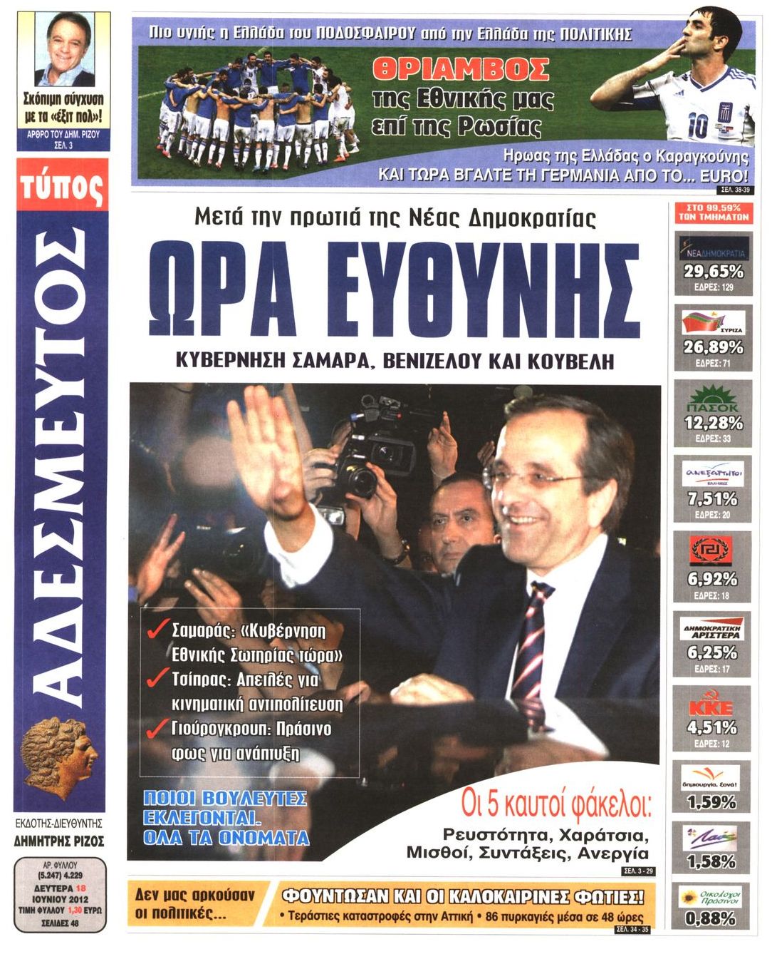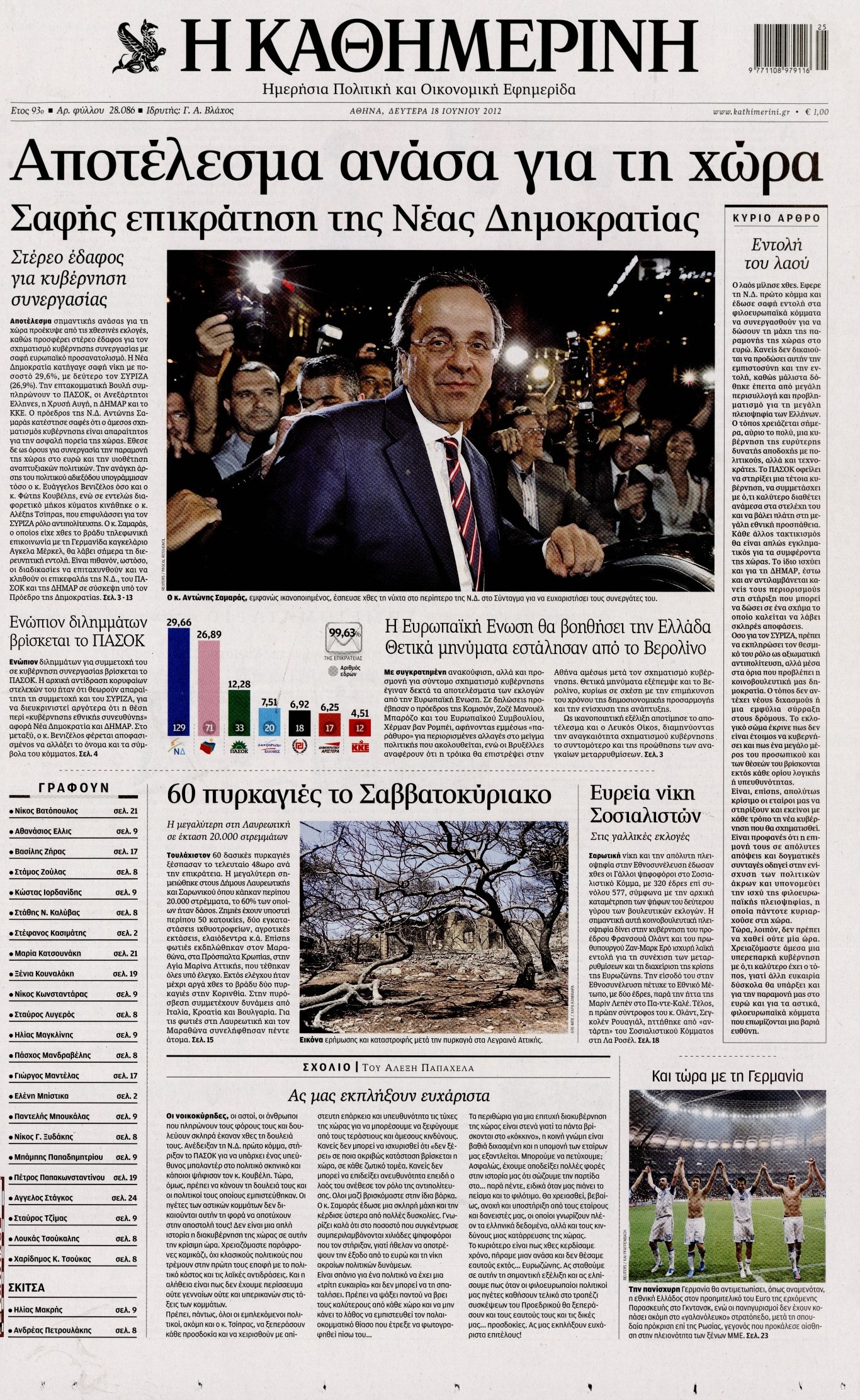 Τα πρωτοσέλιδα των εφημερίδων Enikos Newsroom 07:33, Δευτέρα 18 Ιουνίου 2012 Media ΕΦΗΜΕΡΙΔΕΣ ΠΡΩΤΟΣΕΛΙΔΑ Μοιράσου το: σχολίασε κι εσύ (0 σχόλια) Ακολουθήστε το enikos.gr στο Google News και μάθετε πρώτοι όλες τις ειδήσεις Δείτε όλες τις τελευταίες ειδήσεις από την Ελλάδα και τον Κόσμο στο enikos.gr Ειδήσεις Ροή Ειδήσεων 8 ώρες πριν Μητσοτάκης: Αναγκαία η μεταρρύθμιση του πρωτογενούς τομέα – Τα 6 νέα μέτρα για το στεγαστικό και οι αναφορές σε «Ιθάκη» και «πολιτικούς του καναπέ» 7 ώρες πριν Δάνεια σε ελβετικό φράγκο: Τα βασικά σημεία της ρύθμισης – ανάσας για 40.000 δανειολήπτες – Αναλυτικός οδηγός με ερωτήσεις και απαντήσεις 7 ώρες πριν Κυψέλη: Εξιτήριο πήρε η 14χρονη μαθήτρια που μαχαιρώθηκε από την 16χρονη σε σχολείο – «Θέλω να βοηθήσω το παιδί, έχει μπλέξει με κακές παρέες» 7 ώρες πριν Τραμπ: Γιατί κατέθεσε τώρα την αγωγή κατά του BBC – Πώς η κίνησή του εξυπηρετεί το νέο δόγμα του για «αντίσταση» στην Ευρώπη, υπέρ των συντηρητικών 8 ώρες πριν ΟΠΕΚΕΠΕ – Παράνομες επιδοτήσεις: Ελεύθεροι με περιοριστικούς όρους και οι 7 κατηγορούμενοι που απολογήθηκαν σήμερα 7 ώρες πριν Ανακαλύφθηκε βυθισμένη πέτρινη κατασκευή ανοιχτά της Κριμαίας – Αποτελεί μέρος αρχαίας ελληνικής αποικίας 8 ώρες πριν Ύπνος: Αυτό μπορεί να είναι το χειρότερο λάθος για το βιολογικό ρολόι σας, σύμφωνα με ειδικό 9 ώρες πριν Αριθμολογία: Οι άνθρωποι που έχουν γεννηθεί αυτές τις 3 ημερομηνίες, προσελκύουν μεγάλη τύχη πριν από το τέλος του 2025 11 ώρες πριν Οι 7 συμπεριφορές που μαρτυρούν ότι ένας άνδρας επενδύει μακροπρόθεσμα σε μια σχέση 8 λεπτά πριν Τα ζώδια σήμερα, Τετάρτη 17 Δεκεμβρίου: Κριοί, η αυτοπεποίθησή σας ενισχύεται 15 λεπτά πριν Εφημερεύοντα φαρμακεία σε Αθήνα και Θεσσαλονίκη (17/12) 21 λεπτά πριν Κόστα Ρίκα: Το Κογκρέσο απέρριψε το αίτημα για άρση της ασυλίας του προέδρου Τσάβες 29 λεπτά πριν Κολομβία: Νεκροί τέσσερις αστυνομικοί σε βομβιστικές επιθέσεις ανταρτών 37 λεπτά πριν Στάση εργασίας 11:00 – 17:00 σήμερα στα λεωφορεία του ΟΑΣΑ – Ποιες γραμμές θα λειτουργήσουν ENIKOS NETWORK Αίτημα ΙΣΑ για την εξαίρεση των προσωπικών γιατρών από τις κατ’ οίκον επισκέψεις Η σκανδιναβική μέθοδος στον ύπνο που μπορεί να σώσει έναν γάμο Πιερρακάκης: Ο προϋπολογισμός συμβάλλει ουσιαστικά στην ενίσχυση της αγοραστικής δύναμης της πλειονότητας των εργαζομένων e-ΕΦΚΑ: Παρατείνεται η προθεσμία για την υποβολή ΑΠΔ – Ποιους αφορά Σύγχρονος Νοστράδαμος: Προειδοποιεί για «μεγάλο γεγονός» τους επόμενους μήνες που θα συγκλονίσει τη Βρετανία και τον κόσμο Τεστ παρατηρητικότητας: Μπορείτε να βρείτε τις 3 διαφορές στις εικόνες με έναν πιγκουίνο σε 14 δευτερόλεπτα περισσότερα 20:06 , Τρίτη 16 Δεκεμβρίου 2025 Ο ΣΚΑΙ καταγγέλλει τον ΕΚΚΟΜΕΔ Επιστολή με την οποία καταγράφει την έντονη διαμαρτυρία του προς τον διευθύνοντα σύμβουλο του... 17:40 , Τρίτη 16 Δεκεμβρίου 2025 Eurovision: Στις 4 Ιανουαρίου αποκαλύπτονται τα 28 τραγούδια του ελληνικού τελικού Η αγωνία τελειώνει, η γιορτή της Eurovision αρχίζει στην ΕΡΤ από τις πρώτες ημέρες της νέας χρ... 17:09 , Τρίτη 16 Δεκεμβρίου 2025 Alter Ego Media: Βαθύτατη θλίψη και ειλικρινή συλλυπητήρια για την απώλεια της Ειρήνης Μαρινάκη Τη βαθύτατη θλίψη και τα ειλικρινή συλλυπητήριά της εκφράζει η Alter Ego Media για τον θάνατο ... 13:00 , Τρίτη 16 Δεκεμβρίου 2025 «Στο Παρά Πέντε – 20 Χρόνια Μετά»: Κυκλοφόρησε το τρέιλερ του επετειακού επεισοδίου της θρυλικής σειράς – Πότε θα προβληθεί Η αντίστροφη μέτρηση για το πλέον αναμενόμενο και νοσταλγικό Reunion τη