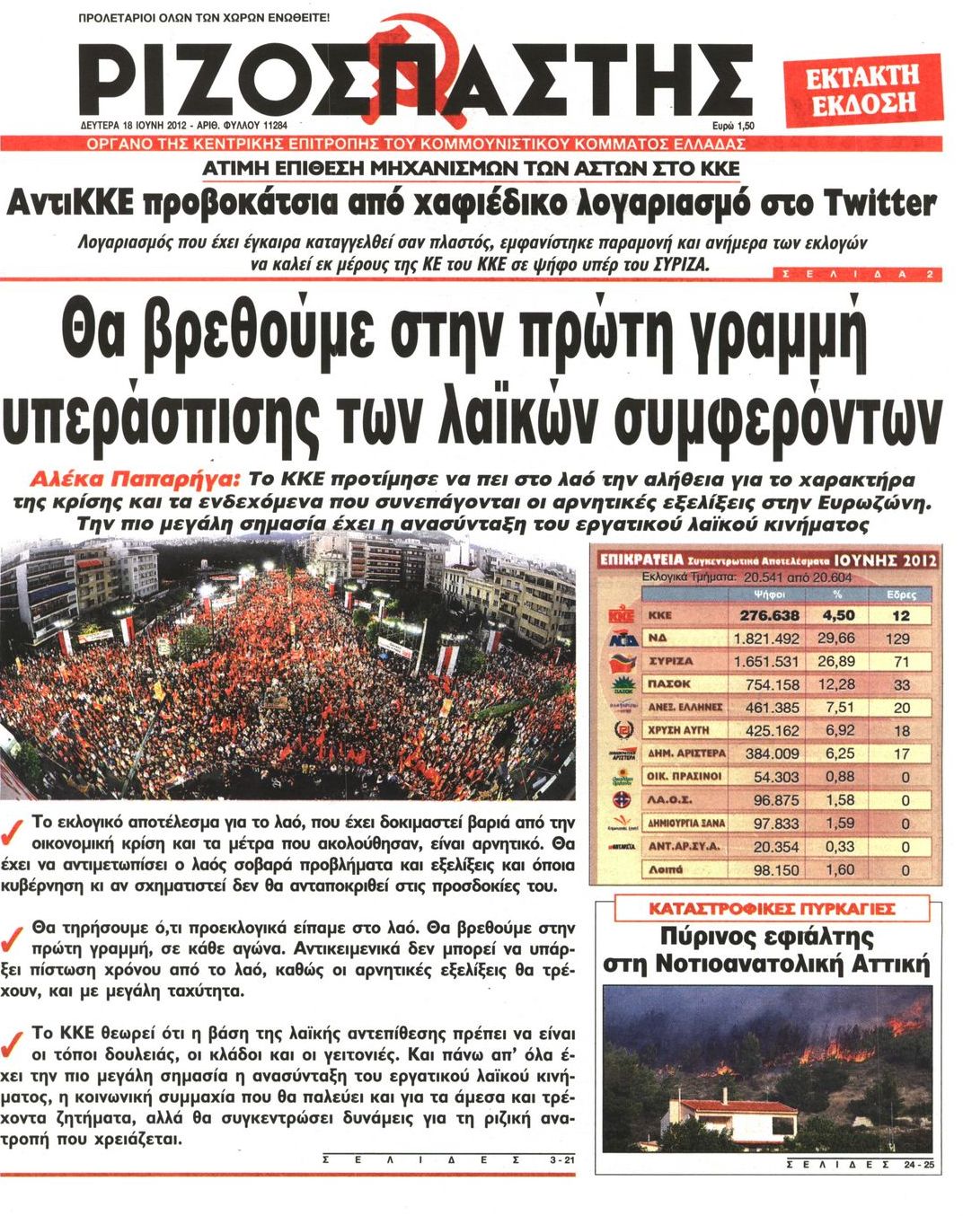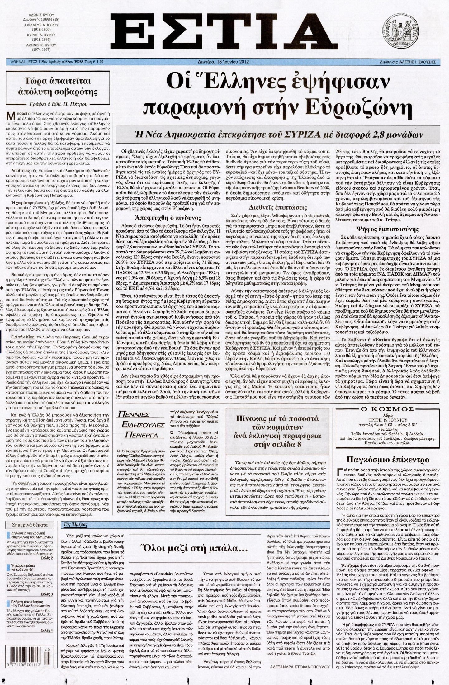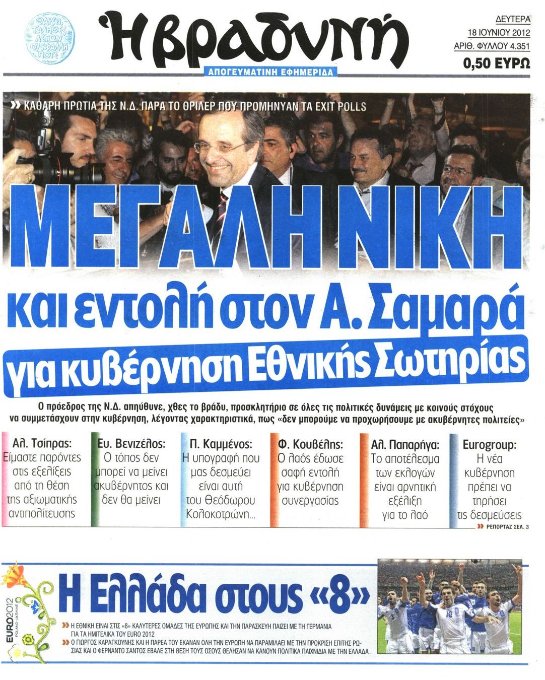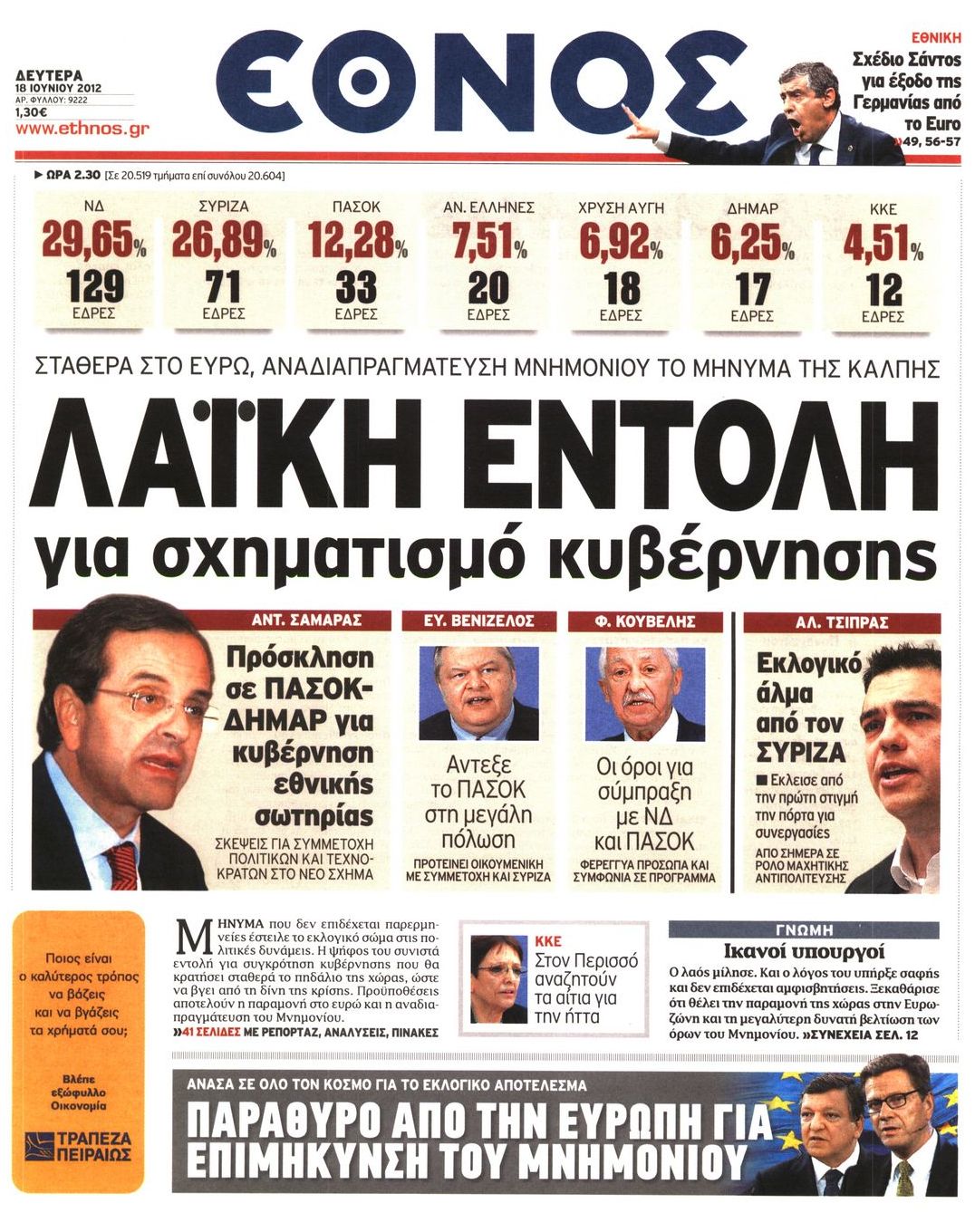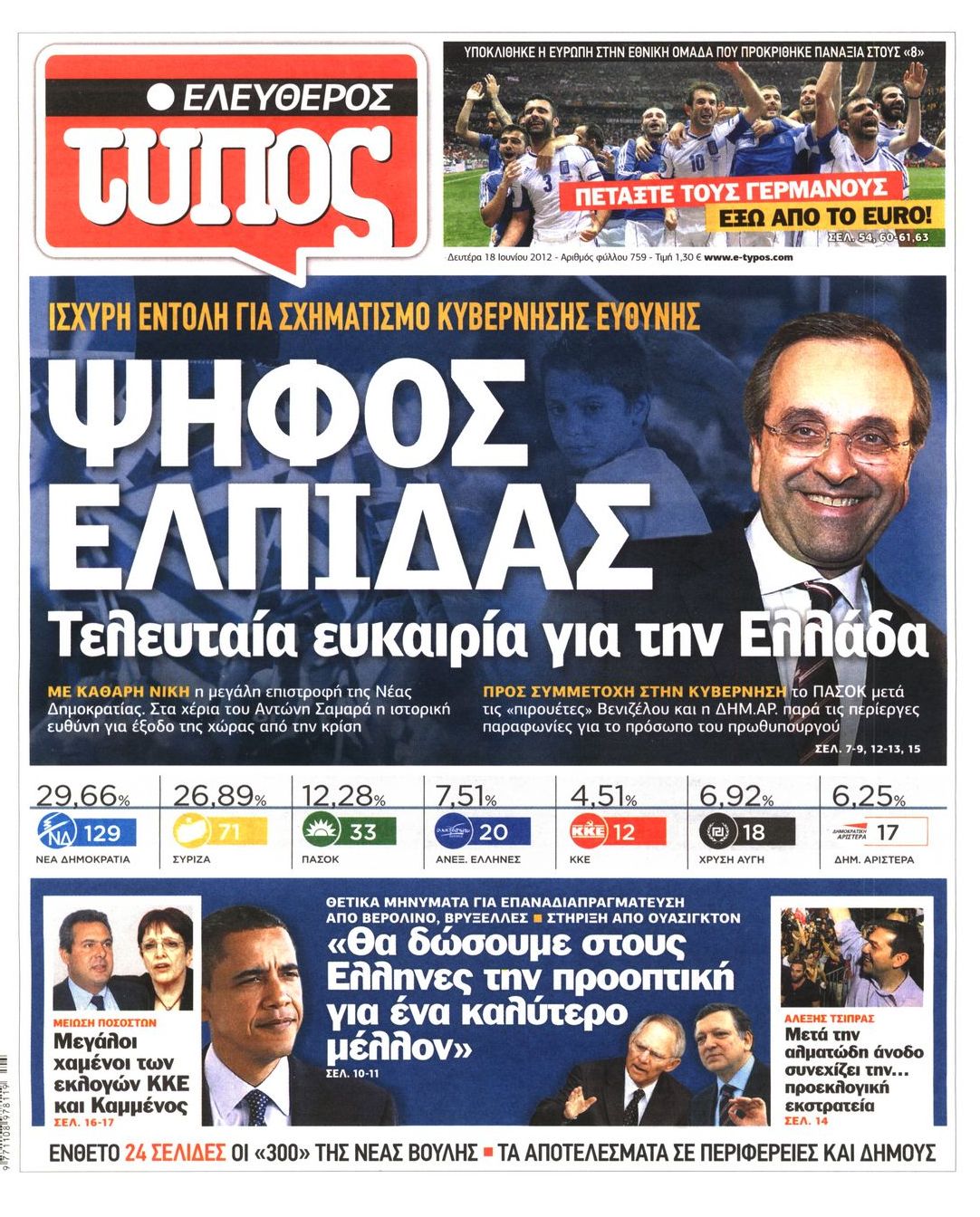 Τα πρωτοσέλιδα των εφημερίδων Enikos Newsroom 07:33, Δευτέρα 18 Ιουνίου 2012 Media ΕΦΗΜΕΡΙΔΕΣ ΠΡΩΤΟΣΕΛΙΔΑ Μοιράσου το: σχολίασε κι εσύ (0 σχόλια) Ακολουθήστε το enikos.gr στο Google News και μάθετε πρώτοι όλες τις ειδήσεις Δείτε όλες τις τελευταίες ειδήσεις από την Ελλάδα και τον Κόσμο στο enikos.gr Ειδήσεις Ροή Ειδήσεων 8 ώρες πριν Μητσοτάκης: Αναγκαία η μεταρρύθμιση του πρωτογενούς τομέα – Τα 6 νέα μέτρα για το στεγαστικό και οι αναφορές σε «Ιθάκη» και «πολιτικούς του καναπέ» 7 ώρες πριν Δάνεια σε ελβετικό φράγκο: Τα βασικά σημεία της ρύθμισης – ανάσας για 40.000 δανειολήπτες – Αναλυτικός οδηγός με ερωτήσεις και απαντήσεις 7 ώρες πριν Κυψέλη: Εξιτήριο πήρε η 14χρονη μαθήτρια που μαχαιρώθηκε από την 16χρονη σε σχολείο – «Θέλω να βοηθήσω το παιδί, έχει μπλέξει με κακές παρέες» 7 ώρες πριν Τραμπ: Γιατί κατέθεσε τώρα την αγωγή κατά του BBC – Πώς η κίνησή του εξυπηρετεί το νέο δόγμα του για «αντίσταση» στην Ευρώπη, υπέρ των συντηρητικών 8 ώρες πριν ΟΠΕΚΕΠΕ – Παράνομες επιδοτήσεις: Ελεύθεροι με περιοριστικούς όρους και οι 7 κατηγορούμενοι που απολογήθηκαν σήμερα 7 ώρες πριν Ανακαλύφθηκε βυθισμένη πέτρινη κατασκευή ανοιχτά της Κριμαίας – Αποτελεί μέρος αρχαίας ελληνικής αποικίας 8 ώρες πριν Ύπνος: Αυτό μπορεί να είναι το χειρότερο λάθος για το βιολογικό ρολόι σας, σύμφωνα με ειδικό 9 ώρες πριν Αριθμολογία: Οι άνθρωποι που έχουν γεννηθεί αυτές τις 3 ημερομηνίες, προσελκύουν μεγάλη τύχη πριν από το τέλος του 2025 11 ώρες πριν Οι 7 συμπεριφορές που μαρτυρούν ότι ένας άνδρας επενδύει μακροπρόθεσμα σε μια σχέση 8 λεπτά πριν Τα ζώδια σήμερα, Τετάρτη 17 Δεκεμβρίου: Κριοί, η αυτοπεποίθησή σας ενισχύεται 15 λεπτά πριν Εφημερεύοντα φαρμακεία σε Αθήνα και Θεσσαλονίκη (17/12) 21 λεπτά πριν Κόστα Ρίκα: Το Κογκρέσο απέρριψε το αίτημα για άρση της ασυλίας του προέδρου Τσάβες 29 λεπτά πριν Κολομβία: Νεκροί τέσσερις αστυνομικοί σε βομβιστικές επιθέσεις ανταρτών 37 λεπτά πριν Στάση εργασίας 11:00 – 17:00 σήμερα στα λεωφορεία του ΟΑΣΑ – Ποιες γραμμές θα λειτουργήσουν ENIKOS NETWORK Αίτημα ΙΣΑ για την εξαίρεση των προσωπικών γιατρών από τις κατ’ οίκον επισκέψεις Η σκανδιναβική μέθοδος στον ύπνο που μπορεί να σώσει έναν γάμο Πιερρακάκης: Ο προϋπολογισμός συμβάλλει ουσιαστικά στην ενίσχυση της αγοραστικής δύναμης της πλειονότητας των εργαζομένων e-ΕΦΚΑ: Παρατείνεται η προθεσμία για την υποβολή ΑΠΔ – Ποιους αφορά Σύγχρονος Νοστράδαμος: Προειδοποιεί για «μεγάλο γεγονός» τους επόμενους μήνες που θα συγκλονίσει τη Βρετανία και τον κόσμο Τεστ παρατηρητικότητας: Μπορείτε να βρείτε τις 3 διαφορές στις εικόνες με έναν πιγκουίνο σε 14 δευτερόλεπτα περισσότερα 20:06 , Τρίτη 16 Δεκεμβρίου 2025 Ο ΣΚΑΙ καταγγέλλει τον ΕΚΚΟΜΕΔ Επιστολή με την οποία καταγράφει την έντονη διαμαρτυρία του προς τον διευθύνοντα σύμβουλο του... 17:40 , Τρίτη 16 Δεκεμβρίου 2025 Eurovision: Στις 4 Ιανουαρίου αποκαλύπτονται τα 28 τραγούδια του ελληνικού τελικού Η αγωνία τελειώνει, η γιορτή της Eurovision αρχίζει στην ΕΡΤ από τις πρώτες ημέρες της νέας χρ... 17:09 , Τρίτη 16 Δεκεμβρίου 2025 Alter Ego Media: Βαθύτατη θλίψη και ειλικρινή συλλυπητήρια για την απώλεια της Ειρήνης Μαρινάκη Τη βαθύτατη θλίψη και τα ειλικρινή συλλυπητήριά της εκφράζει η Alter Ego Media για τον θάνατο ... 13:00 , Τρίτη 16 Δεκεμβρίου 2025 «Στο Παρά Πέντε – 20 Χρόνια Μετά»: Κυκλοφόρησε το τρέιλερ του επετειακού επεισοδίου της θρυλικής σειράς – Πότε θα προβληθεί Η αντίστροφη μέτρηση για το πλέον αναμενόμενο και νοσταλγικό Reunion τη