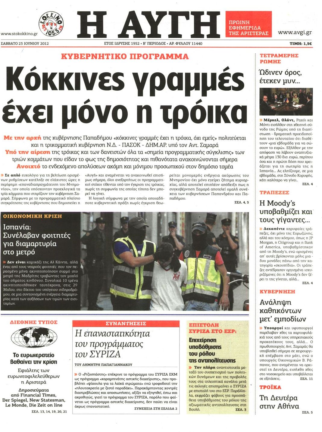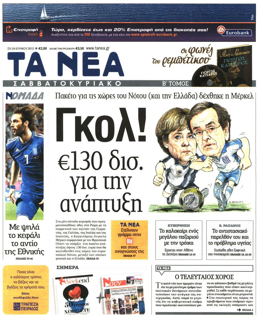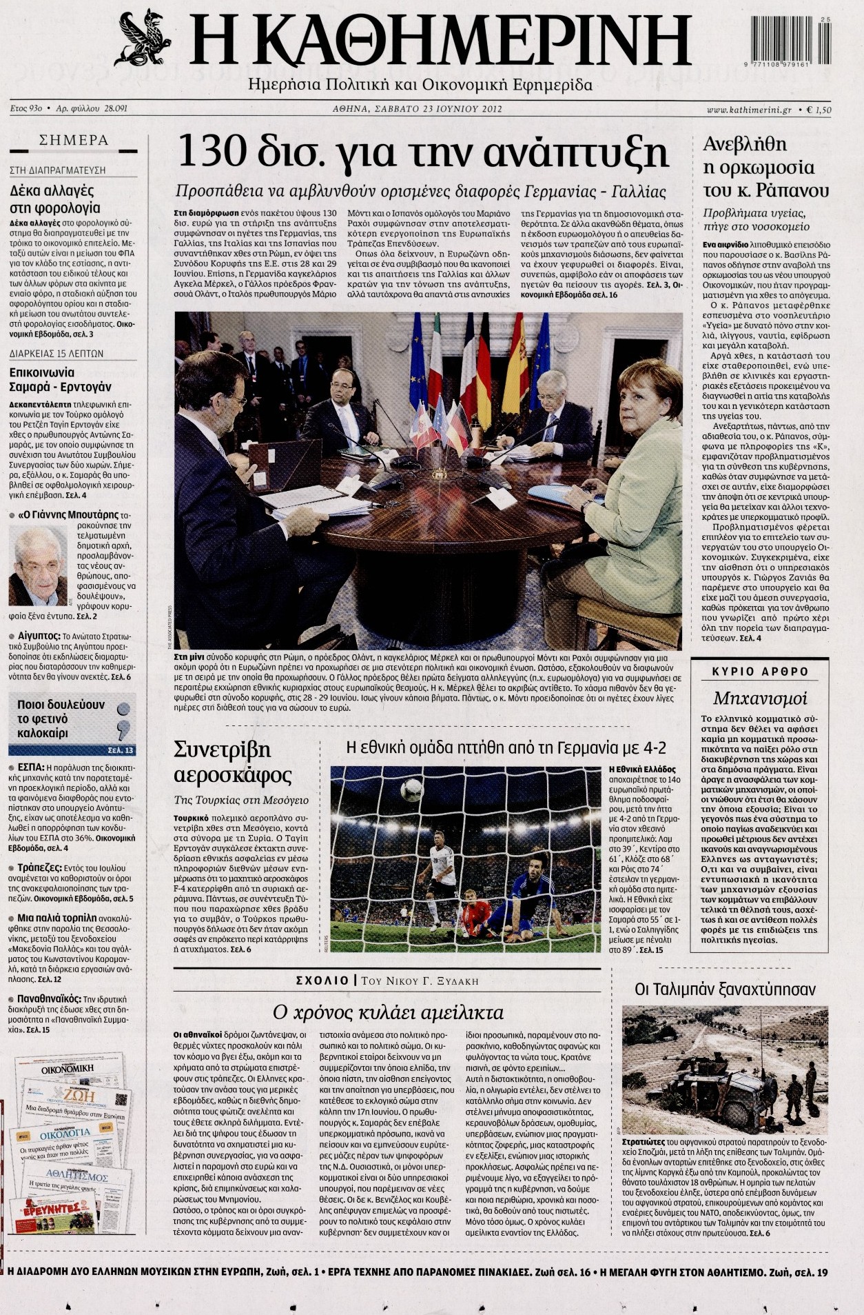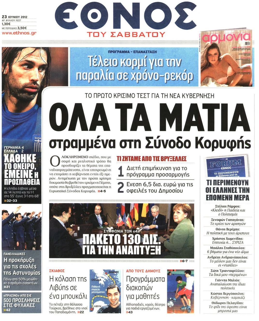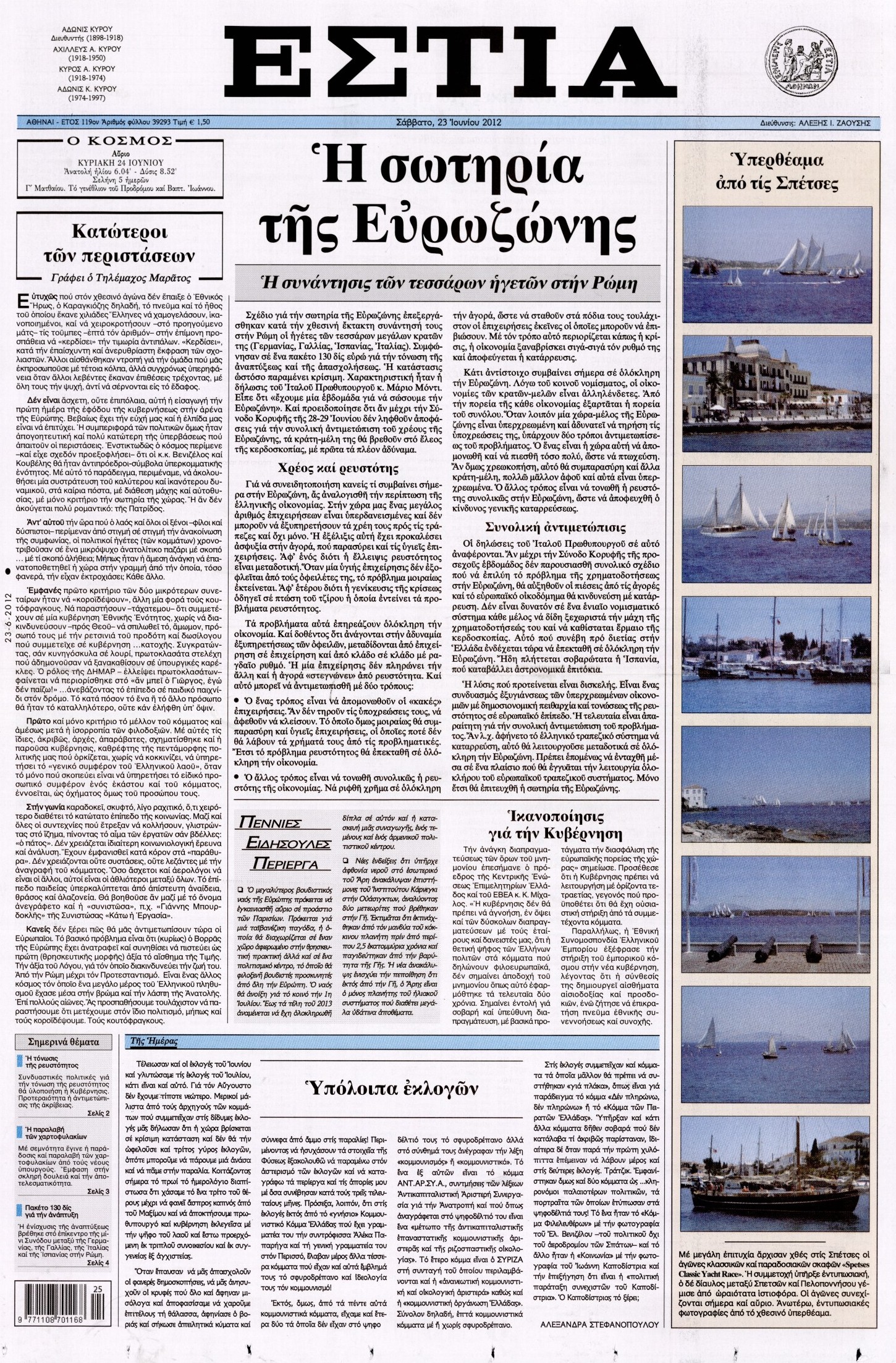 Τα πρωτοσέλιδα των εφημερίδων Enikos Newsroom 07:18, Σάββατο 23 Ιουνίου 2012 Media ΕΦΗΜΕΡΙΔΕΣ ΠΡΩΤΟΣΕΛΙΔΑ Μοιράσου το: σχολίασε κι εσύ (0 σχόλια) Ακολουθήστε το enikos.gr στο Google News και μάθετε πρώτοι όλες τις ειδήσεις Δείτε όλες τις τελευταίες ειδήσεις από την Ελλάδα και τον Κόσμο στο enikos.gr Ειδήσεις Ροή Ειδήσεων 2 ώρες πριν Εκτός ευρωομάδας ΣΥΡΙΖΑ ο Νίκος Παππάς μετά την επίθεση στον δημοσιογράφο Νίκο Γιαννόπουλο – Η μήνυση και οι νέες δηλώσεις 2 ώρες πριν «Αγριεύουν» οι αγρότες: «Δεν συντρέχει λόγος συνάντησης με τον πρωθυπουργό» – Ώρα αποφάσεων στη σύσκεψη της Πέμπτης 2 ώρες πριν Κυψέλη: Χωρίς την οικογένειά της δίπλα της απολογήθηκε η 16χρονη – «Της είχε επιτεθεί κάποιος για να την βιάσει, φοβήθηκε και κυκλοφορούσε με μαχαίρι» 1 ώρα πριν Politico: Το πρόβλημα της Ευρώπης δεν είναι το Βέλγιο αλλά ο Ντόναλντ Τραμπ 3 ώρες πριν Αλεξανδρούπολη: Πολυοργανική ανεπάρκεια λόγω υποσιτισμού η αιτία θανάτου του 3χρονου αγοριού 2 ώρες πριν Μυστήριο με τεράστιες κυκλικές πέτρες 200 κιλών – Ανακαλύφθηκαν τυχαία κατά τη διάρκεια οδικών έργων και κανείς δεν ξέρει από πού προέρχονται 3 ώρες πριν Ύπνος: Ειδικός εξηγεί τον πραγματικό λόγο που ξυπνάτε στις 4 τα ξημερώματα – Ο ρόλος των ορμονών και του κιρκάδιου ρυθμού 4 ώρες πριν Αριθμολογία: Οι άνθρωποι που έχουν γεννηθεί αυτές τις 4 ημερομηνίες, είναι τρυφεροί και αγαπούν ανιδιοτελώς 15 ώρες πριν 20 χρόνια τα Χριστούγεννα ξεκινούν στα Public με μεγάλη ποικιλία σε δώρα! 12 λεπτά πριν Βέλγους πολιτικούς και επικεφαλής χρηματοπιστωτικών ιδρυμάτων στοχοποιεί η Μόσχα για τα κατασχεθέντα περιουσιακά στοιχεία 26 λεπτά πριν ΗΠΑ: Αναζητείται δεύτερος ύποπτος για την επίθεση στο πανεπιστήμιο Μπράουν 42 λεπτά πριν Λεωφόρος Αλεξάνδρας: Δεν εντοπίστηκε βόμβα έξω από το κολλέγιο – Προσήχθη άνδρας για το προειδοποιητικό σημείωμα 58 λεπτά πριν Ελένη Κρίτα για το reunion του «Παρά Πέντε»: «Ήταν πραγματικά σαν να μην είχαμε χαθεί ποτέ» 1 ώρα πριν Κύπελλο Ελλάδας: Αυτά είναι τα ζευγάρια στα νοκ-άουτ, οι διασταυρώσεις στους «8» κι ο δρόμος προς τον τελικό ENIKOS NETWORK Αϋπνία: Το κόλπο που θα σας βοηθήσει να κοιμηθείτε απόψε – Είναι απλό και έχει αποτέλεσμα 2,6 εκατομμύρια πολίτες έχουν ήδη εμβολιαστεί κατά της γρίπης ΕΛΣΤΑΤ: Τι δείχνουν τα νέα στοιχεία για τις ηλεκτρονικές παραγγελίες των επιχειρήσεων ΚΕΠΕ: Οι 3 διακριτές συμβολές των ΜμΕ και της μεταποίησης στην ελληνική οικονομία Χαρτογραφώντας το «σημείο χωρίς επιστροφή»: Για πρώτη φορά αποκαλύπτεται με λεπτομέρεια το ακανθώδες όριο της ατμόσφαιρας τ... Η Google καταργεί τη λειτουργία «dark web report» – Πώς θα μπορούν οι χρήστες να διαγράφουν τα δεδομένα τους περισσότερα 22:24 , Τετάρτη 17 Δεκεμβρίου 2025 Το Σπίτι Δίπλα Στο Ποτάμι: Σε κίνδυνο η υγεία του Απόστολου – Τι θα δούμε απόψε “Το Σπίτι Δίπλα στο Ποτάμι” ξετυλίγει το νήμα της ζωής των πέντε αδελφών με καταισ... 21:14 , Τετάρτη 17 Δεκεμβρίου 2025 Παιχνίδια Εκδίκησης: Θα καταφέρει ο Χρήστος να κλονίσει την εμπιστοσύνη της Μάγιας απέναντι στον Άγη; Τα «Παιχνίδια Εκδίκησης» έρχονται απόψε στις 22:30, στον Αντ1, με το τελευταίο επεισόδιο της χ... 20:57 , Τετάρτη 17 Δεκεμβρίου 2025 Άγιος Έρωτας: Η Χλόη καταθέτει εναντίον του πατέρα της και ο Χάρης αποκαλύπτει στον Κλεάνθη ότι δεν είναι ο βιολογικός του πατέρας. Γεμάτο αποκαλύψεις είναι το νέο επεισόδιο της σειράς “Άγιος Έρωτας” απόψε στις 21:... 20:15 , Τετάρτη 17 Δεκεμβρίου 2025 Η ανακοίνωση της ΕΣΗΕΑ για την επίθεση του Ευρωβουλευτή Νίκου Πα