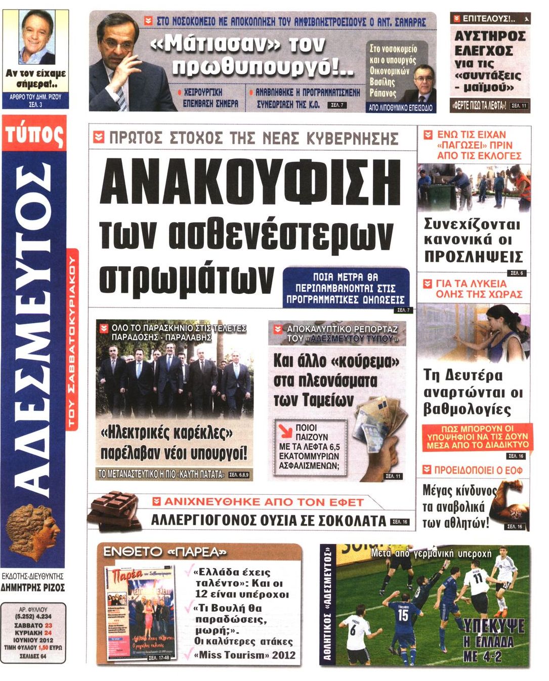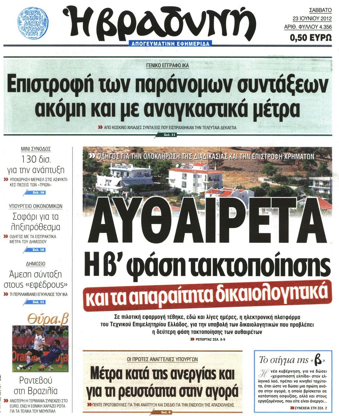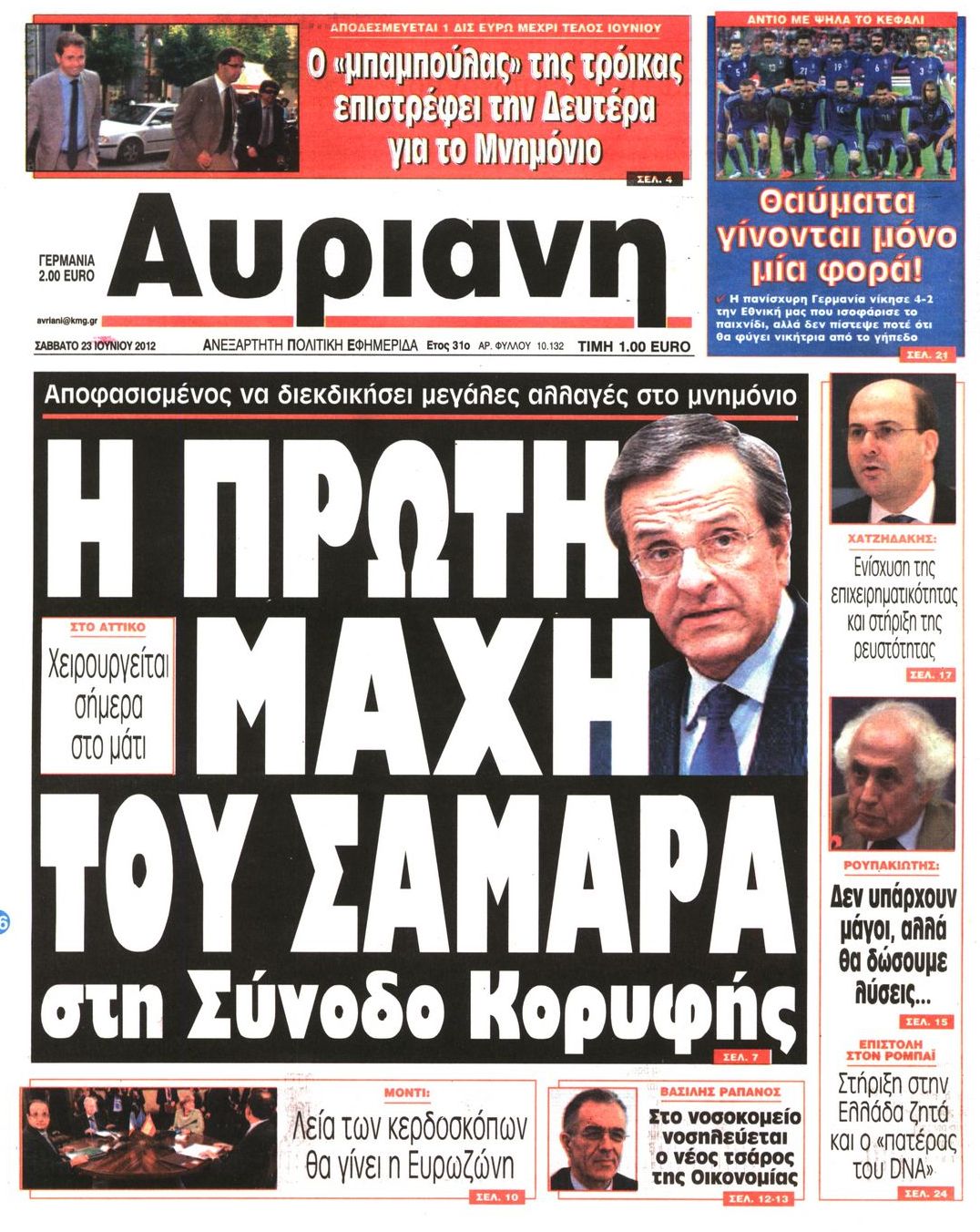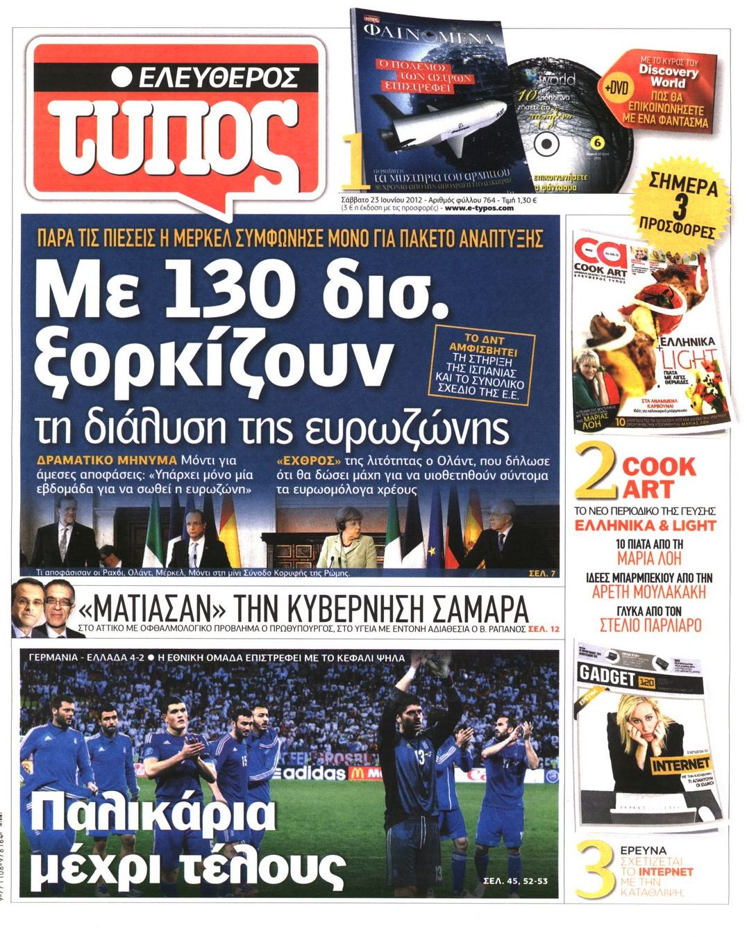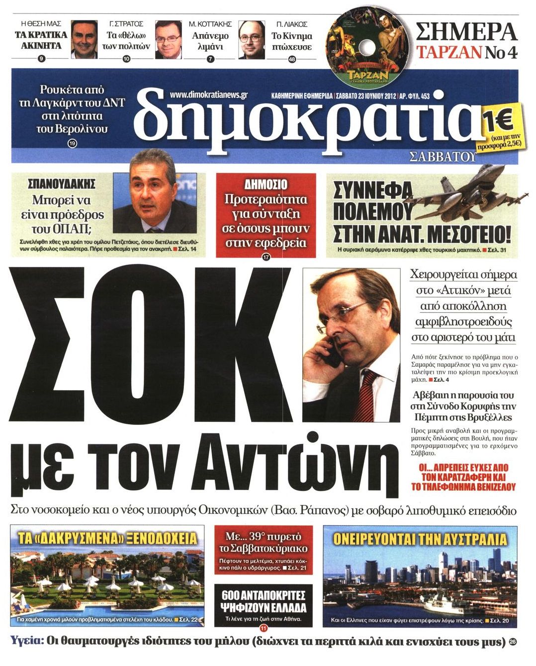 Τα πρωτοσέλιδα των εφημερίδων Enikos Newsroom 07:18, Σάββατο 23 Ιουνίου 2012 Media ΕΦΗΜΕΡΙΔΕΣ ΠΡΩΤΟΣΕΛΙΔΑ Μοιράσου το: σχολίασε κι εσύ (0 σχόλια) Ακολουθήστε το enikos.gr στο Google News και μάθετε πρώτοι όλες τις ειδήσεις Δείτε όλες τις τελευταίες ειδήσεις από την Ελλάδα και τον Κόσμο στο enikos.gr Ειδήσεις Ροή Ειδήσεων 2 ώρες πριν Εκτός ευρωομάδας ΣΥΡΙΖΑ ο Νίκος Παππάς μετά την επίθεση στον δημοσιογράφο Νίκο Γιαννόπουλο – Η μήνυση και οι νέες δηλώσεις 2 ώρες πριν «Αγριεύουν» οι αγρότες: «Δεν συντρέχει λόγος συνάντησης με τον πρωθυπουργό» – Ώρα αποφάσεων στη σύσκεψη της Πέμπτης 2 ώρες πριν Κυψέλη: Χωρίς την οικογένειά της δίπλα της απολογήθηκε η 16χρονη – «Της είχε επιτεθεί κάποιος για να την βιάσει, φοβήθηκε και κυκλοφορούσε με μαχαίρι» 1 ώρα πριν Politico: Το πρόβλημα της Ευρώπης δεν είναι το Βέλγιο αλλά ο Ντόναλντ Τραμπ 3 ώρες πριν Αλεξανδρούπολη: Πολυοργανική ανεπάρκεια λόγω υποσιτισμού η αιτία θανάτου του 3χρονου αγοριού 2 ώρες πριν Μυστήριο με τεράστιες κυκλικές πέτρες 200 κιλών – Ανακαλύφθηκαν τυχαία κατά τη διάρκεια οδικών έργων και κανείς δεν ξέρει από πού προέρχονται 3 ώρες πριν Ύπνος: Ειδικός εξηγεί τον πραγματικό λόγο που ξυπνάτε στις 4 τα ξημερώματα – Ο ρόλος των ορμονών και του κιρκάδιου ρυθμού 4 ώρες πριν Αριθμολογία: Οι άνθρωποι που έχουν γεννηθεί αυτές τις 4 ημερομηνίες, είναι τρυφεροί και αγαπούν ανιδιοτελώς 15 ώρες πριν 20 χρόνια τα Χριστούγεννα ξεκινούν στα Public με μεγάλη ποικιλία σε δώρα! 12 λεπτά πριν Βέλγους πολιτικούς και επικεφαλής χρηματοπιστωτικών ιδρυμάτων στοχοποιεί η Μόσχα για τα κατασχεθέντα περιουσιακά στοιχεία 26 λεπτά πριν ΗΠΑ: Αναζητείται δεύτερος ύποπτος για την επίθεση στο πανεπιστήμιο Μπράουν 42 λεπτά πριν Λεωφόρος Αλεξάνδρας: Δεν εντοπίστηκε βόμβα έξω από το κολλέγιο – Προσήχθη άνδρας για το προειδοποιητικό σημείωμα 58 λεπτά πριν Ελένη Κρίτα για το reunion του «Παρά Πέντε»: «Ήταν πραγματικά σαν να μην είχαμε χαθεί ποτέ» 1 ώρα πριν Κύπελλο Ελλάδας: Αυτά είναι τα ζευγάρια στα νοκ-άουτ, οι διασταυρώσεις στους «8» κι ο δρόμος προς τον τελικό ENIKOS NETWORK Αϋπνία: Το κόλπο που θα σας βοηθήσει να κοιμηθείτε απόψε – Είναι απλό και έχει αποτέλεσμα 2,6 εκατομμύρια πολίτες έχουν ήδη εμβολιαστεί κατά της γρίπης ΕΛΣΤΑΤ: Τι δείχνουν τα νέα στοιχεία για τις ηλεκτρονικές παραγγελίες των επιχειρήσεων ΚΕΠΕ: Οι 3 διακριτές συμβολές των ΜμΕ και της μεταποίησης στην ελληνική οικονομία Χαρτογραφώντας το «σημείο χωρίς επιστροφή»: Για πρώτη φορά αποκαλύπτεται με λεπτομέρεια το ακανθώδες όριο της ατμόσφαιρας τ... Η Google καταργεί τη λειτουργία «dark web report» – Πώς θα μπορούν οι χρήστες να διαγράφουν τα δεδομένα τους περισσότερα 22:24 , Τετάρτη 17 Δεκεμβρίου 2025 Το Σπίτι Δίπλα Στο Ποτάμι: Σε κίνδυνο η υγεία του Απόστολου – Τι θα δούμε απόψε “Το Σπίτι Δίπλα στο Ποτάμι” ξετυλίγει το νήμα της ζωής των πέντε αδελφών με καταισ... 21:14 , Τετάρτη 17 Δεκεμβρίου 2025 Παιχνίδια Εκδίκησης: Θα καταφέρει ο Χρήστος να κλονίσει την εμπιστοσύνη της Μάγιας απέναντι στον Άγη; Τα «Παιχνίδια Εκδίκησης» έρχονται απόψε στις 22:30, στον Αντ1, με το τελευταίο επεισόδιο της χ... 20:57 , Τετάρτη 17 Δεκεμβρίου 2025 Άγιος Έρωτας: Η Χλόη καταθέτει εναντίον του πατέρα της και ο Χάρης αποκαλύπτει στον Κλεάνθη ότι δεν είναι ο βιολογικός του πατέρας. Γεμάτο αποκαλύψεις είναι το νέο επεισόδιο της σειράς “Άγιος Έρωτας” απόψε στις 21:... 20:15 , Τετάρτη 17 Δεκεμβρίου 2025 Η ανακοίνωση της ΕΣΗΕΑ για την επίθεση του Ευρωβουλευτή Νίκου Πα