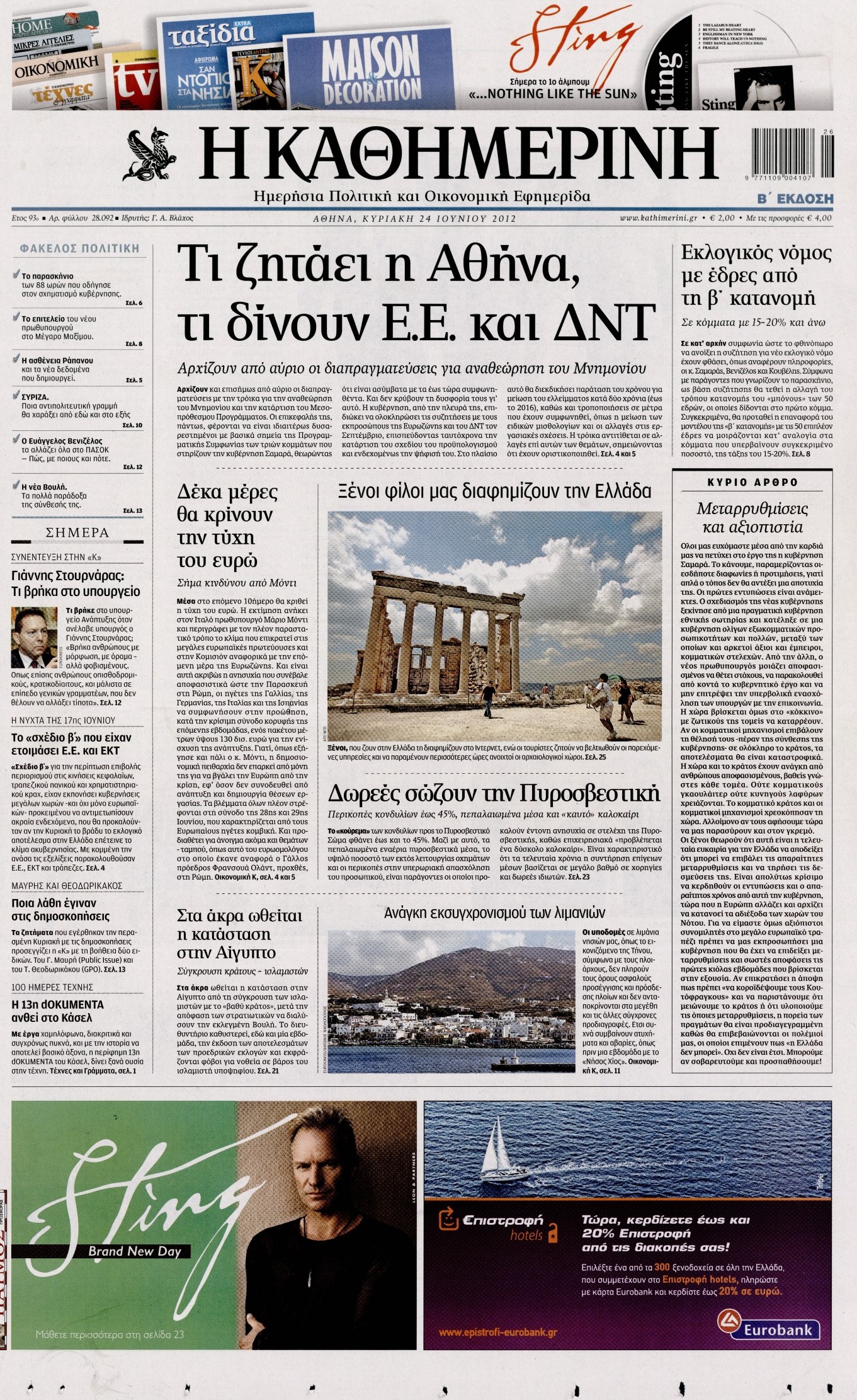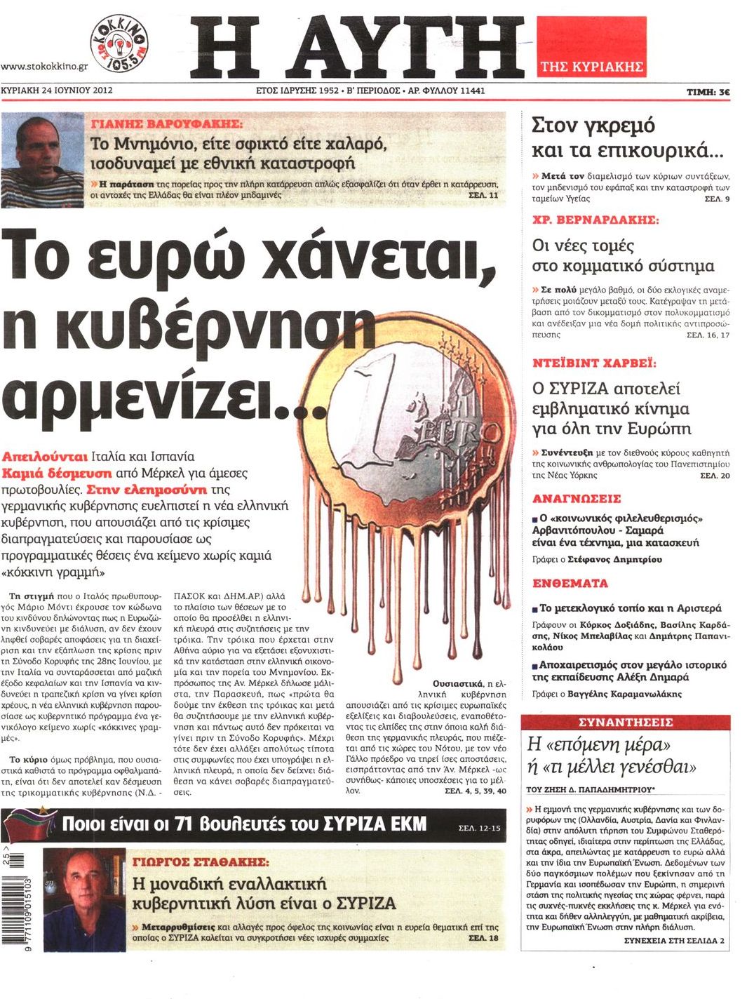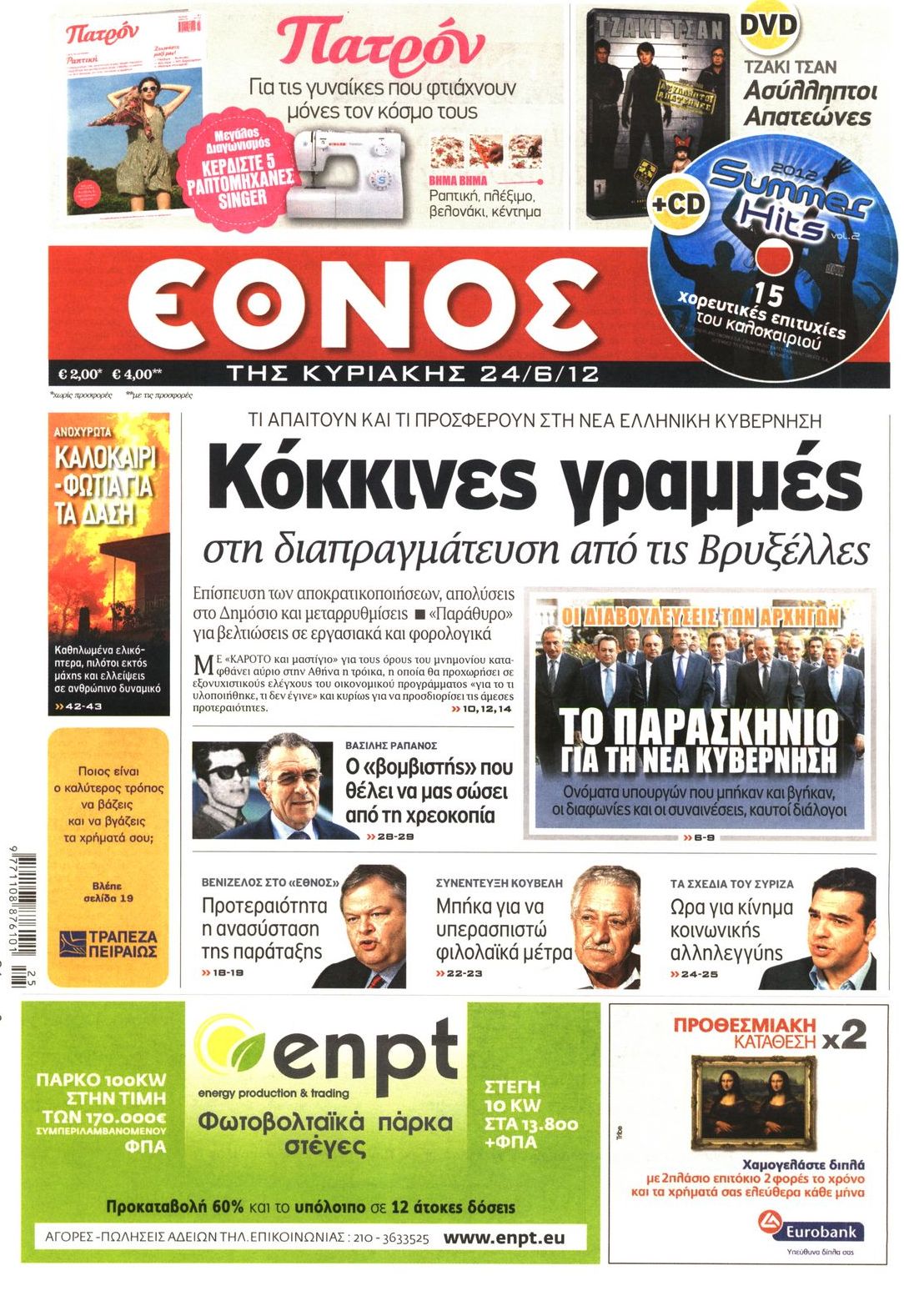 Τα πρωτοσέλιδα των εφημερίδων Enikos Newsroom 07:22, Κυριακή 24 Ιουνίου 2012 Media ΕΦΗΜΕΡΙΔΕΣ ΠΡΩΤΟΣΕΛΙΔΑ Μοιράσου το: σχολίασε κι εσύ (0 σχόλια) Ακολουθήστε το enikos.gr στο Google News και μάθετε πρώτοι όλες τις ειδήσεις Δείτε όλες τις τελευταίες ειδήσεις από την Ελλάδα και τον Κόσμο στο enikos.gr Ειδήσεις Ροή Ειδήσεων 5 ώρες πριν Εκτός ευρωομάδας ΣΥΡΙΖΑ ο Νίκος Παππάς μετά την επίθεση στον δημοσιογράφο Νίκο Γιαννόπουλο – Η μήνυση και οι νέες δηλώσεις 5 ώρες πριν «Αγριεύουν» οι αγρότες: «Δεν συντρέχει λόγος συνάντησης με τον πρωθυπουργό» – Ώρα αποφάσεων στη σύσκεψη της Πέμπτης 5 ώρες πριν Κυψέλη: Χωρίς την οικογένειά της δίπλα της απολογήθηκε η 16χρονη – «Της είχε επιτεθεί κάποιος για να την βιάσει, φοβήθηκε και κυκλοφορούσε με μαχαίρι» 5 ώρες πριν Politico: Το πρόβλημα της Ευρώπης δεν είναι το Βέλγιο αλλά ο Ντόναλντ Τραμπ 6 ώρες πριν Αλεξανδρούπολη: Πολυοργανική ανεπάρκεια λόγω υποσιτισμού η αιτία θανάτου του 3χρονου αγοριού 5 ώρες πριν Μυστήριο με τεράστιες κυκλικές πέτρες 200 κιλών – Ανακαλύφθηκαν τυχαία κατά τη διάρκεια οδικών έργων και κανείς δεν ξέρει από πού προέρχονται 6 ώρες πριν Ύπνος: Ειδικός εξηγεί τον πραγματικό λόγο που ξυπνάτε στις 4 τα ξημερώματα – Ο ρόλος των ορμονών και του κιρκάδιου ρυθμού 7 ώρες πριν Αριθμολογία: Οι άνθρωποι που έχουν γεννηθεί αυτές τις 4 ημερομηνίες, είναι τρυφεροί και αγαπούν ανιδιοτελώς 19 ώρες πριν 20 χρόνια τα Χριστούγεννα ξεκινούν στα Public με μεγάλη ποικιλία σε δώρα! 7 λεπτά πριν GNTM: Με δάκρυα τον αποχαιρέτησε η Ηλιάνα Παπαγεωργίου πριν από τον ημιτελικό – «Αισθάνομαι πολύ παράξενα» 22 λεπτά πριν Αμερικανικά στρατεύματα στον Ισημερινό για «προσωρινή» επιχείρηση κατά των ναρκωτικών 37 λεπτά πριν Βραζιλία: Το Κογκρέσο ενέκρινε σχέδιο νόμου για τη μείωση της ποινής του πρώην προέδρου Μπολσονάρου 52 λεπτά πριν Ένταση στο περιφερειακό συμβούλιο Δυτικής Μακεδονίας: Φωνές, σπρωξιές και διακοπή – Δείτε βίντεο 1 ώρα πριν Σουδάν: Επιδρομή drone σε χωριό του Νότιου Κορντοφάν – Οκτώ νεκροί ENIKOS NETWORK Αϋπνία: Το κόλπο που θα σας βοηθήσει να κοιμηθείτε απόψε – Είναι απλό και έχει αποτέλεσμα 2,6 εκατομμύρια πολίτες έχουν ήδη εμβολιαστεί κατά της γρίπης ΕΛΣΤΑΤ: Τι δείχνουν τα νέα στοιχεία για τις ηλεκτρονικές παραγγελίες των επιχειρήσεων ΚΕΠΕ: Οι 3 διακριτές συμβολές των ΜμΕ και της μεταποίησης στην ελληνική οικονομία Χαρτογραφώντας το «σημείο χωρίς επιστροφή»: Για πρώτη φορά αποκαλύπτεται με λεπτομέρεια το ακανθώδες όριο της ατμόσφαιρας τ... Η Google καταργεί τη λειτουργία «dark web report» – Πώς θα μπορούν οι χρήστες να διαγράφουν τα δεδομένα τους περισσότερα 02:30 , Πέμπτη 18 Δεκεμβρίου 2025 Αλ Τσαντίρι Νιουζ: Η κόρη της Πάολα στο κοινό – Η ατάκα Λαζόπουλου που την έκανε να «κοκκινήσει» Γιορτινή διάθεση και ευχάριστες στιγμές γέμισε η αποψινή, τελευταία για το 2025, εκπομπή του «... 22:24 , Τετάρτη 17 Δεκεμβρίου 2025 Το Σπίτι Δίπλα Στο Ποτάμι: Σε κίνδυνο η υγεία του Απόστολου – Τι θα δούμε απόψε “Το Σπίτι Δίπλα στο Ποτάμι” ξετυλίγει το νήμα της ζωής των πέντε αδελφών με καταισ... 21:14 , Τετάρτη 17 Δεκεμβρίου 2025 Παιχνίδια Εκδίκησης: Θα καταφέρει ο Χρήστος να κλονίσει την εμπιστοσύνη της Μάγιας απέναντι στον Άγη; Τα «Παιχνίδια Εκδίκησης» έρχονται απόψε στις 22:30, στον Αντ1, με το τελευταίο επεισόδιο της χ... 20:57 , Τετάρτη 17 Δεκεμβρίου 2025 Άγιος Έρωτας: Η Χλόη καταθέτει εναντίον του πατέρα της και ο Χάρης αποκαλύπτει στον Κλεάνθη ότι δεν είναι ο βιολογικός του πατέρας. Γεμάτο αποκα