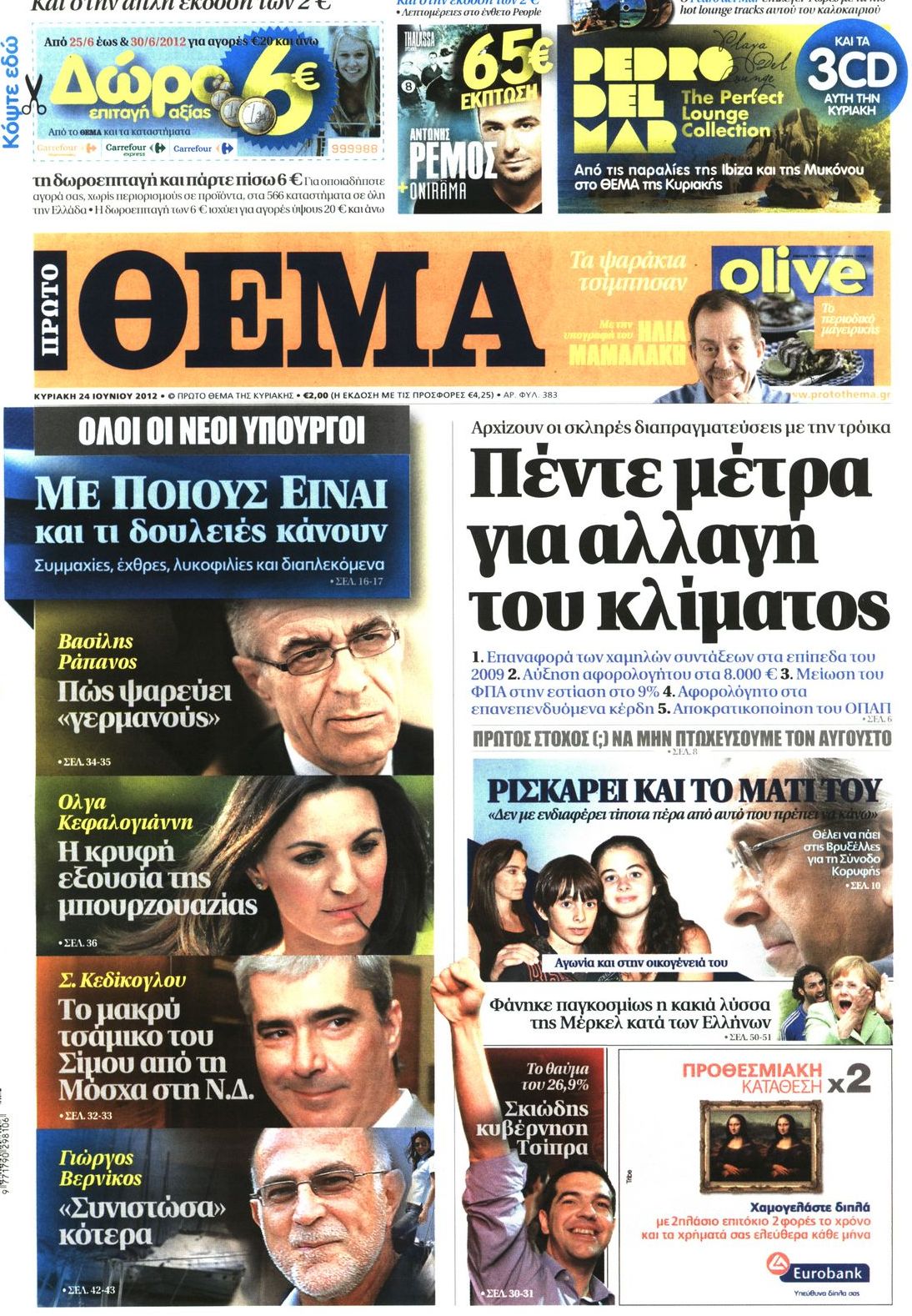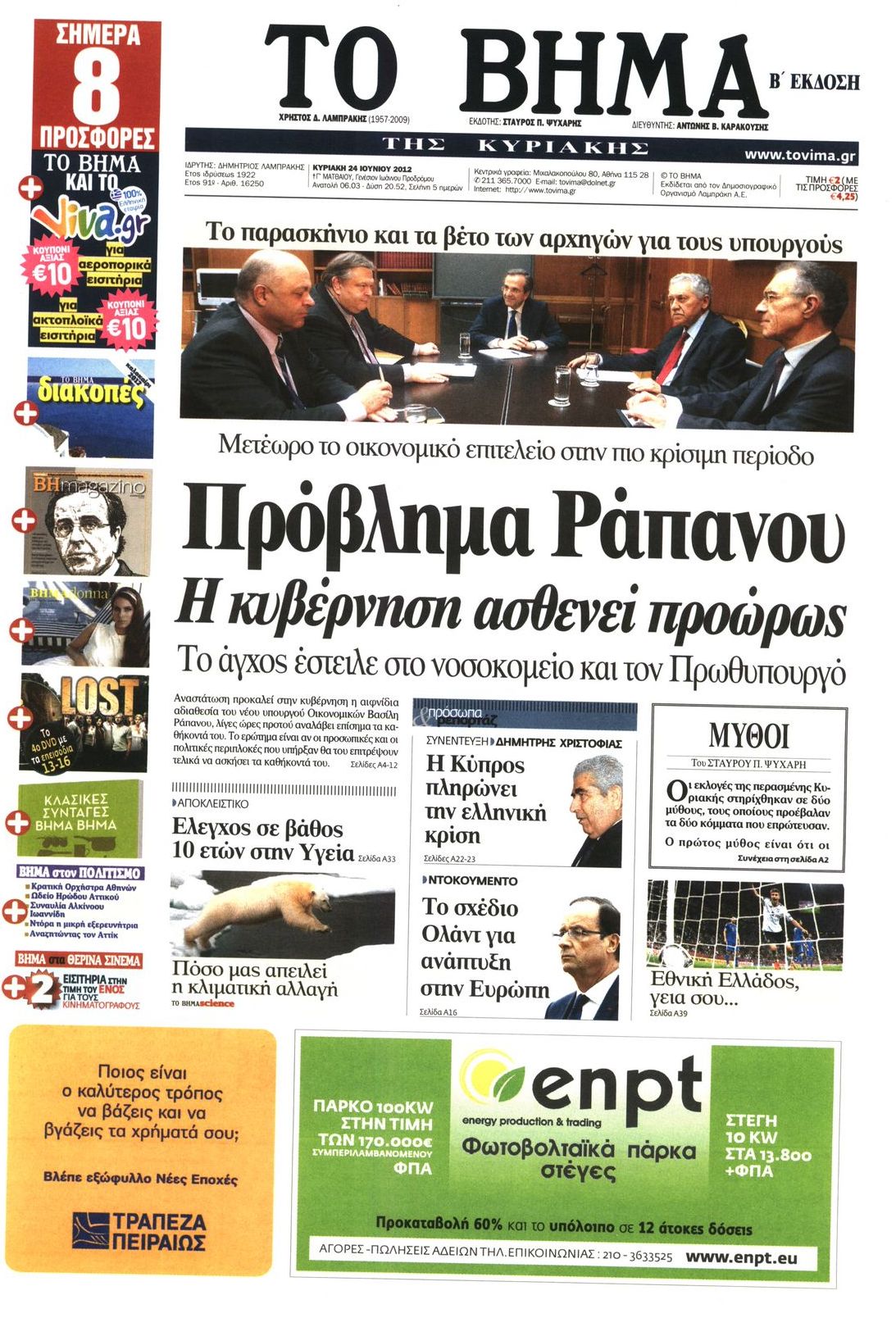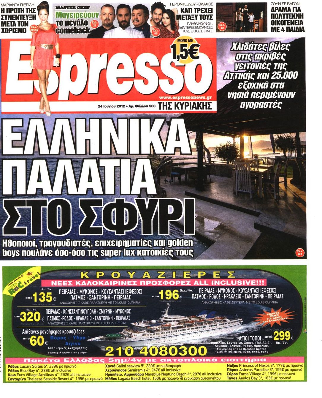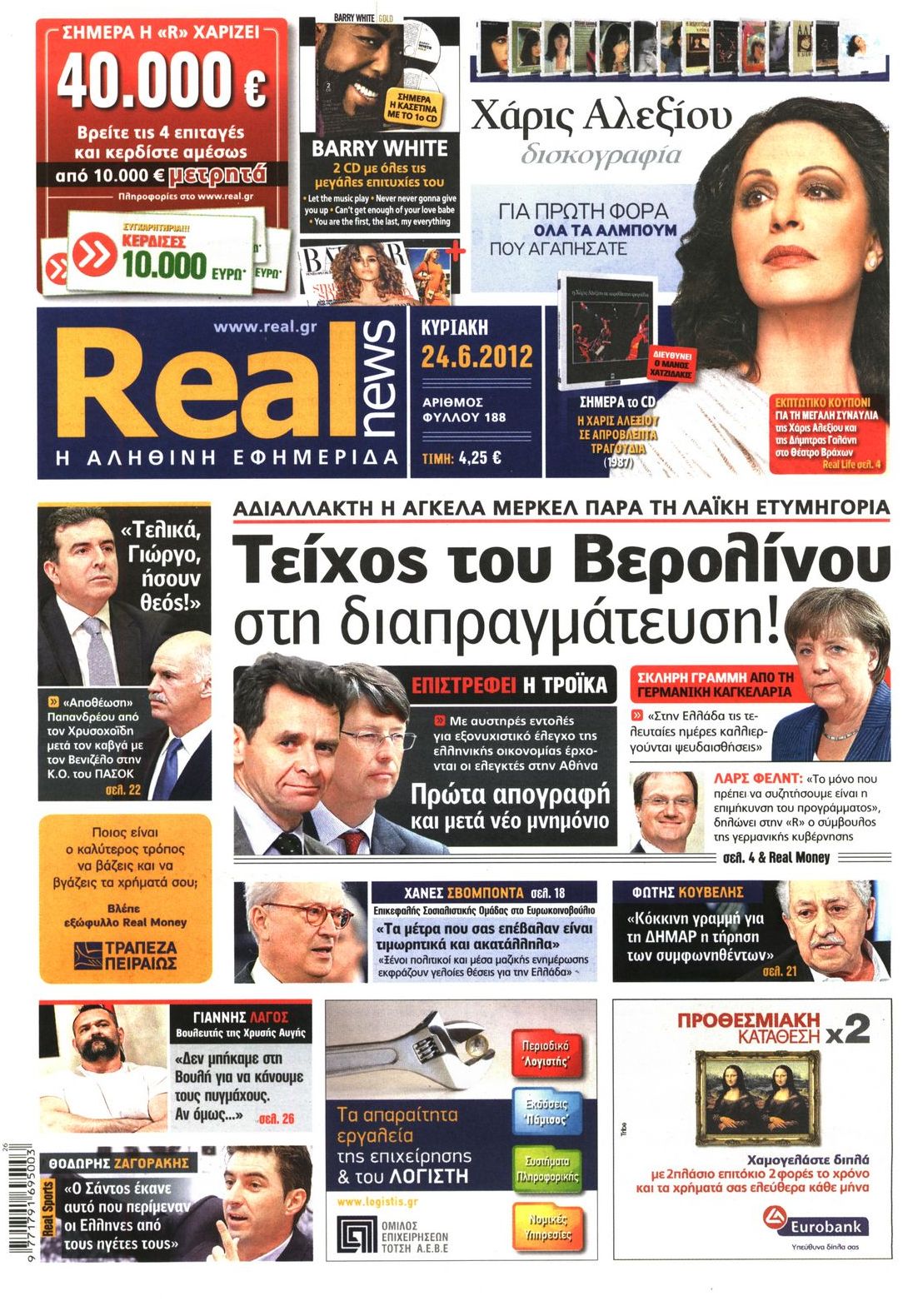 Τα πρωτοσέλιδα των εφημερίδων Enikos Newsroom 07:22, Κυριακή 24 Ιουνίου 2012 Media ΕΦΗΜΕΡΙΔΕΣ ΠΡΩΤΟΣΕΛΙΔΑ Μοιράσου το: σχολίασε κι εσύ (0 σχόλια) Ακολουθήστε το enikos.gr στο Google News και μάθετε πρώτοι όλες τις ειδήσεις Δείτε όλες τις τελευταίες ειδήσεις από την Ελλάδα και τον Κόσμο στο enikos.gr Ειδήσεις Ροή Ειδήσεων 5 ώρες πριν Εκτός ευρωομάδας ΣΥΡΙΖΑ ο Νίκος Παππάς μετά την επίθεση στον δημοσιογράφο Νίκο Γιαννόπουλο – Η μήνυση και οι νέες δηλώσεις 5 ώρες πριν «Αγριεύουν» οι αγρότες: «Δεν συντρέχει λόγος συνάντησης με τον πρωθυπουργό» – Ώρα αποφάσεων στη σύσκεψη της Πέμπτης 5 ώρες πριν Κυψέλη: Χωρίς την οικογένειά της δίπλα της απολογήθηκε η 16χρονη – «Της είχε επιτεθεί κάποιος για να την βιάσει, φοβήθηκε και κυκλοφορούσε με μαχαίρι» 5 ώρες πριν Politico: Το πρόβλημα της Ευρώπης δεν είναι το Βέλγιο αλλά ο Ντόναλντ Τραμπ 6 ώρες πριν Αλεξανδρούπολη: Πολυοργανική ανεπάρκεια λόγω υποσιτισμού η αιτία θανάτου του 3χρονου αγοριού 5 ώρες πριν Μυστήριο με τεράστιες κυκλικές πέτρες 200 κιλών – Ανακαλύφθηκαν τυχαία κατά τη διάρκεια οδικών έργων και κανείς δεν ξέρει από πού προέρχονται 6 ώρες πριν Ύπνος: Ειδικός εξηγεί τον πραγματικό λόγο που ξυπνάτε στις 4 τα ξημερώματα – Ο ρόλος των ορμονών και του κιρκάδιου ρυθμού 7 ώρες πριν Αριθμολογία: Οι άνθρωποι που έχουν γεννηθεί αυτές τις 4 ημερομηνίες, είναι τρυφεροί και αγαπούν ανιδιοτελώς 19 ώρες πριν 20 χρόνια τα Χριστούγεννα ξεκινούν στα Public με μεγάλη ποικιλία σε δώρα! 7 λεπτά πριν GNTM: Με δάκρυα τον αποχαιρέτησε η Ηλιάνα Παπαγεωργίου πριν από τον ημιτελικό – «Αισθάνομαι πολύ παράξενα» 22 λεπτά πριν Αμερικανικά στρατεύματα στον Ισημερινό για «προσωρινή» επιχείρηση κατά των ναρκωτικών 37 λεπτά πριν Βραζιλία: Το Κογκρέσο ενέκρινε σχέδιο νόμου για τη μείωση της ποινής του πρώην προέδρου Μπολσονάρου 52 λεπτά πριν Ένταση στο περιφερειακό συμβούλιο Δυτικής Μακεδονίας: Φωνές, σπρωξιές και διακοπή – Δείτε βίντεο 1 ώρα πριν Σουδάν: Επιδρομή drone σε χωριό του Νότιου Κορντοφάν – Οκτώ νεκροί ENIKOS NETWORK Αϋπνία: Το κόλπο που θα σας βοηθήσει να κοιμηθείτε απόψε – Είναι απλό και έχει αποτέλεσμα 2,6 εκατομμύρια πολίτες έχουν ήδη εμβολιαστεί κατά της γρίπης ΕΛΣΤΑΤ: Τι δείχνουν τα νέα στοιχεία για τις ηλεκτρονικές παραγγελίες των επιχειρήσεων ΚΕΠΕ: Οι 3 διακριτές συμβολές των ΜμΕ και της μεταποίησης στην ελληνική οικονομία Χαρτογραφώντας το «σημείο χωρίς επιστροφή»: Για πρώτη φορά αποκαλύπτεται με λεπτομέρεια το ακανθώδες όριο της ατμόσφαιρας τ... Η Google καταργεί τη λειτουργία «dark web report» – Πώς θα μπορούν οι χρήστες να διαγράφουν τα δεδομένα τους περισσότερα 02:30 , Πέμπτη 18 Δεκεμβρίου 2025 Αλ Τσαντίρι Νιουζ: Η κόρη της Πάολα στο κοινό – Η ατάκα Λαζόπουλου που την έκανε να «κοκκινήσει» Γιορτινή διάθεση και ευχάριστες στιγμές γέμισε η αποψινή, τελευταία για το 2025, εκπομπή του «... 22:24 , Τετάρτη 17 Δεκεμβρίου 2025 Το Σπίτι Δίπλα Στο Ποτάμι: Σε κίνδυνο η υγεία του Απόστολου – Τι θα δούμε απόψε “Το Σπίτι Δίπλα στο Ποτάμι” ξετυλίγει το νήμα της ζωής των πέντε αδελφών με καταισ... 21:14 , Τετάρτη 17 Δεκεμβρίου 2025 Παιχνίδια Εκδίκησης: Θα καταφέρει ο Χρήστος να κλονίσει την εμπιστοσύνη της Μάγιας απέναντι στον Άγη; Τα «Παιχνίδια Εκδίκησης» έρχονται απόψε στις 22:30, στον Αντ1, με το τελευταίο επεισόδιο της χ... 20:57 , Τετάρτη 17 Δεκεμβρίου 2025 Άγιος Έρωτας: Η Χλόη καταθέτει εναντίον του πατέρα της και ο Χάρης αποκαλύπτει στον Κλεάνθη ότι δεν είναι ο βιολογικός του πατέρας. Γεμάτο αποκα