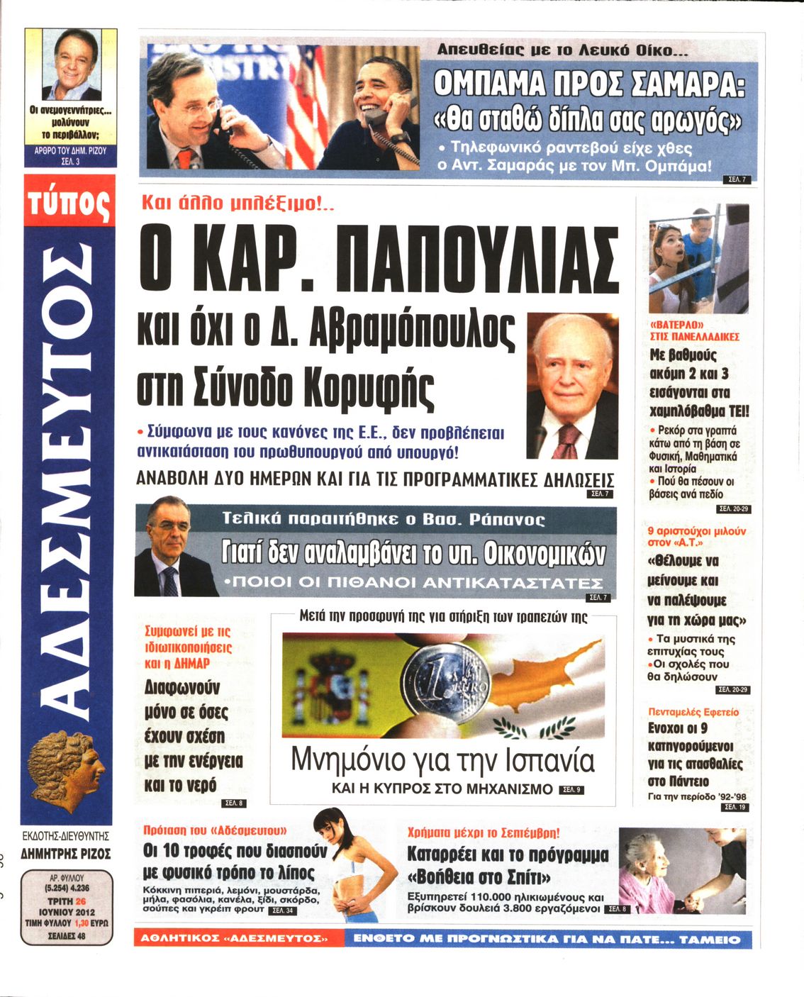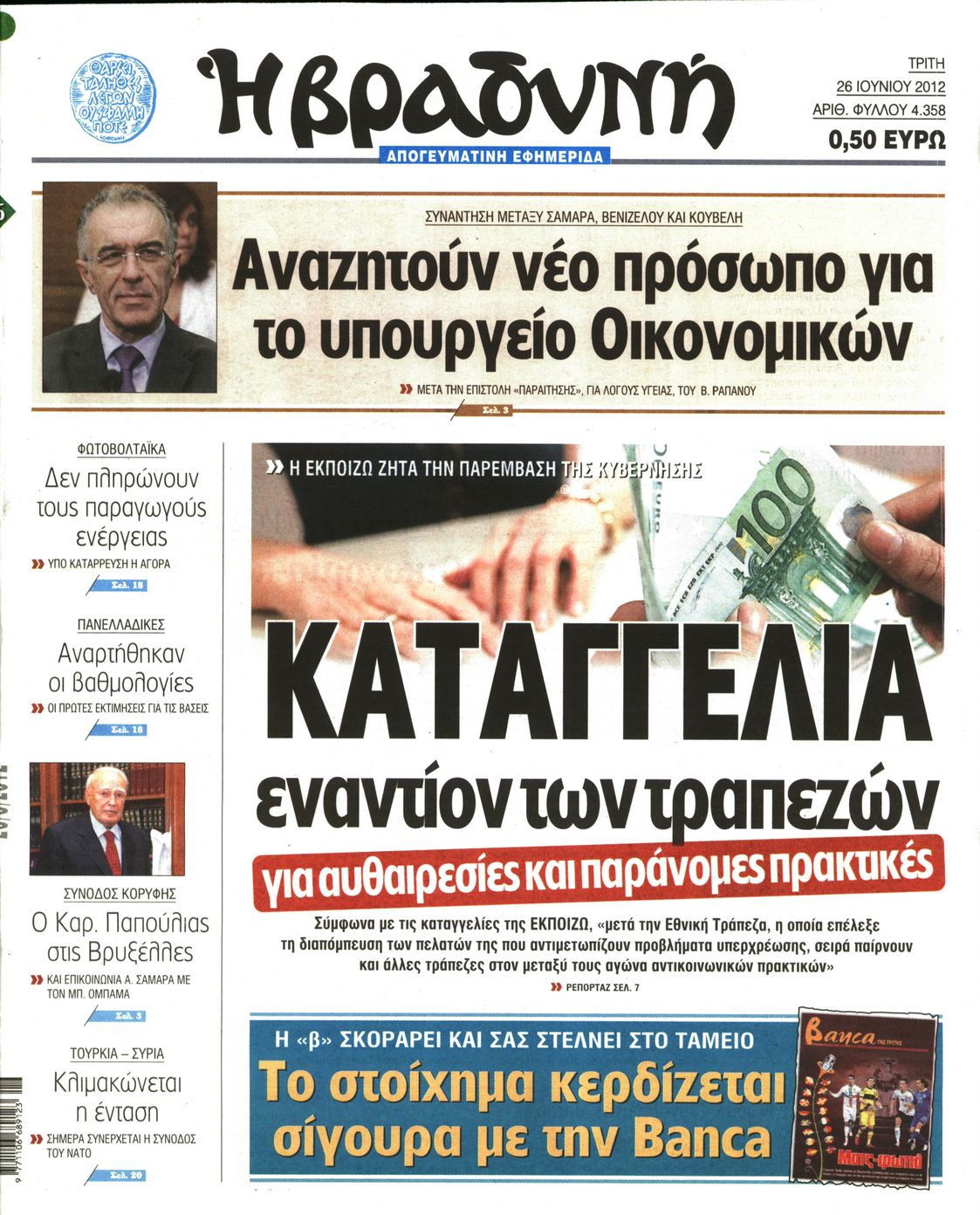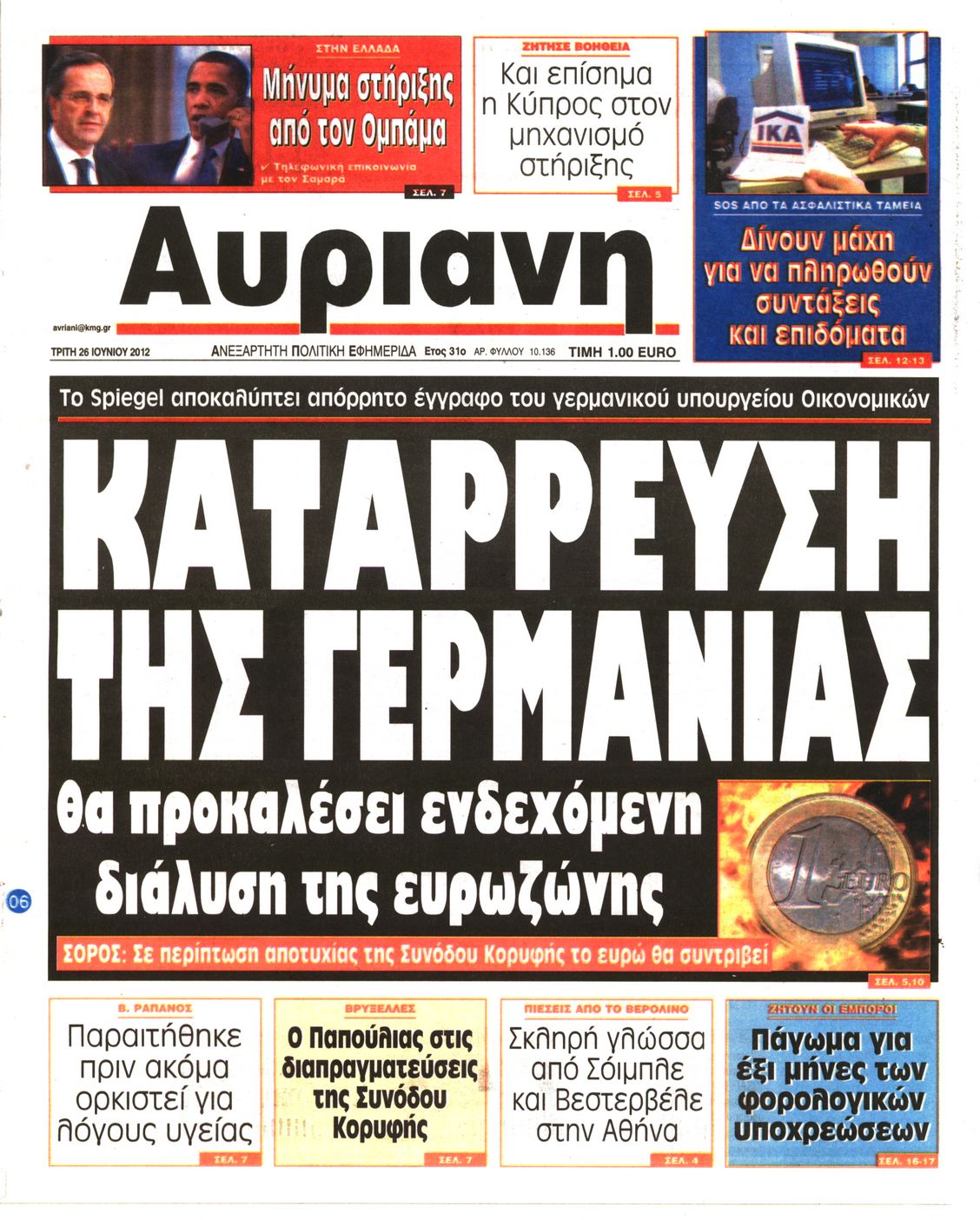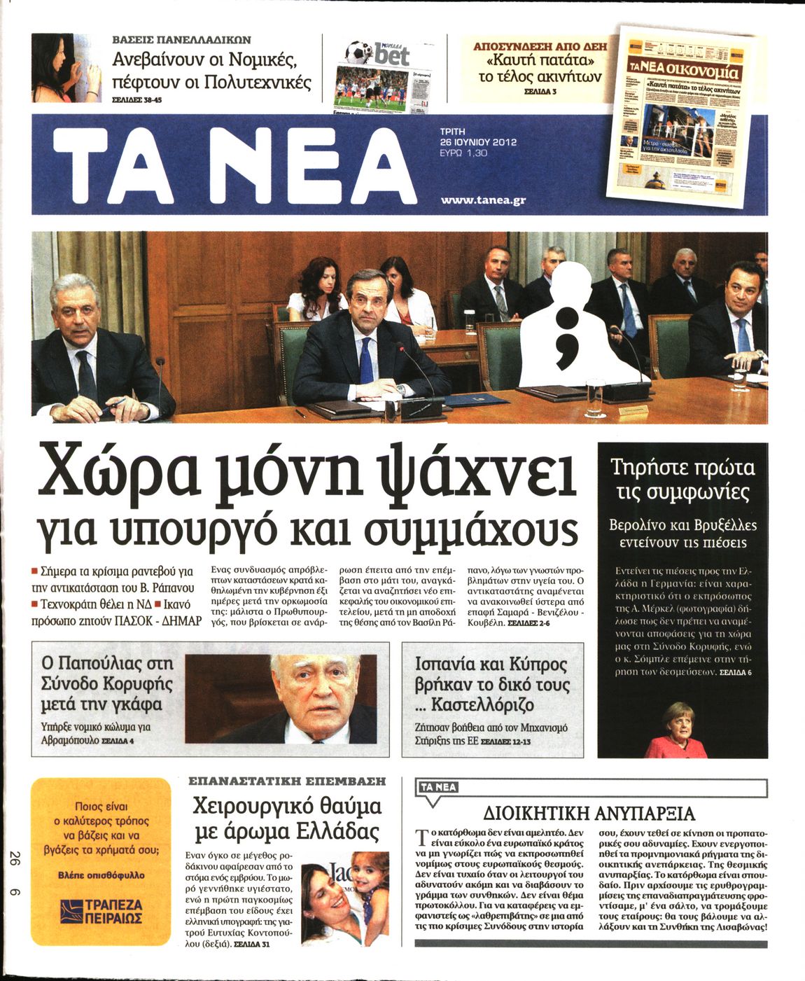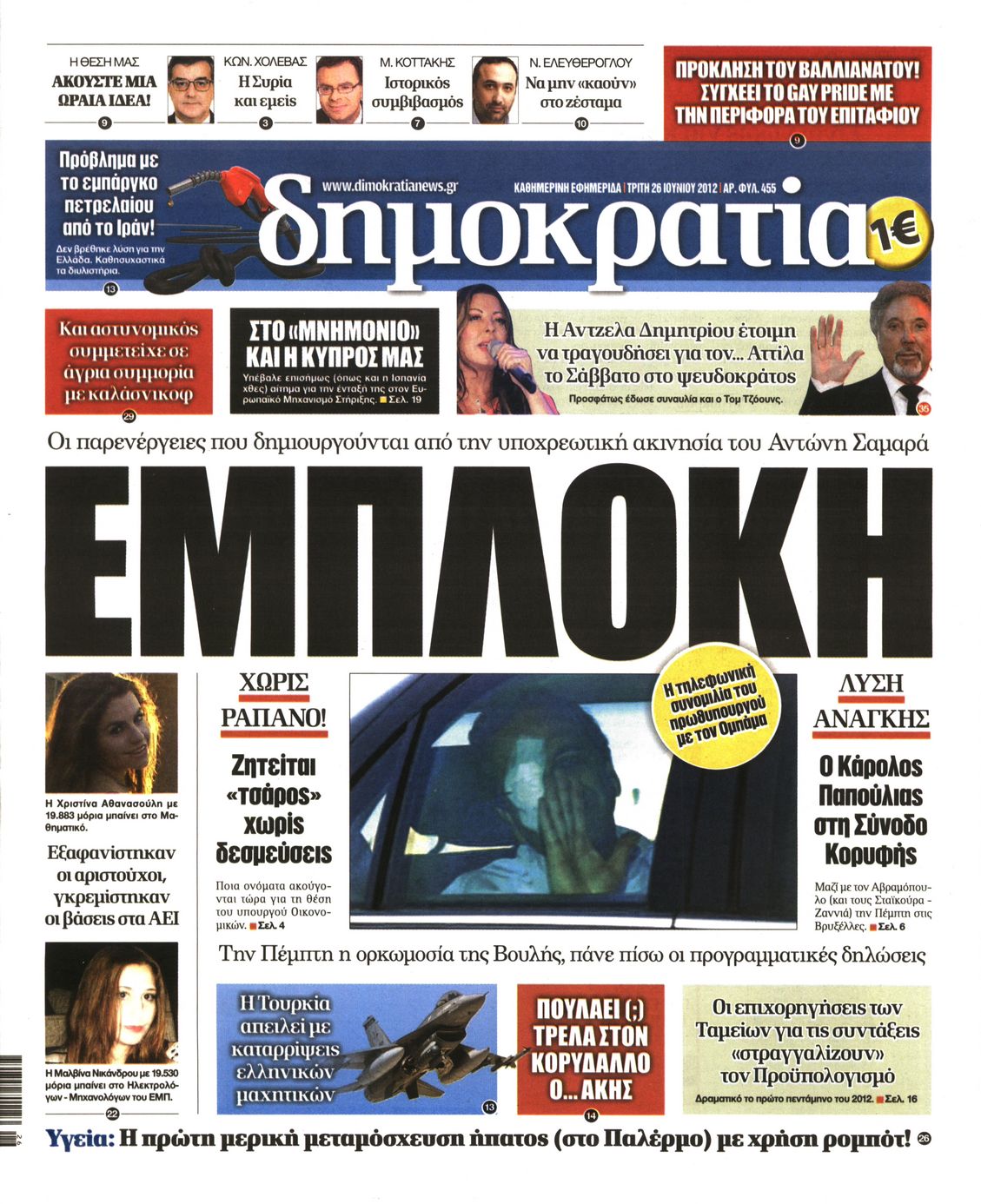 Τα πρωτοσέλιδα των εφημερίδων Enikos Newsroom 07:29, Τρίτη 26 Ιουνίου 2012 Media ΕΦΗΜΕΡΙΔΕΣ ΠΡΩΤΟΣΕΛΙΔΑ Μοιράσου το: σχολίασε κι εσύ (0 σχόλια) Ακολουθήστε το enikos.gr στο Google News και μάθετε πρώτοι όλες τις ειδήσεις Δείτε όλες τις τελευταίες ειδήσεις από την Ελλάδα και τον Κόσμο στο enikos.gr Ειδήσεις Ροή Ειδήσεων 5 ώρες πριν Εκτός ευρωομάδας ΣΥΡΙΖΑ ο Νίκος Παππάς μετά την επίθεση στον δημοσιογράφο Νίκο Γιαννόπουλο – Η μήνυση και οι νέες δηλώσεις 5 ώρες πριν «Αγριεύουν» οι αγρότες: «Δεν συντρέχει λόγος συνάντησης με τον πρωθυπουργό» – Ώρα αποφάσεων στη σύσκεψη της Πέμπτης 5 ώρες πριν Κυψέλη: Χωρίς την οικογένειά της δίπλα της απολογήθηκε η 16χρονη – «Της είχε επιτεθεί κάποιος για να την βιάσει, φοβήθηκε και κυκλοφορούσε με μαχαίρι» 5 ώρες πριν Politico: Το πρόβλημα της Ευρώπης δεν είναι το Βέλγιο αλλά ο Ντόναλντ Τραμπ 7 ώρες πριν Αλεξανδρούπολη: Πολυοργανική ανεπάρκεια λόγω υποσιτισμού η αιτία θανάτου του 3χρονου αγοριού 5 ώρες πριν Μυστήριο με τεράστιες κυκλικές πέτρες 200 κιλών – Ανακαλύφθηκαν τυχαία κατά τη διάρκεια οδικών έργων και κανείς δεν ξέρει από πού προέρχονται 6 ώρες πριν Ύπνος: Ειδικός εξηγεί τον πραγματικό λόγο που ξυπνάτε στις 4 τα ξημερώματα – Ο ρόλος των ορμονών και του κιρκάδιου ρυθμού 7 ώρες πριν Αριθμολογία: Οι άνθρωποι που έχουν γεννηθεί αυτές τις 4 ημερομηνίες, είναι τρυφεροί και αγαπούν ανιδιοτελώς 19 ώρες πριν 20 χρόνια τα Χριστούγεννα ξεκινούν στα Public με μεγάλη ποικιλία σε δώρα! 12 λεπτά πριν Αλ Τσαντίρι Νιουζ: «Λύγισε» ο Δημήτρης Λάλος για τον Δημήτρη Ήμελλο – «Τον μνημονεύω, να ‘ναι καλά εκεί που είναι» 27 λεπτά πριν GNTM: Με δάκρυα τον αποχαιρέτησε η Ηλιάνα Παπαγεωργίου πριν από τον ημιτελικό – «Αισθάνομαι πολύ παράξενα» 42 λεπτά πριν Αμερικανικά στρατεύματα στον Ισημερινό για «προσωρινή» επιχείρηση κατά των ναρκωτικών 58 λεπτά πριν Βραζιλία: Το Κογκρέσο ενέκρινε σχέδιο νόμου για τη μείωση της ποινής του πρώην προέδρου Μπολσονάρου 1 ώρα πριν Ένταση στο περιφερειακό συμβούλιο Δυτικής Μακεδονίας: Φωνές, σπρωξιές και διακοπή – Δείτε βίντεο ENIKOS NETWORK Αϋπνία: Το κόλπο που θα σας βοηθήσει να κοιμηθείτε απόψε – Είναι απλό και έχει αποτέλεσμα 2,6 εκατομμύρια πολίτες έχουν ήδη εμβολιαστεί κατά της γρίπης ΕΛΣΤΑΤ: Τι δείχνουν τα νέα στοιχεία για τις ηλεκτρονικές παραγγελίες των επιχειρήσεων ΚΕΠΕ: Οι 3 διακριτές συμβολές των ΜμΕ και της μεταποίησης στην ελληνική οικονομία Χαρτογραφώντας το «σημείο χωρίς επιστροφή»: Για πρώτη φορά αποκαλύπτεται με λεπτομέρεια το ακανθώδες όριο της ατμόσφαιρας τ... Η Google καταργεί τη λειτουργία «dark web report» – Πώς θα μπορούν οι χρήστες να διαγράφουν τα δεδομένα τους περισσότερα 02:30 , Πέμπτη 18 Δεκεμβρίου 2025 Αλ Τσαντίρι Νιουζ: Η κόρη της Πάολα στο κοινό – Η ατάκα Λαζόπουλου που την έκανε να «κοκκινήσει» Γιορτινή διάθεση και ευχάριστες στιγμές γέμισε η αποψινή, τελευταία για το 2025, εκπομπή του «... 22:24 , Τετάρτη 17 Δεκεμβρίου 2025 Το Σπίτι Δίπλα Στο Ποτάμι: Σε κίνδυνο η υγεία του Απόστολου – Τι θα δούμε απόψε “Το Σπίτι Δίπλα στο Ποτάμι” ξετυλίγει το νήμα της ζωής των πέντε αδελφών με καταισ... 21:14 , Τετάρτη 17 Δεκεμβρίου 2025 Παιχνίδια Εκδίκησης: Θα καταφέρει ο Χρήστος να κλονίσει την εμπιστοσύνη της Μάγιας απέναντι στον Άγη; Τα «Παιχνίδια Εκδίκησης» έρχονται απόψε στις 22:30, στον Αντ1, με το τελευταίο επεισόδιο της χ... 20:57 , Τετάρτη 17 Δεκεμβρίου 2025 Άγιος Έρωτας: Η Χλόη καταθέτει εναντίον του πατέρα της και ο Χάρης αποκαλύπτει στον Κλεάνθη ότι 
