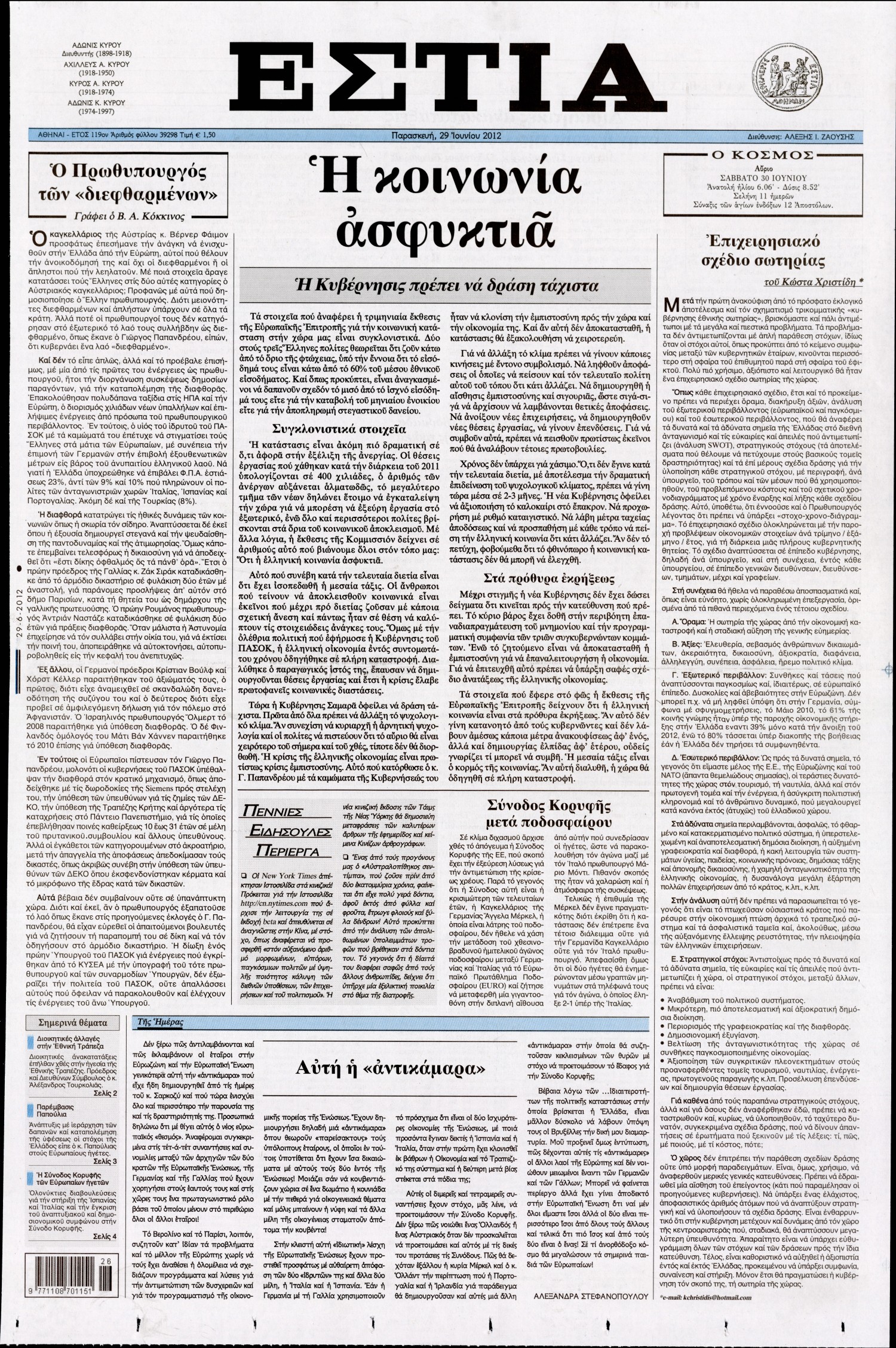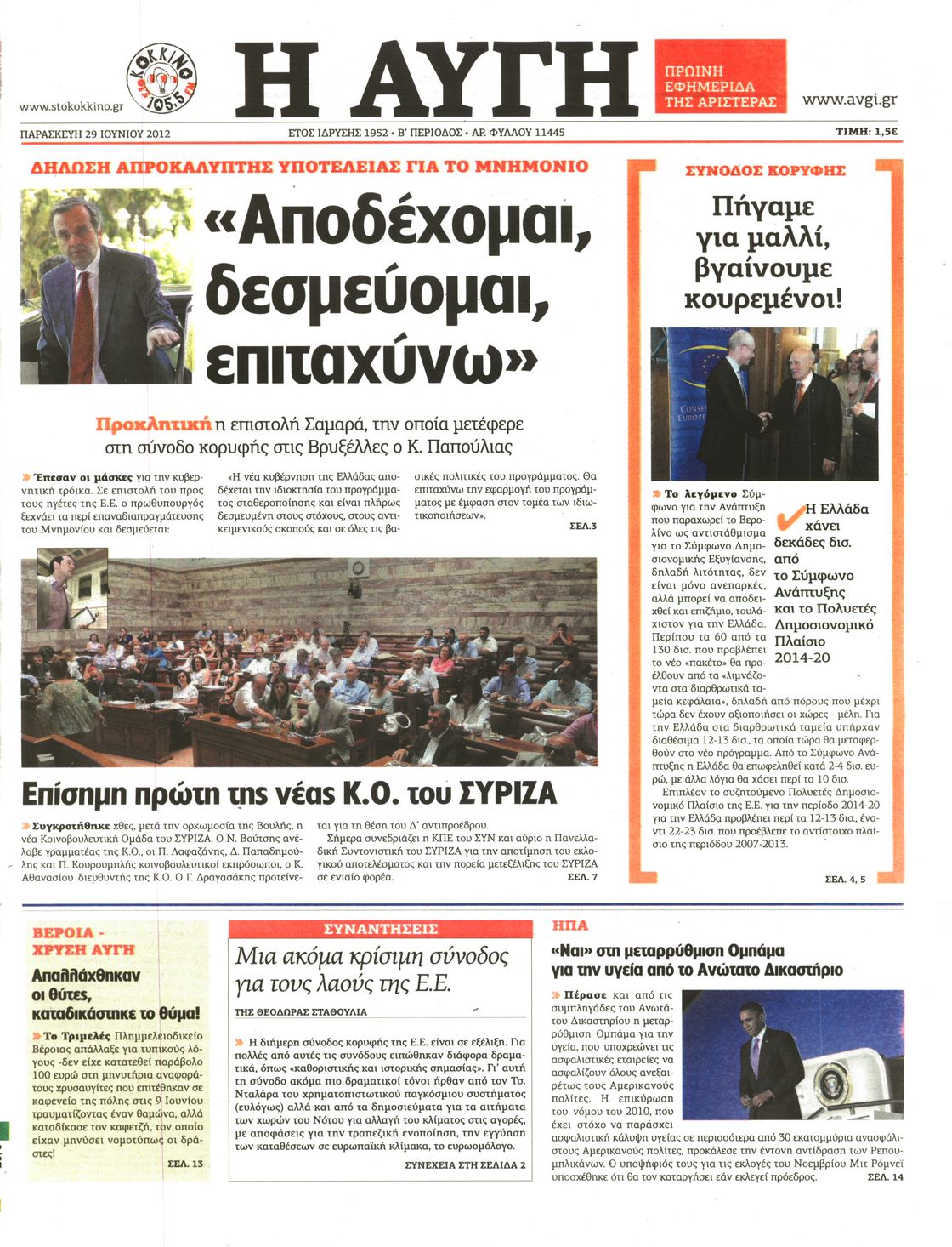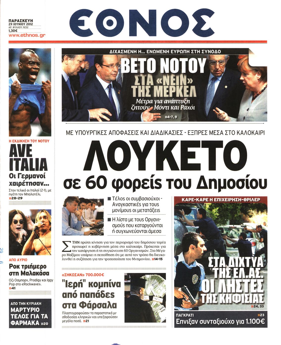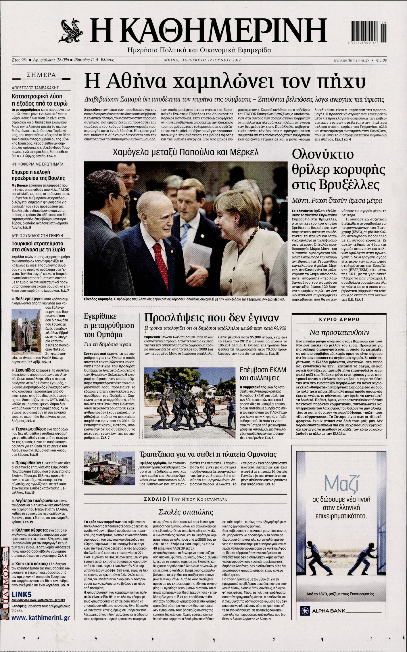 Τα πρωτοσέλιδα των εφημερίδων Enikos Newsroom 07:32, Παρασκευή 29 Ιουνίου 2012 Media ΕΦΗΜΕΡΙΔΕΣ ΠΡΩΤΟΣΕΛΙΔΑ Μοιράσου το: σχολίασε κι εσύ (0 σχόλια) Ακολουθήστε το enikos.gr στο Google News και μάθετε πρώτοι όλες τις ειδήσεις Δείτε όλες τις τελευταίες ειδήσεις από την Ελλάδα και τον Κόσμο στο enikos.gr Ειδήσεις Ροή Ειδήσεων 1 ώρα πριν Μητσοτάκης για αγρότες: Ελπίζω πως θα απομακρυνθούν σύντομα από τα μπλόκα 3 ώρες πριν Έρευνα MRB: Η πρόθεση ψήφου και τα σημαντικότερα προβλήματα – Οι «λέξεις» που εκφράζουν τους πολίτες 14 λεπτά πριν Αγρότες: Επ’ αόριστον μπλόκο στον σταθμό στον Προμαχώνα για τα φορτηγά – Κλείνει το ρεύμα εισόδου στα Μάλγαρα 20 λεπτά πριν Μισέλ Ομπάμα: Εμφανώς αδυνατισμένη στην εκπομπή του Τζίμι Κίμελ – Οι φήμες για τη χρήση Ozempic και η «φιλία» της με τον Ρομπ Ράινερ 3 ώρες πριν Αλαλούμ με τις πληρωμές στους αγρότες: Δεν καταβλήθηκε η Βασική Ενίσχυση, αλλά έγινε παρακράτηση της εισφοράς στον ΕΛΓΑ – Τι απαντά η κυβέρνηση 3 ώρες πριν Τα 4 ζώδια που ξαναβρίσκουν τον εαυτό τους – «Μπαίνετε επιτέλους στην ουσία των πραγμάτων» 4 ώρες πριν 20 χρόνια τα Χριστούγεννα ξεκινούν στα Public με μεγάλη ποικιλία σε δώρα! 2 ώρες πριν «Δεν είχα κλάψει από τότε που διαγνώστηκα με καρκίνο, ώσπου ένα τηλεφώνημα με έκανε να λυγίσω» – Η συγκλονιστική εξομολόγηση ενός άνδρα 1 ώρα πριν Τα 7 σπάνια χαρακτηριστικά που κάνουν κάποιους ανθρώπους ακαταμάχητους 3 λεπτά πριν Αγρίνιο: Στο νοσοκομείο 9χρονος που έλαβε φάρμακο σε challenge με συμμαθητή του 8 λεπτά πριν Λευκορωσία: «Ο πόλεμος στην Ουκρανία πρέπει να σταματήσει», λέει ο Λουκασένκο – «Πολλά εξαρτώνται από τον Τραμπ» 13 λεπτά πριν Τασούλας σε Μητσοτάκη: Όλα μπορούν να λυθούν εν πολλοίς όχι συγκρουσιακά αλλά με διαδικασίες καταλλαγής και διαλόγου 14 λεπτά πριν Αγρότες: Επ’ αόριστον μπλόκο στον σταθμό στον Προμαχώνα για τα φορτηγά – Κλείνει το ρεύμα εισόδου στα Μάλγαρα 17 λεπτά πριν Τα πολυκαταστήματα attica και το Σωματείο ΕΛΠΙΔΑ εγκαινιάζουν τις ανακαινισμένες παιδικές χαρές και ανακοινώνουν τη συνέχιση της σύμπραξής τους τα φετινά Χριστούγεννα ENIKOS NETWORK Ανησυχητική αύξηση της υπέρτασης στα παιδιά – Πώς θα τα προστατέψουμε; Αδενώματα Υπόφυσης: Μια πάθηση καλοήθης, αλλά όχι αθώα Διευκρινίσεις από το ΥΠΑΑΤ και τον ΟΠΕΚΕΠΕ για την εξόφληση της βασικής ενίσχυσης στους αγρότες Προϋπολογισμός: Στα 12,6 δισ. ευρώ το πρωτογενές πλεόνασμα το 11μηνο-Δείτε αναλυτικά τα στοιχεία Σύγχρονος Νοστράδαμος: Προειδοποιεί για «μεγάλο γεγονός» τους επόμενους μήνες που θα συγκλονίσει τη Βρετανία και τον κόσμο Τεστ παρατηρητικότητας: Μπορείτε να βρείτε τις 3 διαφορές στις εικόνες με έναν πιγκουίνο σε 14 δευτερόλεπτα περισσότερα 12:35 , Τετάρτη 17 Δεκεμβρίου 2025 Μίρκα Παπακωνσταντίνου: «Δεν ήμουν αισιόδοξη για τα νούμερα – Είμαι ρεαλίστρια» Στα γυρίσματα του εορταστικού επεισοδίου της αγαπημένης σειράς “Το Σόι Σου”, βρέθηκε η κάμερα ... 12:12 , Τετάρτη 17 Δεκεμβρίου 2025 Ακούστε την εκπομπή του Νίκου Χατζηνικολάου 17/12/2025 Ακούστε την εκπομπή του Νίκου Χατζηνικολάου στον ραδιοφωνικό σταθμό RealFm 97,8, την Τετάρτη 1... 11:35 , Τετάρτη 17 Δεκεμβρίου 2025 Home Alone: Το σπίτι της ταινίας θα ανακαινιστεί – Επιστροφή στην αισθητική της δεκαετίας του ’90 Οι νέοι ιδιοκτήτες του πραγματικού σπιτιού που παρουσιάζεται στην κλασική ταινία του 1990 «Hom... 11:25 , Τετάρτη 17 Δεκεμβρίου 2025 Grand Hotel: Απόψε το τελευταίο επεισόδιο της χρονιάς – Όλα τα μυστικά μένουν εδώ Το τελευταίο επεισόδιο της χρονιάς της σειρ