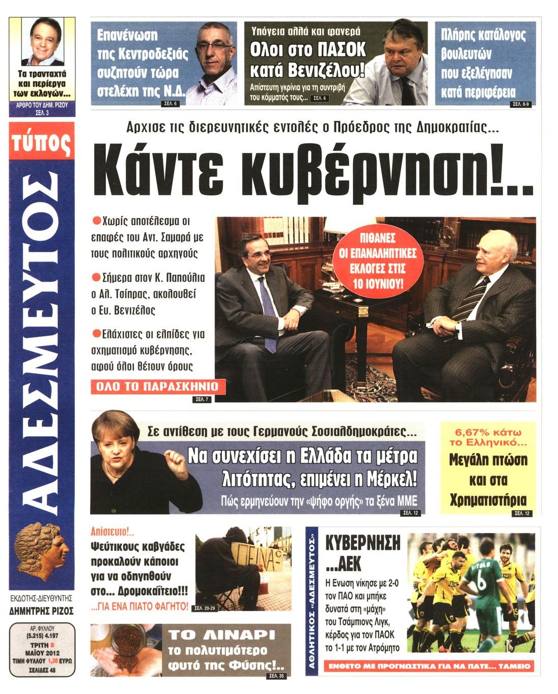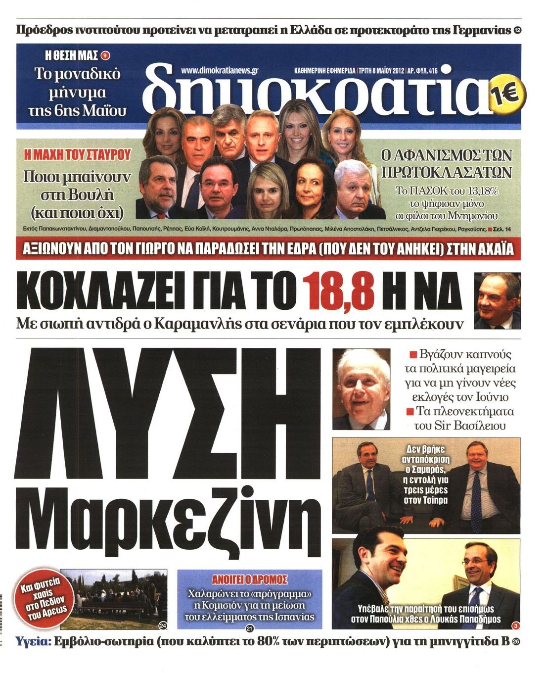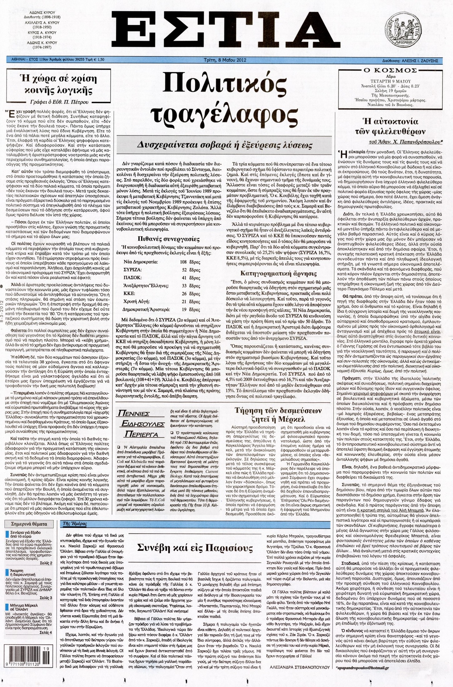 Τα πρωτοσέλιδα των εφημερίδων Enikos Newsroom 07:54, Τρίτη 08 Μαΐου 2012 Media ΕΦΗΜΕΡΙΔΕΣ ΠΡΩΤΟΣΕΛΙΔΑ Μοιράσου το: σχολίασε κι εσύ (0 σχόλια) Ακολουθήστε το enikos.gr στο Google News και μάθετε πρώτοι όλες τις ειδήσεις Δείτε όλες τις τελευταίες ειδήσεις από την Ελλάδα και τον Κόσμο στο enikos.gr Ειδήσεις Ροή Ειδήσεων 4 ώρες πριν Εκτός ευρωομάδας ΣΥΡΙΖΑ ο Νίκος Παππάς μετά την επίθεση στον δημοσιογράφο Νίκο Γιαννόπουλο – Η μήνυση και οι νέες δηλώσεις 5 ώρες πριν «Αγριεύουν» οι αγρότες: «Δεν συντρέχει λόγος συνάντησης με τον πρωθυπουργό» – Ώρα αποφάσεων στη σύσκεψη της Πέμπτης 5 ώρες πριν Κυψέλη: Χωρίς την οικογένειά της δίπλα της απολογήθηκε η 16χρονη – «Της είχε επιτεθεί κάποιος για να την βιάσει, φοβήθηκε και κυκλοφορούσε με μαχαίρι» 4 ώρες πριν Politico: Το πρόβλημα της Ευρώπης δεν είναι το Βέλγιο αλλά ο Ντόναλντ Τραμπ 6 ώρες πριν Αλεξανδρούπολη: Πολυοργανική ανεπάρκεια λόγω υποσιτισμού η αιτία θανάτου του 3χρονου αγοριού 5 ώρες πριν Μυστήριο με τεράστιες κυκλικές πέτρες 200 κιλών – Ανακαλύφθηκαν τυχαία κατά τη διάρκεια οδικών έργων και κανείς δεν ξέρει από πού προέρχονται 6 ώρες πριν Ύπνος: Ειδικός εξηγεί τον πραγματικό λόγο που ξυπνάτε στις 4 τα ξημερώματα – Ο ρόλος των ορμονών και του κιρκάδιου ρυθμού 7 ώρες πριν Αριθμολογία: Οι άνθρωποι που έχουν γεννηθεί αυτές τις 4 ημερομηνίες, είναι τρυφεροί και αγαπούν ανιδιοτελώς 18 ώρες πριν 20 χρόνια τα Χριστούγεννα ξεκινούν στα Public με μεγάλη ποικιλία σε δώρα! 17 λεπτά πριν Βραζιλία: Το Κογκρέσο ενέκρινε σχέδιο νόμου για τη μείωση της ποινής του πρώην προέδρου Μπολσονάρου 31 λεπτά πριν Ένταση στο περιφερειακό συμβούλιο Δυτικής Μακεδονίας: Φωνές, σπρωξιές και διακοπή – Δείτε βίντεο 46 λεπτά πριν Σουδάν: Επιδρομή drone σε χωριό του Νότιου Κορντοφάν – Οκτώ νεκροί 1 ώρα πριν Αλ Τσαντίρι Νιουζ: Η κόρη της Πάολα στο κοινό – Η ατάκα Λαζόπουλου που την έκανε να «κοκκινήσει» 1 ώρα πριν Ρωσία: Ουκρανικές δυνάμεις έπληξαν πλοίο στο λιμάνι του Ροστόφ – Αναφορές για θύματα ENIKOS NETWORK Αϋπνία: Το κόλπο που θα σας βοηθήσει να κοιμηθείτε απόψε – Είναι απλό και έχει αποτέλεσμα 2,6 εκατομμύρια πολίτες έχουν ήδη εμβολιαστεί κατά της γρίπης ΕΛΣΤΑΤ: Τι δείχνουν τα νέα στοιχεία για τις ηλεκτρονικές παραγγελίες των επιχειρήσεων ΚΕΠΕ: Οι 3 διακριτές συμβολές των ΜμΕ και της μεταποίησης στην ελληνική οικονομία Χαρτογραφώντας το «σημείο χωρίς επιστροφή»: Για πρώτη φορά αποκαλύπτεται με λεπτομέρεια το ακανθώδες όριο της ατμόσφαιρας τ... Η Google καταργεί τη λειτουργία «dark web report» – Πώς θα μπορούν οι χρήστες να διαγράφουν τα δεδομένα τους περισσότερα 02:30 , Πέμπτη 18 Δεκεμβρίου 2025 Αλ Τσαντίρι Νιουζ: Η κόρη της Πάολα στο κοινό – Η ατάκα Λαζόπουλου που την έκανε να «κοκκινήσει» Γιορτινή διάθεση και ευχάριστες στιγμές γέμισε η αποψινή, τελευταία για το 2025, εκπομπή του «... 22:24 , Τετάρτη 17 Δεκεμβρίου 2025 Το Σπίτι Δίπλα Στο Ποτάμι: Σε κίνδυνο η υγεία του Απόστολου – Τι θα δούμε απόψε “Το Σπίτι Δίπλα στο Ποτάμι” ξετυλίγει το νήμα της ζωής των πέντε αδελφών με καταισ... 21:14 , Τετάρτη 17 Δεκεμβρίου 2025 Παιχνίδια Εκδίκησης: Θα καταφέρει ο Χρήστος να κλονίσει την εμπιστοσύνη της Μάγιας απέναντι στον Άγη; Τα «Παιχνίδια Εκδίκησης» έρχονται απόψε στις 22:30, στον Αντ1, με το τελευταίο επεισόδιο της χ... 20:57 , Τετάρτη 17 Δεκεμβρίου 2025 Άγιος Έρωτας: Η Χλόη καταθέτει εναντίον του πατέρα της και ο Χάρης αποκαλύπτει στον Κλεάνθη ότι δεν είναι ο βιολογικός του πατέρας. Γεμάτο αποκαλύψεις είναι το νέο 