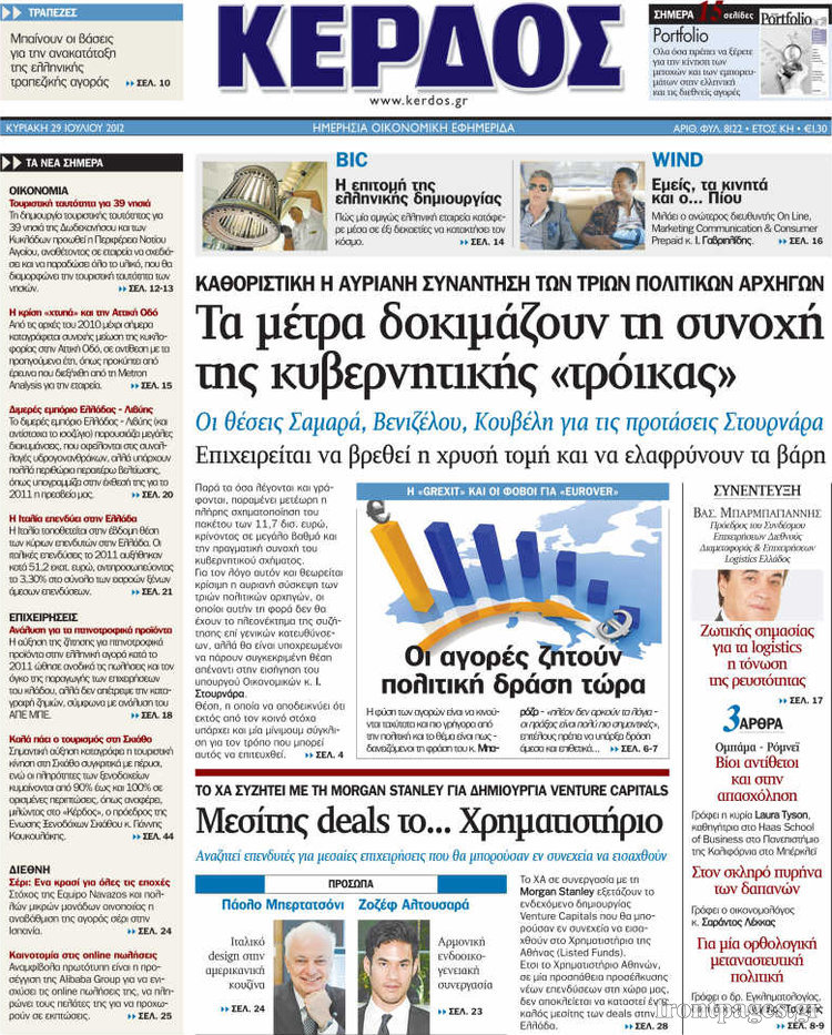 Τα πρωτοσέλιδα των οικονομικών εφημερίδων