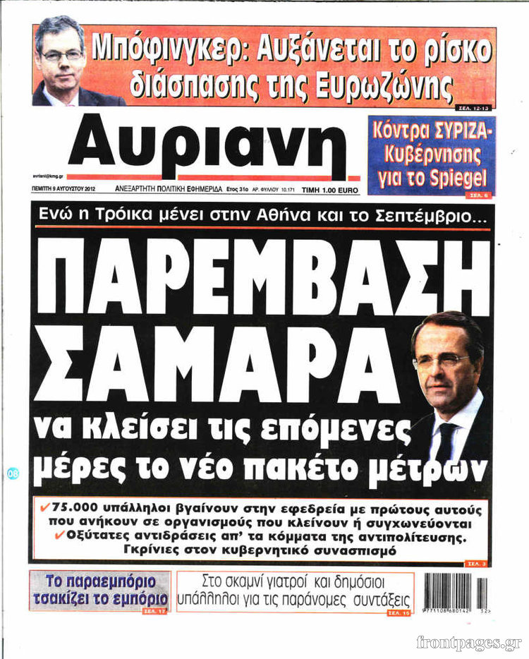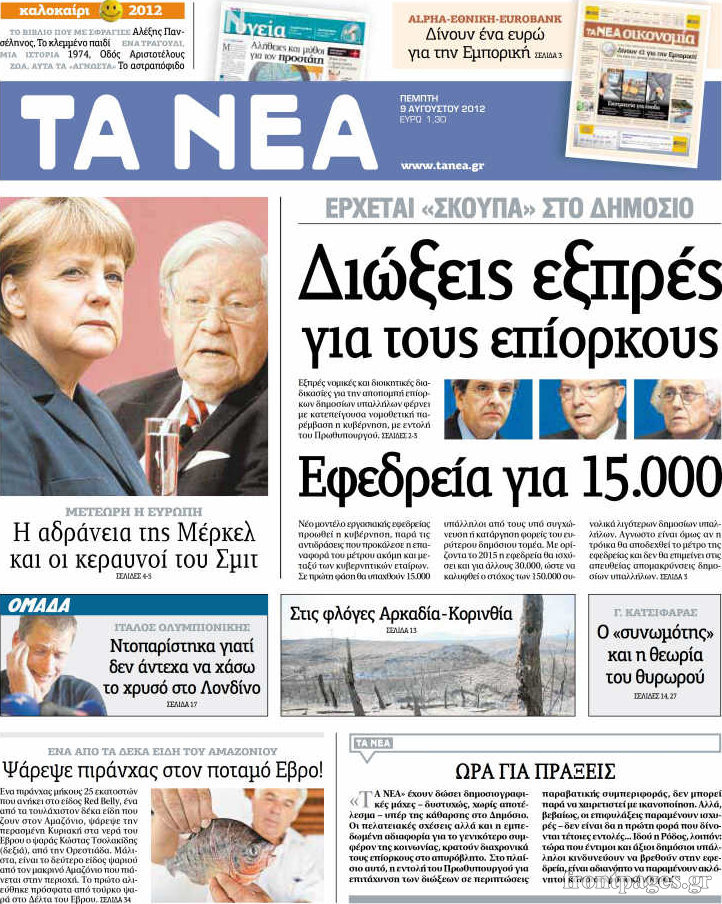 Δείτε τα πρωτοσέλιδα των πολιτικών εφημερίδων…