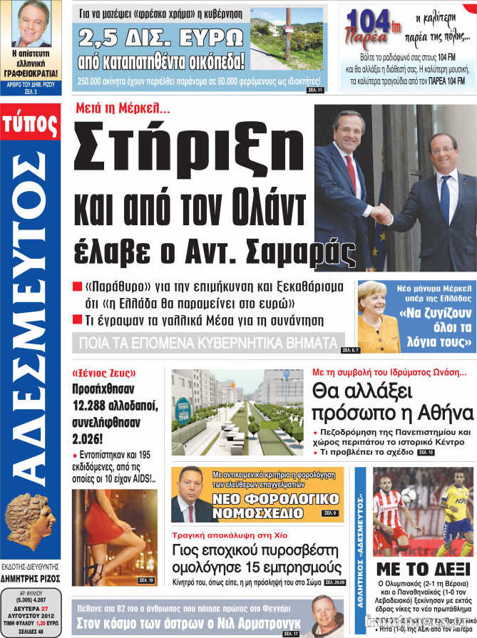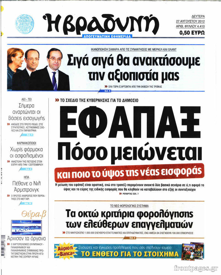 Διαβάστε τα πρωτοσέλιδα του πολιτικού Τύπου…