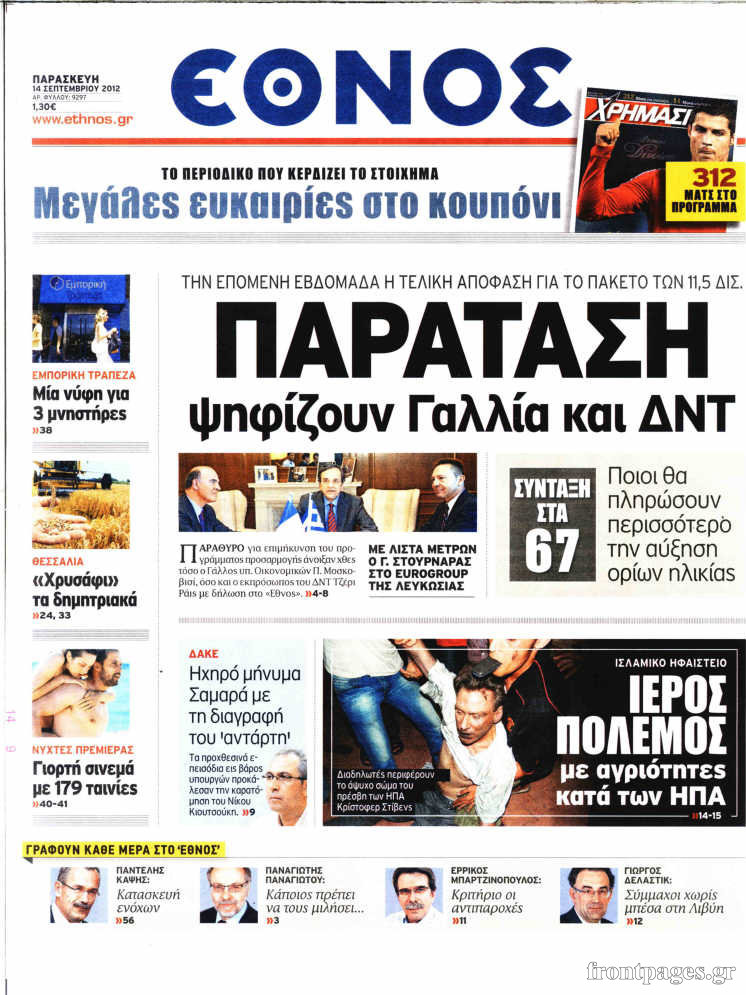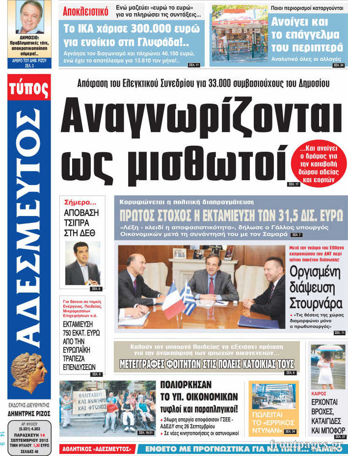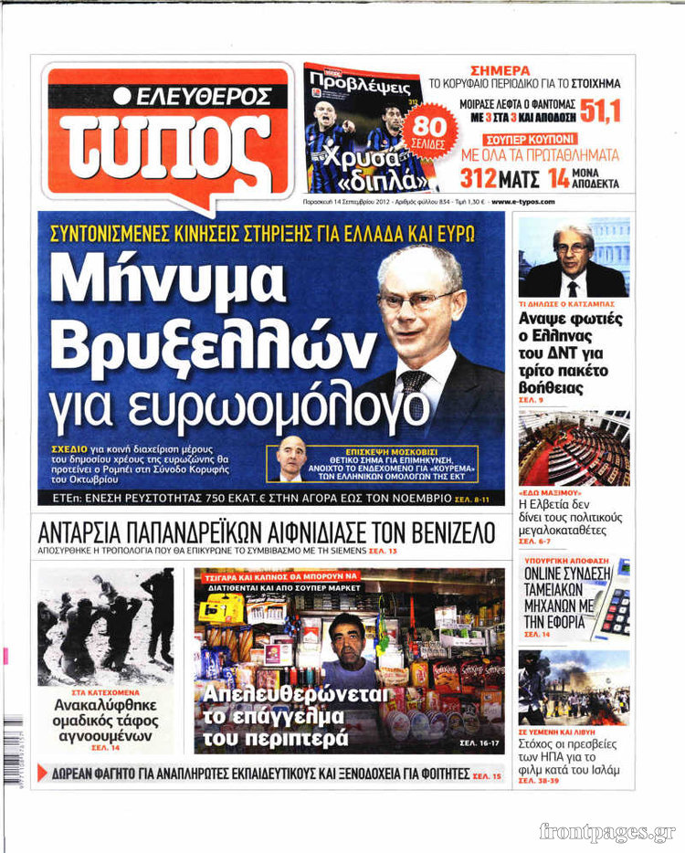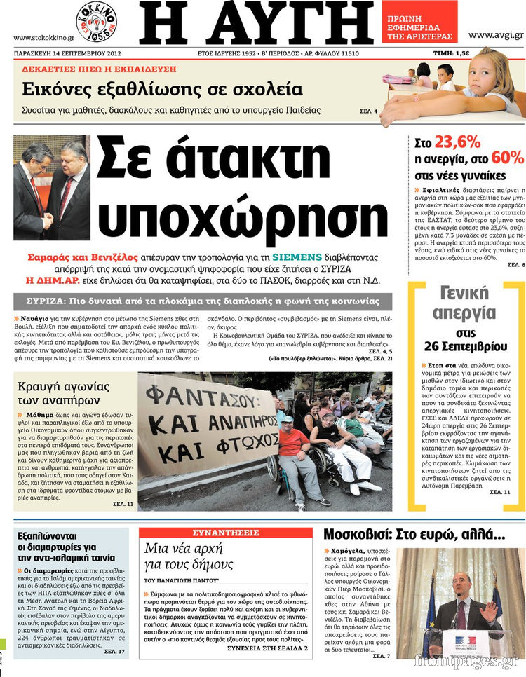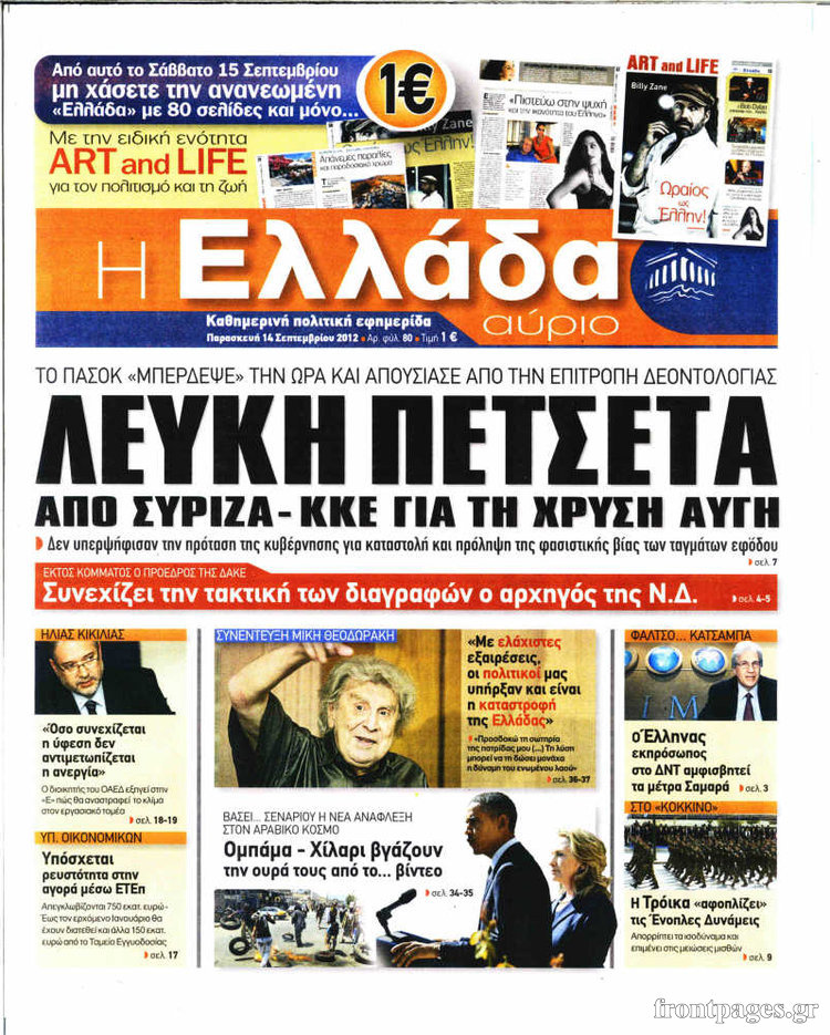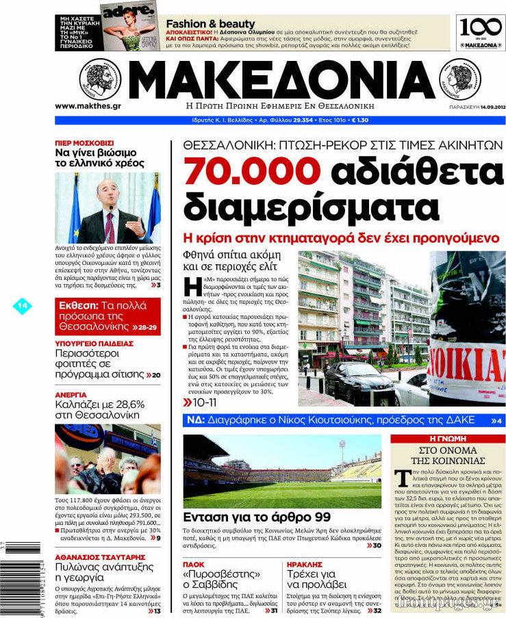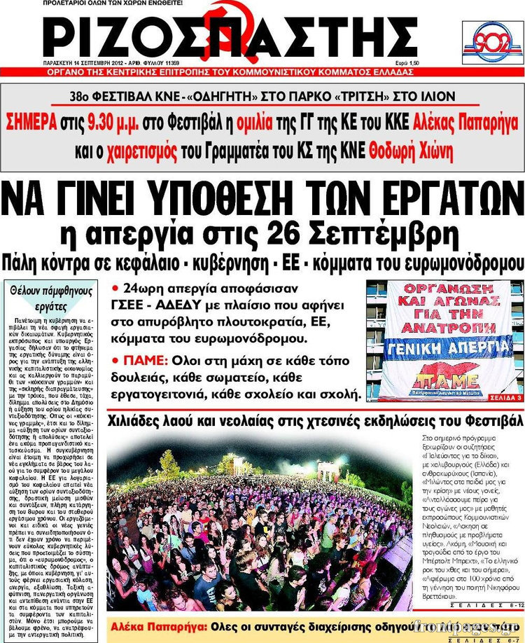 Διαβάστε τα σημερινά πρωτοσέλιδα των πολιτικών εφημερίδων.