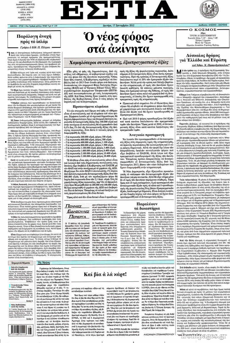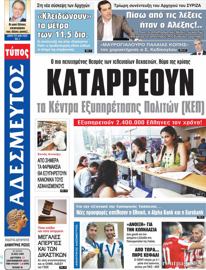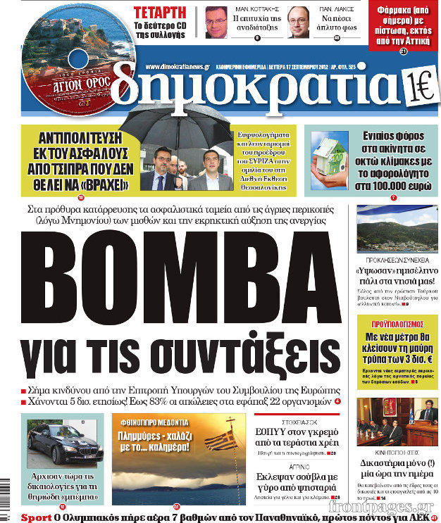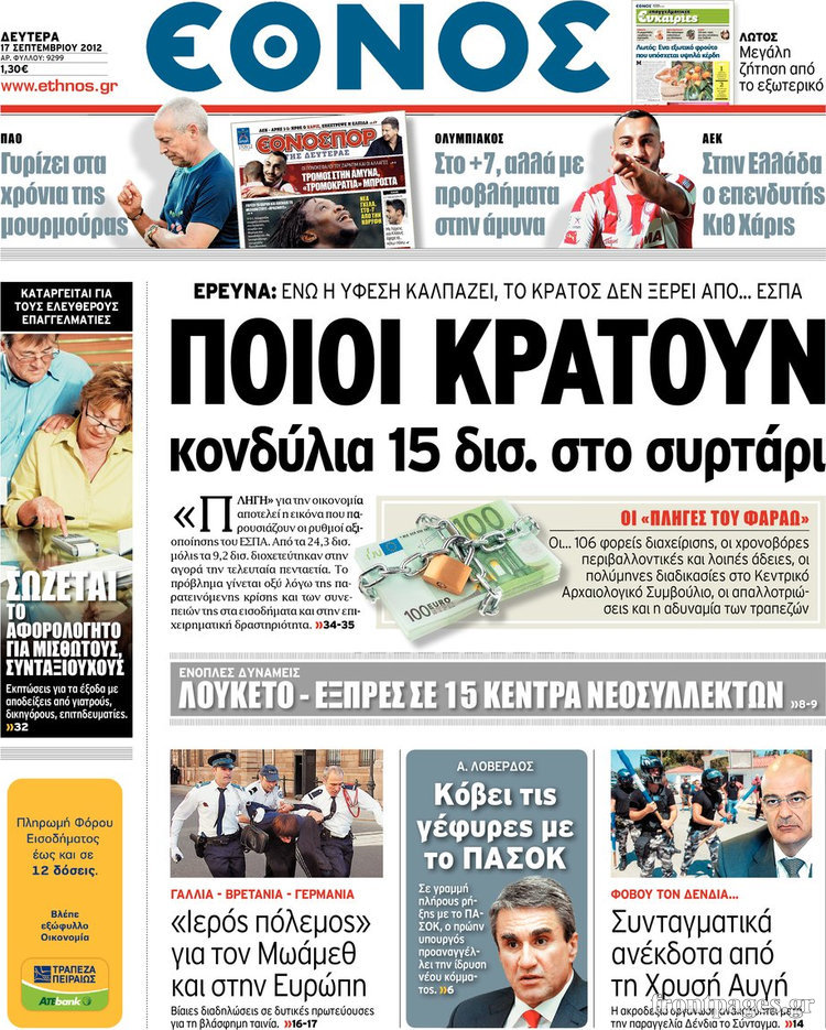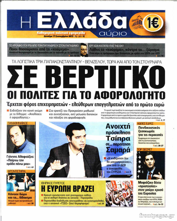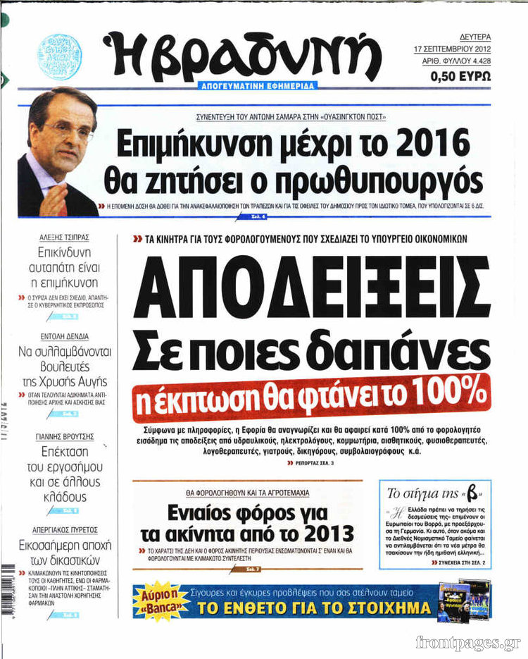 Τα σημερινά πρωτοσέλιδα των πολιτικών εφημερίδων.