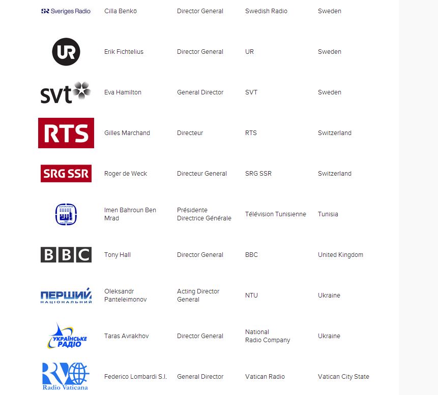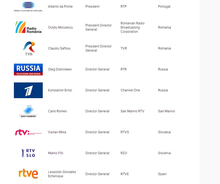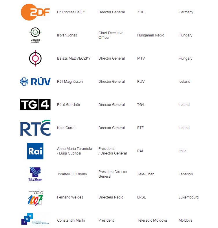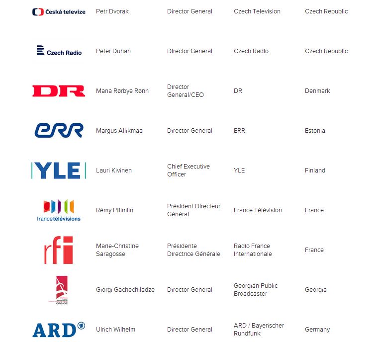 Στην επίσημη σελίδα της EBU αναρτήθηκε η λίστα με τους Διευθυντές που υπογράφουν την επιστολή.