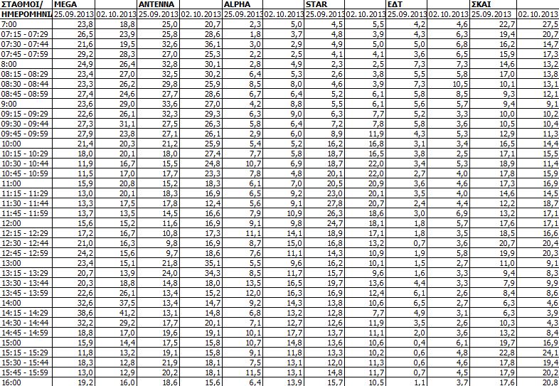 Δείτε τις χθεσινές (2/10) μετρήσεις τηλεθέασης των τηλεοπτικών σταθμών εθνικής εμβέλειας