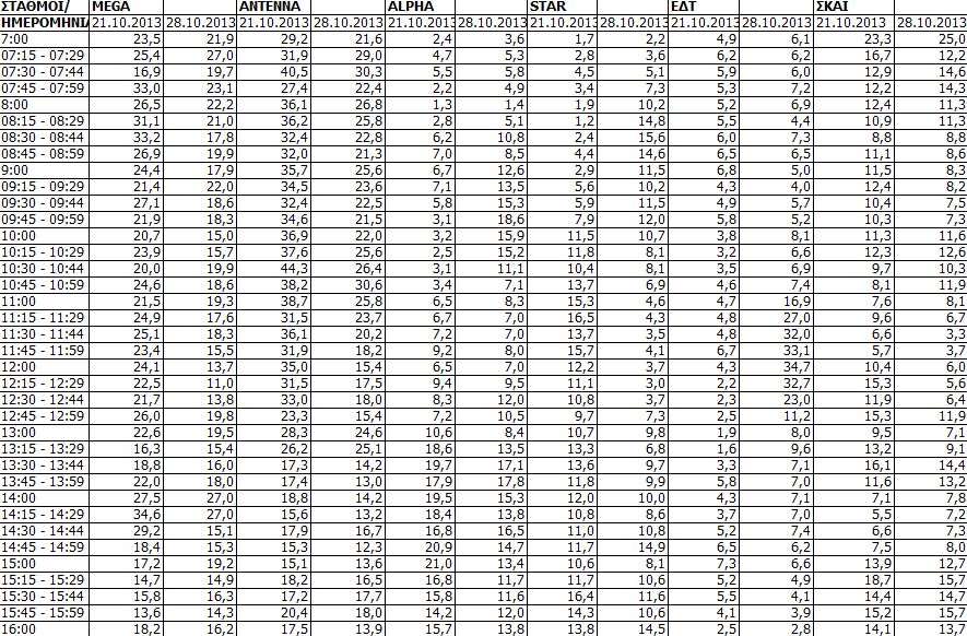 Δείτε τις χθεσινές (28/10) μετρήσεις τηλεθέασης των τηλεοπτικών σταθμών εθνικής εμβέλειας.
