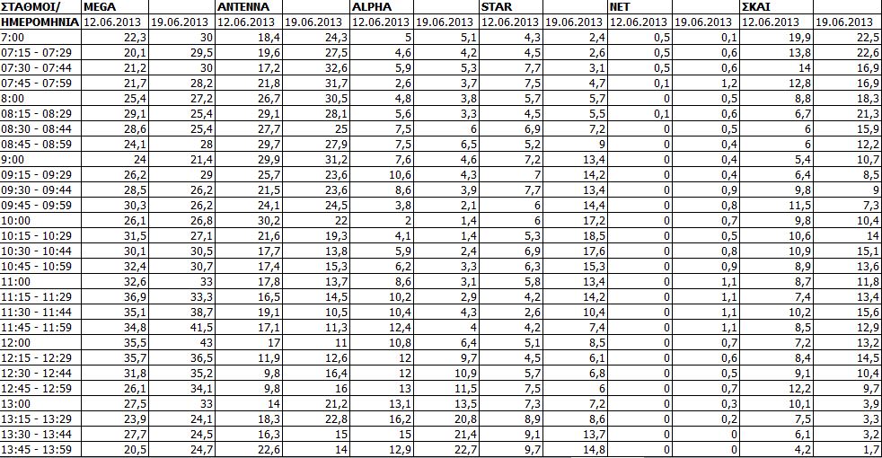 Δείτε τις χτεσινές (19/6) μετρήσεις τηλεθέασης των τηλεοπτικών σταθμών εθνικής εμβέλειας