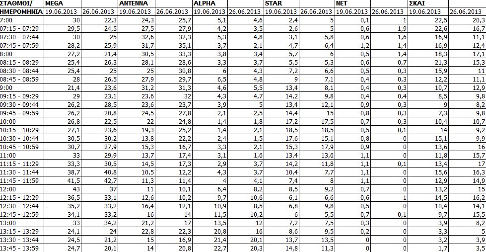 Δείτε τις χτεσινές (26/6) μετρήσεις τηλεθέασης των τηλεοπτικών σταθμών εθνικής εμβέλειας