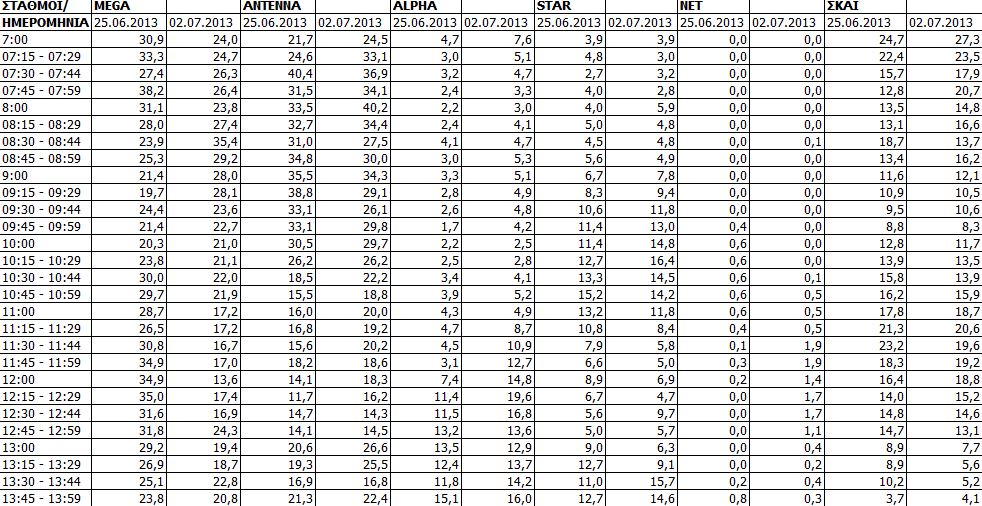 Δείτε τις χθεσινές (2/7) μετρήσεις τηλεθέασης των τηλεοπτικών σταθμών εθνικής εμβέλειας