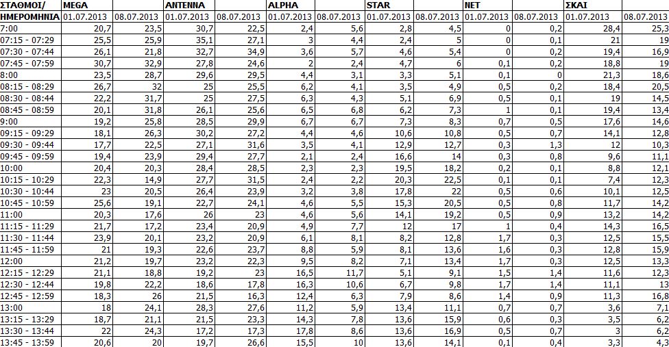 Δείτε τις χθεσινές (8/7) μετρήσεις τηλεθέασης των τηλεοπτικών σταθμών εθνικής εμβέλειας