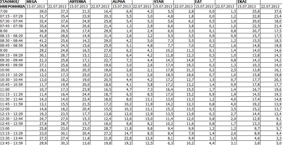 Δείτε τις χθεσινές (22/7) μετρήσεις τηλεθέασης των τηλεοπτικών σταθμών εθνικής εμβέλειας