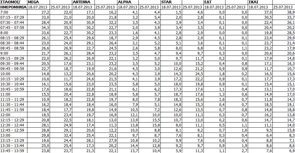 Δείτε τις χθεσινές (25/7) μετρήσεις τηλεθέασης των τηλεοπτικών σταθμών εθνικής εμβέλειας