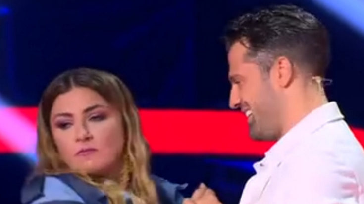 «Ήρθε ένα πουλάκι στο αυτάκι μου και μου είπε ότι εσύ με μπλόκαρες» ανέφερε η τραγουδίστρια και κριτής του μουσικού τάλεντ σόου ενώ χώθηκε για λίγο στην αγκαλιά του Κωσναντίνου Αργυρού. «Μ’ αγαπάς; Να σου πω κάτι… Καλό, καλό, κακό» είπε πριν του δώσει το χαστούκι.