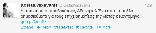Στο σχετικό tweet του ο δημοσιογράφος κάνει λόγο για προβοκάτσιες και επισυνάπτει ένα δημοσίευμα από την ιστοσελίδα του “Το κουτί της Πανδώρας” με τίτλο “Τι θα γίνει με τους μεγαλοεπιχειρηματίες της λίστας Λαγκάρντ;” .