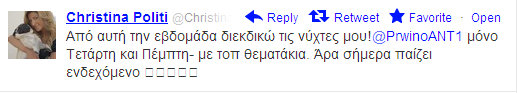 Χθες, γύρω στις 21:00 η Χριστίνα Πολίτη έγραψε στο twitter της: