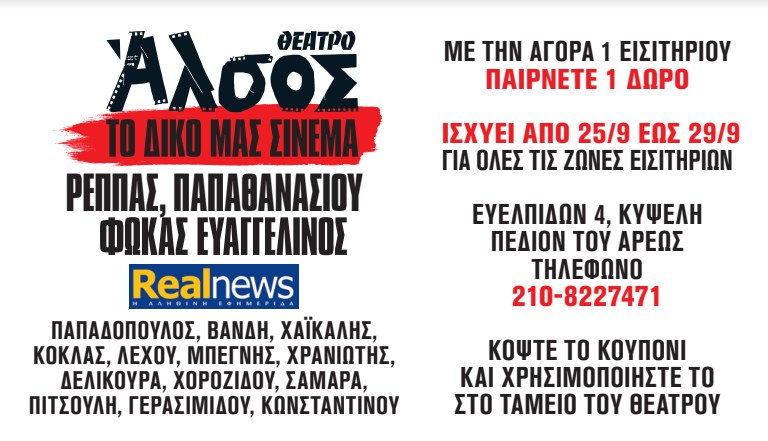 Ένα κουπόνι για την παράσταση της χρονιάς στο θέατρο Αλσος, “Το δικό μας σινεμά” των Ρέππα – Παπαθανασίου & Φωκά Ευαγγελινού.