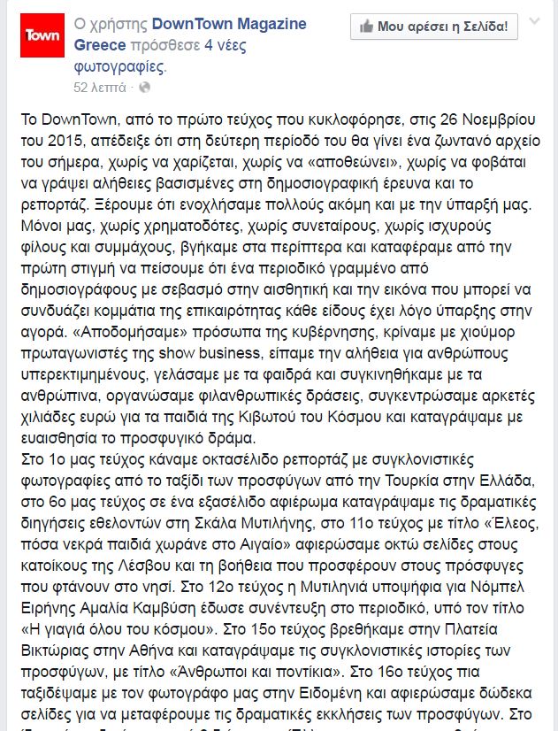 Διαβάστε την απάντηση του περιοδικού Down Τown με αφορμή το εξώφυλλο με τους “πρόσφυγες” που προκάλεσε πολλές αντιδράσεις.