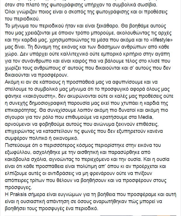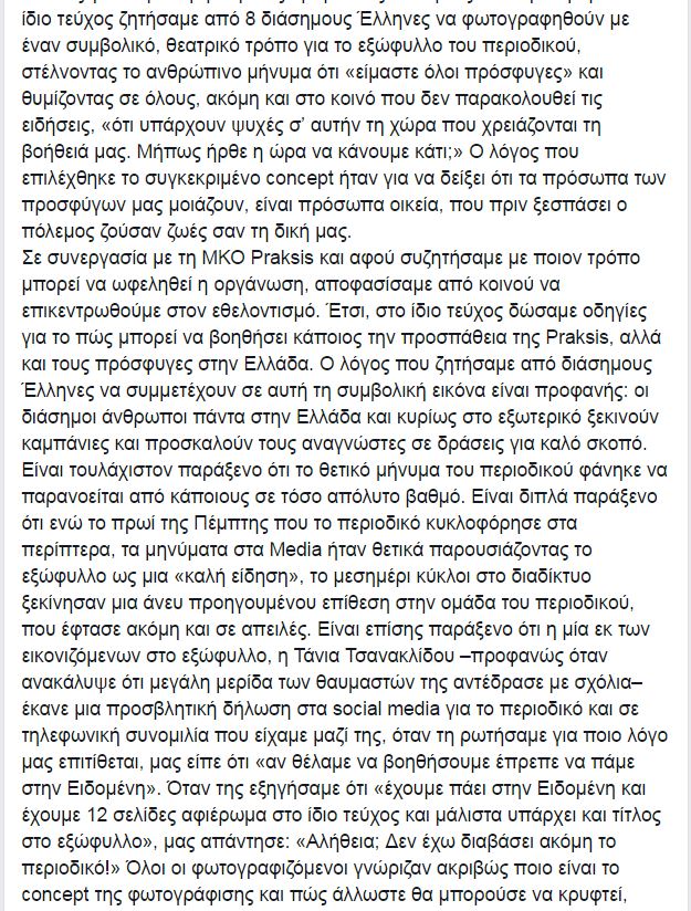 Το περιοδικό ανήρτησε στην σελίδα του στο Facebook τη δική του θέση για τις αντιδράσεις την επιλογή του θέματος και τα πρόσωπα που επελέγησαν.