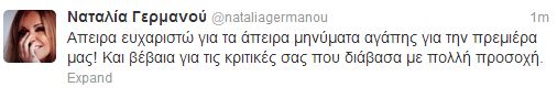 Η πρεμιέρα της εκπομπής “Μες την καλή χαρά” συνοδεύτηκε από πολλά σχόλια και παρατηρήσεις! Πώς απάντησε η Ναταλία;Διαβάστε τι έγραψε στο twitter της: