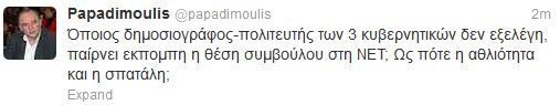 Ο βουλευτής του ΣΥΡΙΖΑ, Δημήτρης Παπαδημούλης, έκανε ένα tweet – καρφί για τους δημοσιογράφους – πολιτευτές.Έγραψε: