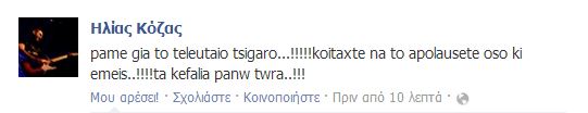 Δύο ώρες απομένουν μέχρι την έναρξη του τελικού της Eurovision. O Ηλίας Κόζας, ο τραγουδιστής των Koza Mostra, πριν από λίγα λεπτά, έστειλε το μήνυμα του μέσω Facebook…