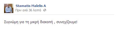 Έγραψε πριν από λίγα λεπτά στην προσωπική του σελίδα: