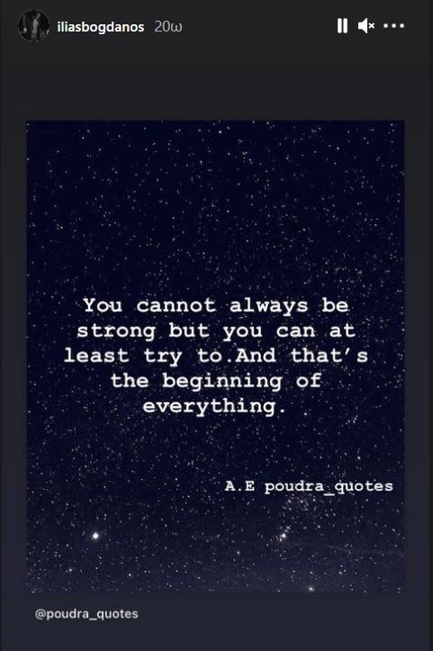 Το πιο πρόσφατο μήνυμά του ήταν ένα story με τη φράση “Δεν μπορείς πάντα να είσαι δυνατός αλλά μπορείς τουλάχιστον να προσπαθείς. Και αυτό είναι η αρχή των πάντων”.