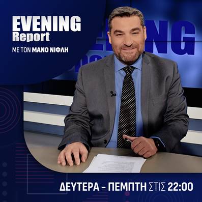 Evening Report: Η άλλη διάσταση της ενημέρωσης. Η πολιτική ατζέντα σήμερα και όλα όσα θα έρθουν την επόμενη μέρα. Ρεπορτάζ, αποκλειστικότητες και ανάλυση σε βάθος. Δευτέρα με Πέμπτη με τον Μάνο Νιφλή. Σταθεροί σχολιαστές: Γιώργος Μουρούτης, Μαρία Καρακλιούμη.