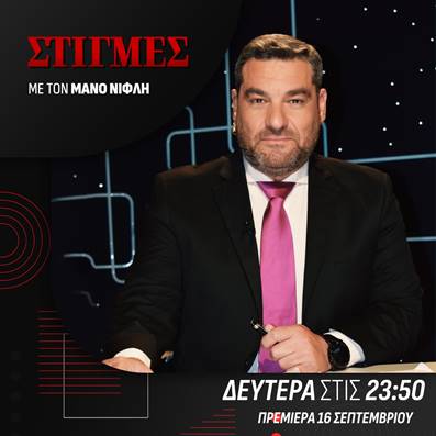 Στιγμές: Σε κάθε επεισόδιο της εκπομπής, δημοφιλείς καλεσμένοι από τον χώρο της πολιτικής, της τέχνης και της επικαιρότητας έχουν την ευκαιρία να συστηθούν εκ νέου στο κοινό αποκαλύπτοντας άγνωστες πτυχές της ζωής τους. Κάθε Δευτέρα λίγο πριν από τα μεσάνυχτα, με τον Μάνο Νιφλή. (Η εκπομπή θα κάνει πρεμιέρα την Δευτέρα 16 Σεπτεμβρίου).