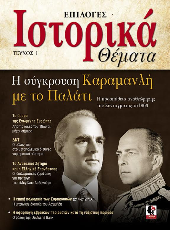 Στα τεύχη των ΙΣΤΟΡΙΚΩΝ ΘΕΜΑΤΩΝ που θα διανέμονται με τη Realnews, οι αναγνώστες θα έχουν την ευκαιρία να διαβάσουν συναρπαστικά και εμπεριστατωμένα άρθρα για πλήθος θεμάτων. Στο τεύχος αυτής της Κυριακής : Η σύγκρουση Καραμανλή με το παλάτι, ο ρόλος του Διεθνούς νομισματικού ταμείου, το όραμα της ενωμένης Ευρώπης, το Ανατολικό Ζήτημα η Ελληνική Επανάσταση και πολλά άλλα θέματα.