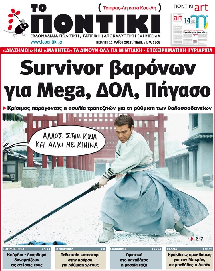 Με πρωτοσέλιδο τίτλο «Survivor βαρόνων για Mega, ΔΟΛ, Πήγασο» και αναλυτικό – αποκαλυπτικό ρεπορτάζ για την επιχειρηματική κυριαρχία στο μιντιακό τοπίο και την ασυλία των τραπεζών για τη ρύθμιση των θαλασσοδανείων.