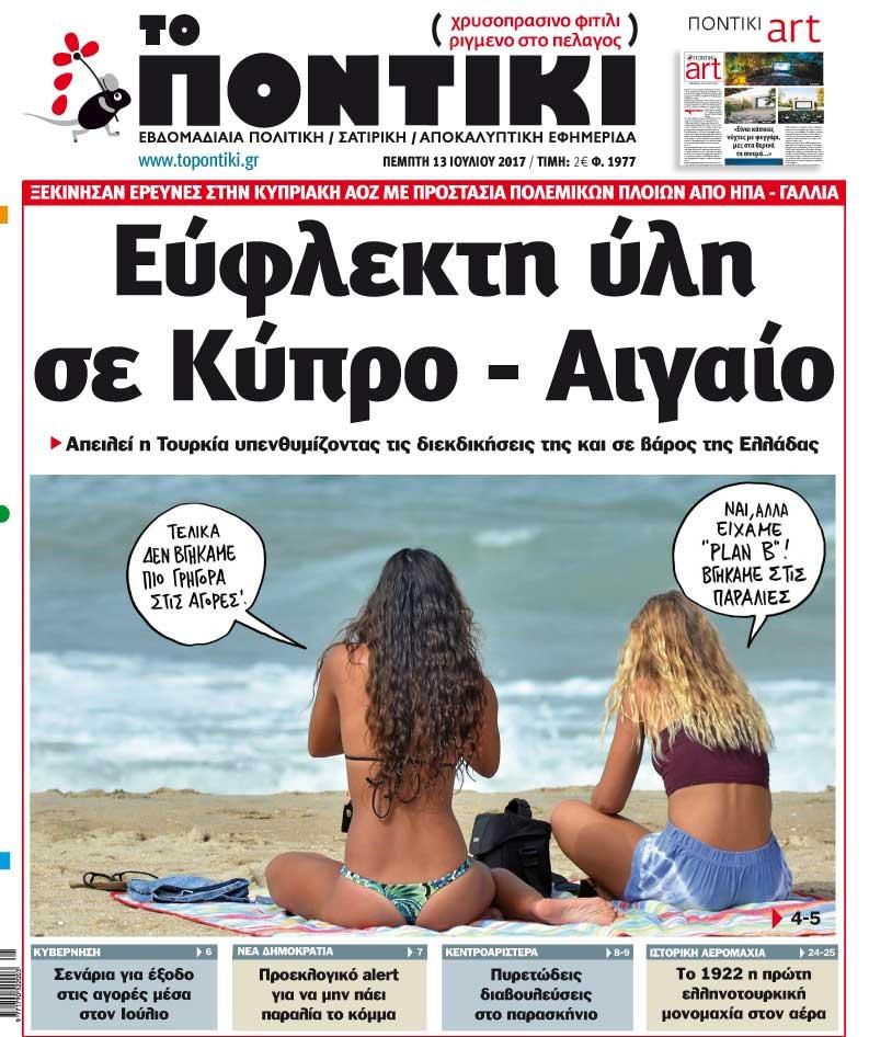 Διαβάστε το σημερινό πρωτοσέλιδο της εφημερίδας “Το Ποντίκι”: