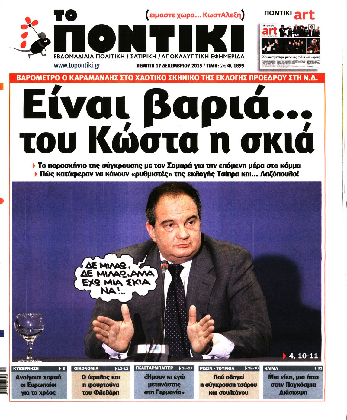 Το Ποντίκι σήμερα 17/12/2015 Enikos Newsroom 06:42, Πέμπτη 17 Δεκεμβρίου 2015 Media Διαβάστε το σημερινό πρωτοσέλιδο της εφημερίδας ”Το Ποντίκι”… ΠΕΜΠΤΗ ΠΡΩΤΟΣΕΛΙΔΟ ΣΑΤΥΡΙΚΗ ΕΦΗΜΕΡΙΔΑ ΤΟ ΠΟΝΤΙΚΙ Μοιράσου το: σχολίασε κι εσύ (0 σχόλια) Ακολουθήστε το enikos.gr στο Google News και μάθετε πρώτοι όλες τις ειδήσεις Δείτε όλες τις τελευταίες ειδήσεις από την Ελλάδα και τον Κόσμο στο enikos.gr Ειδήσεις Ροή Ειδήσεων 4 ώρες πριν Αυτή είναι η λίστα με τα αιτήματα των αγροτών – Το «όχι» στη συνάντηση στο Μαξίμου και η έκκληση της κυβέρνησης για διάλογο με ανοιχτούς δρόμους 3 ώρες πριν Απάτες με επιδοτήσεις από τον ΟΠΕΚΕΠΕ στην Κρήτη: Ξεκίνησε η μεταγωγή των 16 συλληφθέντων στην Αθήνα – Τι λένε οι δικηγόροι τους 4 ώρες πριν Κρήτη: Θρίλερ με την εξαφάνιση του 33χρονου γιατρού – «Μου είπε “έλα πατέρα να μιλήσουμε γιατί δεν είμαι καλά”» 3 ώρες πριν Αργυρούπολη: Απείλησε με… τσεκούρι άλλον οδηγό ύστερα από καβγά – Στο αυτοκίνητό του βρέθηκε και αεροβόλο 2 ώρες πριν ΗΠΑ: Έψαχνε τον γιο του στο Ground Zero για έξι μήνες – 24 χρόνια αργότερα, η 11η Σεπτεμβρίου τον σκότωσε και αυτόν 2 ώρες πριν Αριθμολογία: Οι άνθρωποι που έχουν γεννηθεί αυτές τις 4 ημερομηνίες, δεν αντέχουν να κάνουν μία κλασική δουλειά γραφείου 4 ώρες πριν Γιατί δεν είστε ευτυχισμένοι: Τα 7 σημάδια που μαρτυρούν ότι αναζητάτε την πηγή της χαράς σε λάθος μέρη 7 ώρες πριν Το φινάλε του 2025 θα είναι μαγικό για 5 ζώδια – «Προαγωγές και νέες σχέσεις που θα διαρκέσουν μια ζωή» 3 ώρες πριν Χριστουγεννιάτικο δέντρο: Το έξυπνο κόλπο με τα στολίδια για να φαίνεται πιο γεμάτο 5 λεπτά πριν Αργυρούπολη: Έκλεψε το κινητό 74χρονου που επέβαινε σε συρμό του μετρό και… απαίτησε 100 ευρώ για να του το επιστρέψει 12 λεπτά πριν Φαίη Ξυλά: «Ήταν πολύ άσχημες περιπτώσεις – Δεν θα το άλλαζα, απλώς σίγουρα δεν θα το έκανα ξανά» 21 λεπτά πριν Άγιος έρωτας- επόμενα επεισόδια: Ο Αντρέας μαθαίνει ότι ο Χάρης είναι γιος του 29 λεπτά πριν Έφοδος της ΕΛ.ΑΣ. στις φυλακές Κορυδαλλού – Εντοπίστηκαν 4 κινητά τηλέφωνα 37 λεπτά πριν Ύπνος: 9 πράγματα που μπορείτε να κάνετε πριν κοιμηθείτε για να ξυπνάτε πιο χαρούμενοι το πρωί, σύμφωνα με ειδικούς ENIKOS NETWORK «Με αυτόν τον τρόπο κατάφερα να απογειώσω τη σεξουαλική μου ζωή» – Τι αποκαλύπτει 40χρονη Πείτε «τέλος» στην ακμή χωρίς φάρμακα – Ειδικός αποκαλύπτει αποτελεσματική ρουτίνα περιποίησης Νέα εποχή για την Εγνατία Οδό – Τι αλλάζει με επενδύσεις 1,8 δισ. ευρώ Στάση εργασίας στα λεωφορεία την Τετάρτη 17 Δεκεμβρίου – Κανονικά τα περιαστικά δρομολόγια Σύγχρονος Νοστράδαμος: Προειδοποιεί για «μεγάλο γεγονός» τους επόμενους μήνες που θα συγκλονίσει τη Βρετανία και τον κόσμο Τεστ παρατηρητικότητας: Μπορείτε να βρείτε τις 3 διαφορές στις εικόνες με έναν πιγκουίνο σε 14 δευτερόλεπτα περισσότερα 22:16 , Σάββατο 13 Δεκεμβρίου 2025 Άγιος έρωτας- επόμενα επεισόδια: Ο Αντρέας μαθαίνει ότι ο Χάρης είναι γιος του Μια εβδομάδα γεμάτη καταιγιστικές εξελίξεις στα νέα επεισόδια της σειράς “Άγιος Έρωτας... 20:40 , Σάββατο 13 Δεκεμβρίου 2025 HOTΕΛ ΕΛVIRA: Η Ελβίρα προσπαθεί να βγάλει οριστικά από το μυαλό της τον Χάρι, απόψε στις 21:00 Σε προεκλογικό πυρετό βρίσκεται το νησί, στο νέο επεισόδιο της κωμωδίας του MEGA, HOTΕΛ ΕΛVIRA... 18:00 , Σάββατο 13 Δεκεμβρίου 2025 Η Realnews στο www.pressreader.com Διαβάστε την ψηφιακή έκδοση της εφημερίδας στην οθόνη του κινητού, του tablet και του υπολογισ... 15:46 , Σάββατο 13 Δεκεμβρίου 2025 Τηλεθέαση (12/12): Ποιες εκπομπές της πρωινής ζώνης πήραν προβάδισμα την Παρασ