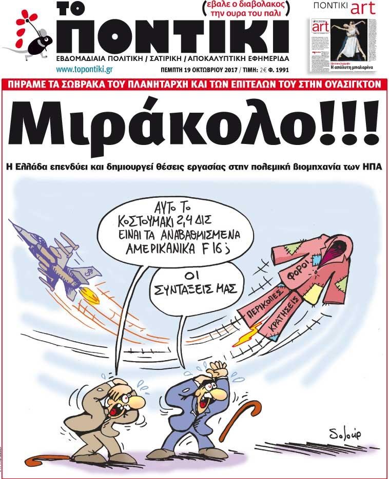 Με πρωτοσέλιδο τίτλο «Μιράκολο!!!» και αναλυτικό-αποκαλυπτικό ρεπορτάζ για τα αποτελέσματα της συνάντησης Τσίπρα-Τραμπ στον Λευκό Οίκο, γι’ αυτά που πήραμε κι αυτά που δώσαμε.