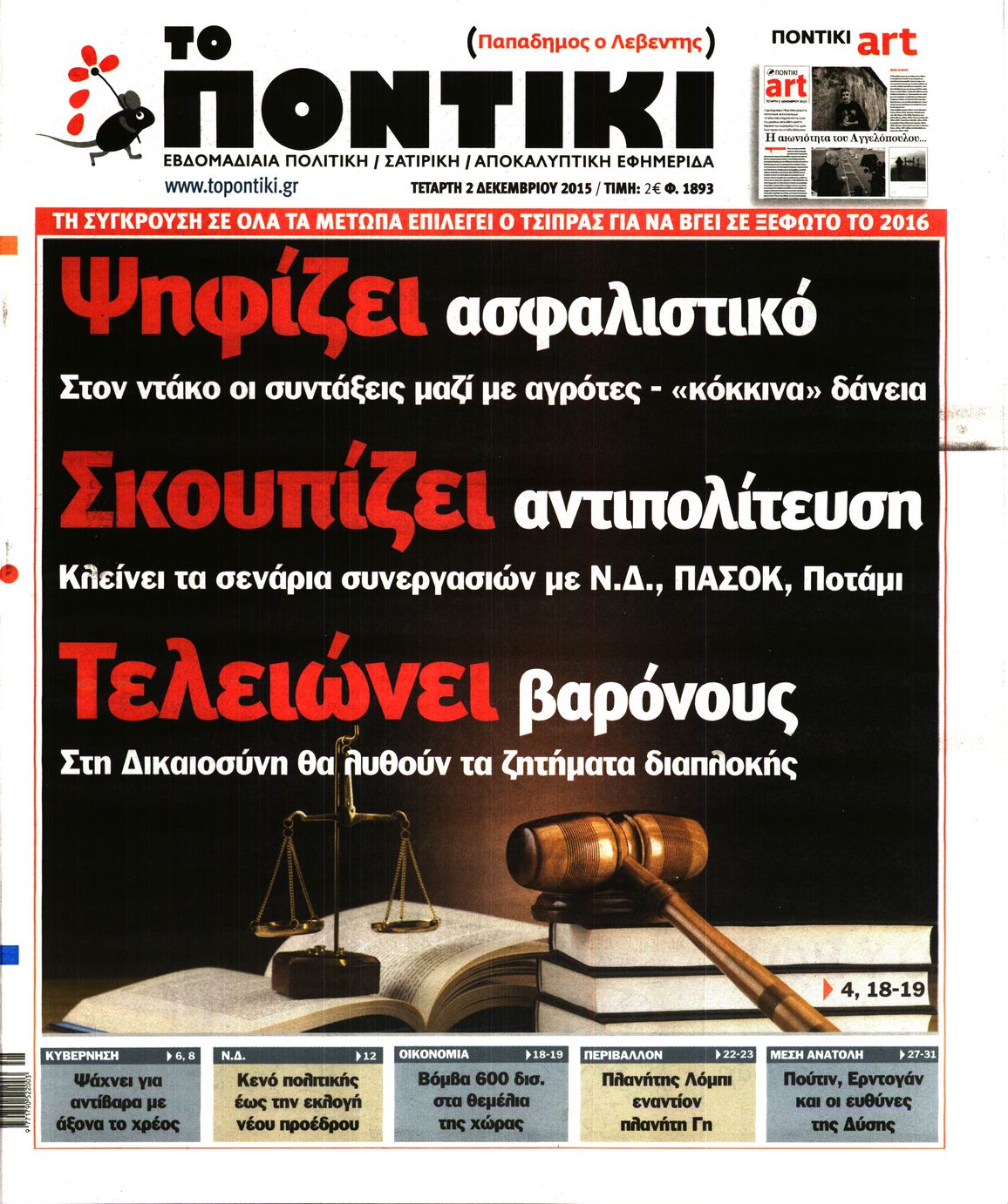 Το Ποντίκι σήμερα 2/12/2015 Enikos Newsroom 06:53, Τετάρτη 02 Δεκεμβρίου 2015 Media Διαβάστε το σημερινό πρωτοσέλιδο της εφημερίδας ”Το Ποντίκι”… ΠΡΩΤΟΣΕΛΙΔΟ ΣΑΤΥΡΙΚΗ ΕΦΗΜΕΡΙΔΑ ΤΟ ΠΟΝΤΙΚΙ Μοιράσου το: σχολίασε κι εσύ (0 σχόλια) Ακολουθήστε το enikos.gr στο Google News και μάθετε πρώτοι όλες τις ειδήσεις Δείτε όλες τις τελευταίες ειδήσεις από την Ελλάδα και τον Κόσμο στο enikos.gr Ειδήσεις Ροή Ειδήσεων 1 ώρα πριν ΟΠΕΚΕΠΕ – Κρήτη: Στην Ευρωπαϊκή Εισαγγελία οι 15 από τους 16 συλληφθέντες για τις παράνομες επιδοτήσεις 37 λεπτά πριν Μακελειό στο Πανεπιστήμιο Μπράουν: Ένοπλος σκότωσε 2 άτομα και τραυμάτισε 9 – Το χρονικό των «ματωμένων» εξετάσεων και το βίντεο με τον ύποπτο δράστη 10 ώρες πριν Ανυποχώρητοι οι αγρότες: Δεν πάνε στο Μαξίμου, κλιμακώνουν τις κινητοποιήσεις – Ποια είναι τα αιτήματά τους 31 λεπτά πριν Κυριακή με ανοιχτά καταστήματα σήμερα: Το ωράριο λειτουργίας – Τι ισχύει για τα σούπερ μάρκετ 2 ώρες πριν Εθνικό Μητρώο Παροχών και Ενισχύσεων: Ποιες αλλαγές έρχονται και πώς θα λειτουργεί 51 λεπτά πριν Στο φως απομεινάρια μιας ξεχασμένης πόλης που «σημαδεύτηκε από συγκρούσεις» – Είναι θαμμένη κάτω από σύγχρονη μεγαλούπολη 3 ώρες πριν Οπτική ψευδαίσθηση: Μόνο αν έχετε παρατηρητικότητα ντετέκτιβ, θα βρείτε τον αριθμό «6» σε 5 δευτερόλεπτα 3 ώρες πριν Σπλαχνικό λίπος: Γιατρός του Χάρβαρντ αποκαλύπτει 7 τροφές που βοηθούν στη μείωσή του με φυσικό τρόπο 3 ώρες πριν Τα ζώδια σήμερα, Κυριακή 14 Δεκεμβρίου: Παρθένοι, αφιερώστε χρόνο για να καταλάβετε καλύτερα τα συναισθήματα 7 λεπτά πριν Η Realnews στο www.pressreader.com 14 λεπτά πριν Δώρο Χριστουγέννων 2025: Αντίστροφη μέτρηση για την καταβολή του – Ποιοι θα πάρουν περισσότερα φέτος και τι ισχύει για τη μερική απασχόληση 21 λεπτά πριν Συνταγή για τα πιο viral «κινέζικα λαζάνια» – Το ιδανικό πιάτο για τις κρύες ημέρες του χειμώνα 25 λεπτά πριν Σταθερά τα επιτόκια της ΕΚΤ όλο το 2026 – Τα οφέλη για νοικοκυριά και επιχειρήσεις 31 λεπτά πριν Κυριακή με ανοιχτά καταστήματα σήμερα: Το ωράριο λειτουργίας – Τι ισχύει για τα σούπερ μάρκετ ENIKOS NETWORK Ποια ομάδα αίματος αυξάνει τον κίνδυνο πρόωρου εγκεφαλικού, σύμφωνα με μελέτη Τεστ προσωπικότητας: Το κλειδί που θα επιλέξετε λέει πολλά για τον τρόπο που διαχειρίζεστε τα προβλήματα Εθνικό Μητρώο Παροχών και Ενισχύσεων: Ποιες αλλαγές έρχονται και πώς θα λειτουργεί Νέα εποχή για την Εγνατία Οδό – Τι αλλάζει με επενδύσεις 1,8 δισ. ευρώ Σύγχρονος Νοστράδαμος: Προειδοποιεί για «μεγάλο γεγονός» τους επόμενους μήνες που θα συγκλονίσει τη Βρετανία και τον κόσμο Τεστ παρατηρητικότητας: Μπορείτε να βρείτε τις 3 διαφορές στις εικόνες με έναν πιγκουίνο σε 14 δευτερόλεπτα περισσότερα 08:46 , Κυριακή 14 Δεκεμβρίου 2025 Η Realnews στο www.pressreader.com Διαβάστε την ψηφιακή έκδοση της εφημερίδας στην οθόνη του κινητού, του tablet και του υπολογισ... 08:15 , Κυριακή 14 Δεκεμβρίου 2025 Σήμερα με τη Realnews: Food & Travel μαζί Beaute και Μαστορέματα Σήμερα με τη Realnews: Food & Travel μαζί Beaute και Μαστορέματα Food & Travel Ετοιμάζ... 07:46 , Κυριακή 14 Δεκεμβρίου 2025 Σήμερα με τη Realnews: Σκάναρε & κέρδισε με το PaduApp Τo κορυφαίο app επιβράβευσης στην Ελλάδα που σε ανταμείβει για κάθε αγορά! Κέρδισε με 3 μόνο β... 06:05 , Κυριακή 14 Δεκεμβρίου 2025 Σήμερα με τη Realnews: Δωροεπιταγή 10€ Δωροεπιταγή αξίας 10€ για αγορές άνω των 60€ από τα πολυκαταστήματα Factory Outlet. H προσφορά... ΤΕΛΕΥΤΑΙΕΣ ΕΙΔΗΣΕΙΣ 7 λεπτά πριν Η Realnews στο www.pressreader.com 14 λεπτά πριν Δώρο Χριστουγέννων 2025: Αντίστροφη μέτρηση για την... 21 λεπτά πριν Συνταγ