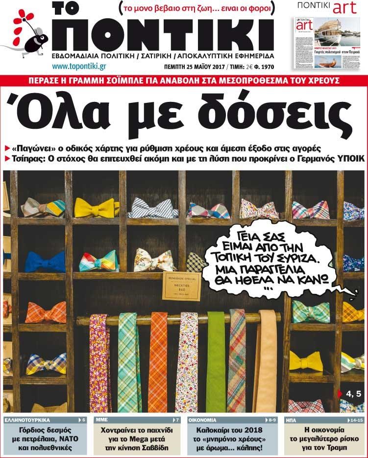 Διαβάστε το σημερινό πρωτοσέλιδο της εφημερίδας “Το Ποντίκι”:
