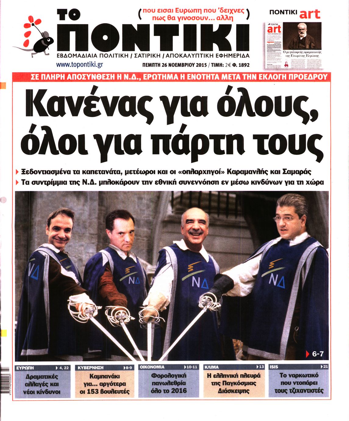 Το Ποντίκι σήμερα 26/11/2015 Enikos Newsroom 05:22, Πέμπτη 26 Νοεμβρίου 2015 Media Διαβάστε το σημερινό πρωτοσέλιδο της εφημερίδας ”Το Ποντίκι”… ΠΕΜΠΤΗ ΠΡΩΤΟΣΕΛΙΔΟ ΣΑΤΥΡΙΚΗ ΕΦΗΜΕΡΙΔΑ ΤΟ ΠΟΝΤΙΚΙ Μοιράσου το: σχολίασε κι εσύ (0 σχόλια) Ακολουθήστε το enikos.gr στο Google News και μάθετε πρώτοι όλες τις ειδήσεις Δείτε όλες τις τελευταίες ειδήσεις από την Ελλάδα και τον Κόσμο στο enikos.gr Ειδήσεις Ροή Ειδήσεων 3 ώρες πριν Αυτή είναι η λίστα με τα αιτήματα των αγροτών – Το «όχι» στη συνάντηση στο Μαξίμου και η έκκληση της κυβέρνησης για διάλογο με ανοιχτούς δρόμους 1 ώρα πριν Απάτες με επιδοτήσεις από τον ΟΠΕΚΕΠΕ στην Κρήτη: Ξεκίνησε η μεταγωγή των 16 συλληφθέντων στην Αθήνα – Τι λένε οι δικηγόροι τους 3 ώρες πριν Κρήτη: Θρίλερ με την εξαφάνιση του 33χρονου γιατρού – «Μου είπε “έλα πατέρα να μιλήσουμε γιατί δεν είμαι καλά”» 2 ώρες πριν Αργυρούπολη: Απείλησε με… τσεκούρι άλλον οδηγό ύστερα από καβγά – Στο αυτοκίνητό του βρέθηκε και αεροβόλο 2 ώρες πριν ΗΠΑ: Οι πολίτες πιστεύουν ότι ο Τραμπ γνώριζε για τις παράνομες πράξεις του Επστάιν – Τι δείχνουν 2 δημοσκοπήσεις 2 ώρες πριν Γιατί δεν είστε ευτυχισμένοι: Τα 7 σημάδια που μαρτυρούν ότι αναζητάτε την πηγή της χαράς σε λάθος μέρη 5 ώρες πριν Το φινάλε του 2025 θα είναι μαγικό για 5 ζώδια – «Προαγωγές και νέες σχέσεις που θα διαρκέσουν μια ζωή» 9 ώρες πριν Ασθενής με νόσο του Crohn μοιράζεται τα 5 πράγματα που εύχεται να γνώριζε νωρίτερα για την πάθηση – «Τα συμπτώματα δεν περιορίζονται στο έντερο» 1 ώρα πριν Χριστουγεννιάτικο δέντρο: Το έξυπνο κόλπο με τα στολίδια για να φαίνεται πιο γεμάτο 8 λεπτά πριν Αριθμολογία: Οι άνθρωποι που έχουν γεννηθεί αυτές τις 4 ημερομηνίες, δεν αντέχουν να κάνουν μία κλασική δουλειά γραφείου 12 λεπτά πριν ΗΠΑ: Έψαχνε τον γιο του στο Ground Zero για έξι μήνες – 24 χρόνια αργότερα, η 11η Σεπτεμβρίου τον σκότωσε και αυτόν 19 λεπτά πριν Απάτη στο Ηράκλειο: Προσποιούνταν τον αντιδήμαρχο και ζητούσε χρήματα για παράβολα 28 λεπτά πριν Συμπλοκή μεταξύ αλλοδαπών στο Ηράκλειο – Αναφορές για έναν τραυματία 36 λεπτά πριν Κώστας Τουρνάς: «Ο πρώτος που άκουγε ένα τραγούδι που έγραφα ήταν η γυναίκα μου…» ENIKOS NETWORK «Με αυτόν τον τρόπο κατάφερα να απογειώσω τη σεξουαλική μου ζωή» – Τι αποκαλύπτει 40χρονη Πείτε «τέλος» στην ακμή χωρίς φάρμακα – Ειδικός αποκαλύπτει αποτελεσματική ρουτίνα περιποίησης Δώρο Χριστουγέννων: Ποιοι θα πάρουν περισσότερα χρήματα φέτος – Η προθεσμία καταβολής Επίδομα θέρμανσης: Σε 3 δόσεις οι πληρωμές – Αναλυτικά οι ημερομηνίες καταβολής του Σύγχρονος Νοστράδαμος: Προειδοποιεί για «μεγάλο γεγονός» τους επόμενους μήνες που θα συγκλονίσει τη Βρετανία και τον κόσμο Τεστ παρατηρητικότητας: Μπορείτε να βρείτε τις 3 διαφορές στις εικόνες με έναν πιγκουίνο σε 14 δευτερόλεπτα περισσότερα 18:00 , Σάββατο 13 Δεκεμβρίου 2025 Η Realnews στο www.pressreader.com Διαβάστε την ψηφιακή έκδοση της εφημερίδας στην οθόνη του κινητού, του tablet και του υπολογισ... 15:46 , Σάββατο 13 Δεκεμβρίου 2025 Τηλεθέαση (12/12): Ποιες εκπομπές της πρωινής ζώνης πήραν προβάδισμα την Παρασκευή; Συνεχίστηκε η «μάχη» στην πρωινή ζώνη την Παρασκευή 12 Δεκεμβρίου, όπως φαίνεται και στους πίν... 13:50 , Σάββατο 13 Δεκεμβρίου 2025 Η Realnews αυτής της Κυριακής Με τίτλο: «”Ενέσεις” ρευστότητας στους αγρότες» κυκλοφορεί, αυτήν την Κυριακή, η R... 12:49 , Σάββατο 13 Δεκεμβρίου 2025 Grand Hotel: Η Αλίκη συναντά τον Πέτρο- Όλα όσα θα δούμε στα τελευταία επεισόδια της χρονιάς Ραγδαίες οι εξελίξεις στα νέα