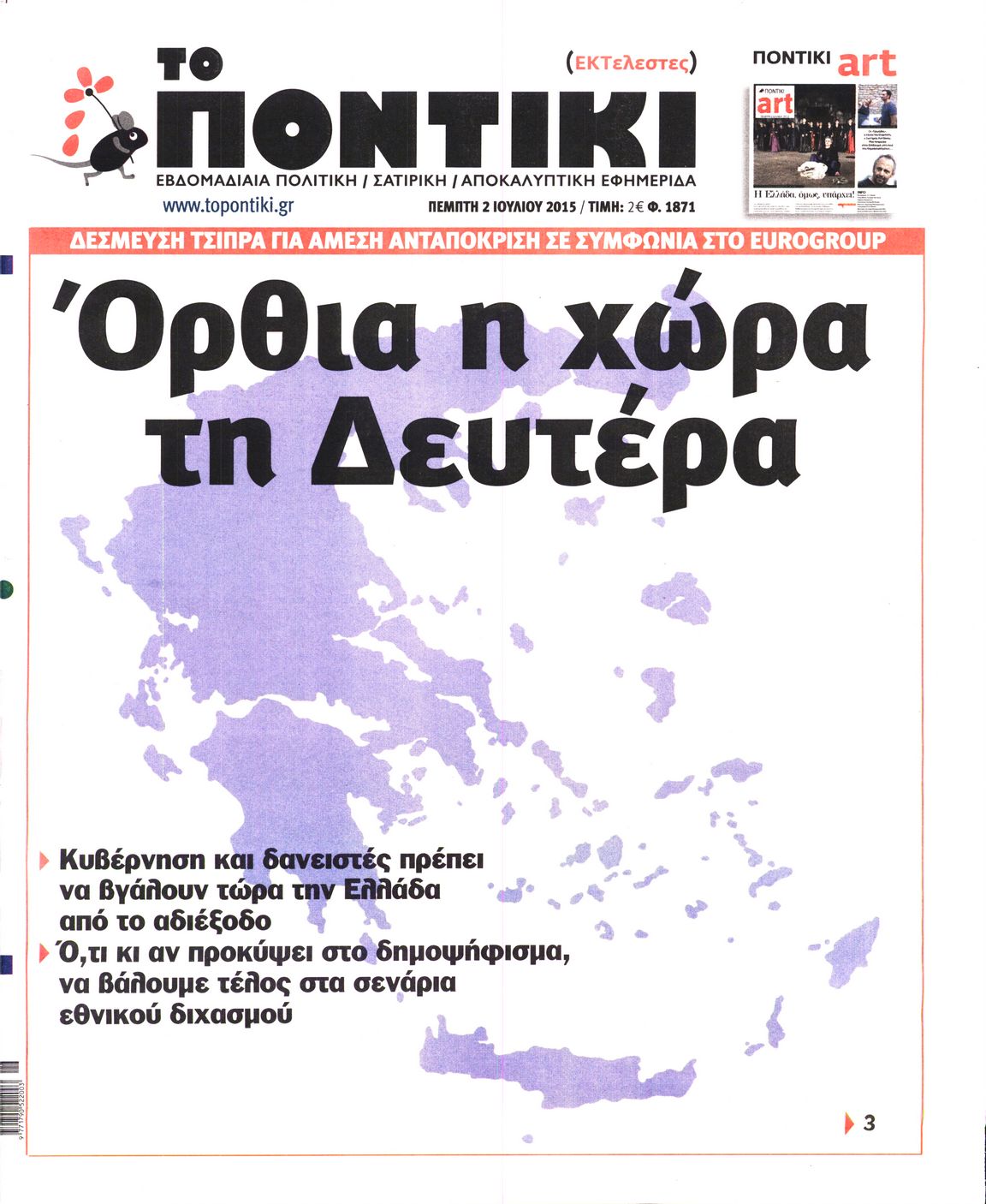 Το Ποντίκι σήμερα 2/7/2015 Enikos Newsroom 06:48, Πέμπτη 02 Ιουλίου 2015 Media Διαβάστε το σημερινό πρωτοσέλιδο της εφημερίδας ”Το Ποντίκι”… ΠΕΜΠΤΗ ΠΟΝΤΙΚΙ ΠΡΩΤΟΣΕΛΙΔΟ ΤΟ ΠΟΝΤΙΚΙ Μοιράσου το: σχολίασε κι εσύ (0 σχόλια) Ακολουθήστε το enikos.gr στο Google News και μάθετε πρώτοι όλες τις ειδήσεις Δείτε όλες τις τελευταίες ειδήσεις από την Ελλάδα και τον Κόσμο στο enikos.gr Ειδήσεις Ροή Ειδήσεων 47 λεπτά πριν «Το τέλος που είχαν όλες τους, είναι τραγικό»: Οι ιστορίες των 5 εργατριών που έχασαν την ζωή τους στο εργοστάσιο «Βιολάντα» 1 ώρα πριν ΗΠΑ: Περισσότεροι από 30 νεκροί λόγω της κακοκαιρίας με χιόνι έως 50 εκατοστά – Ανοιχτά καταφύγια στη Νέα Υόρκη, 548.000 σπίτια και επιχειρήσεις χωρίς ρεύμα 3 ώρες πριν Τουρκία: Εκνευρισμός στην Άγκυρα για το σχέδιο «Made in Europe» της ΕΕ – Επιστολή του Ερντογάν στη Φον ντερ Λάιεν προειδοποιεί για επιπτώσεις 3 ώρες πριν Ρευματοκλοπές: «Έχουν εισπραχθεί 150 εκατ. ευρώ από τους ελέγχους» λέει ο Παπασταύρου – Πώς λειτουργεί ο ειδικός λογαριασμός για τους συνεπείς καταναλωτές 2 ώρες πριν Σουμάχερ: Δεν είναι κατάκοιτος και «αντιλαμβάνεται κάποια πράγματα» – Κανόνες «ομερτά» στη βίλα όπου διαμένει για να μην παραβιαστεί η ιδιωτικότητά του 2 ώρες πριν Οι άνθρωποι που βάζουν το χρήμα πάνω από τις σχέσεις, συνήθως έχουν αυτά 8 χαρακτηριστικά και δεν το συνειδητοποιούν 5 ώρες πριν Τα 3 ζώδια που εισέρχονται σε μια νέα εποχή αφθονίας – «Το σωστό timing και οι γνωριμίες σας βοηθούν να αλλάξετε πίστα» 6 ώρες πριν Οι γονείς του ήταν φτωχοί και δεν μπορούσαν να στηρίξουν τα 4 παιδιά τους – «Τα αδέλφια μου κατηγορούν εμένα για τις οικονομικές μας δυσκολίες» 3 ώρες πριν Απώλεια βάρους: Πώς ένας 31χρονος έχασε 95 κιλά χωρίς ενέσεις αδυνατίσματος – «Πρέπει να είσαι υγιής, όχι απλά αδύνατος» 5 λεπτά πριν Ιράν: Αναφορές για έκρηξη σε στρατιωτική εγκατάσταση πυρηνικών όπλων – Στο φόντο η αυξημένη ένταση με τις ΗΠΑ 12 λεπτά πριν Βουλή: «Όχι» στην άρση ασυλίας του Δημήτρη Κουτσούμπα εισηγείται η Επιτροπή Δεοντολογίας – Υπέρ της άρσης για Μάντζο 17 λεπτά πριν ΗΠΑ: Συνελήφθη CEO φιλανθρωπικής οργάνωσης που καταχράστηκε 23 εκατ. δολάρια – Έκανε πολυτελή ζωή και αγόρασε εξοχικό στην Ελλάδα 23 λεπτά πριν Δούκας στον Realfm 97,8: Πολιτική αλλαγή δεν μπορεί να γίνει, εάν δεν είναι πρώτο κόμμα το ΠΑΣΟΚ 30 λεπτά πριν Θεσσαλονίκη: «Δίπλωσε» νταλίκα στην Περιφερειακό Οδό – Διακοπή κυκλοφορίας προς τα δυτικά ENIKOS NETWORK Άδωνις Γεωργιάδης: Ταχύτερη έλευση καινοτόμων φαρμάκων, αύξηση 30% στις αμοιβές γιατρών ΕΟΠΥΥ και 5.000 προσλήψεις στο ΕΣΥ Μακροζωία: Οι κρεατοφάγοι είναι πιο πιθανό να φτάσουν τα 100, σύμφωνα με μελέτη Δήμος προσλαμβάνει 23 άτομα: Οι ειδικότητες και η προθεσμία για τις αιτήσεις Χρηματιστήριο Αθηνών: Σε νέα υψηλά 16 ετών ο Γενικός Δείκτης Τιμών Σοκ: Πέθανε 24χρονος έπειτα από αποτυχημένη μεταμόσχευση γενιού στην Τουρκία – Την επέμβαση έκανε μεσίτης που προσποιείτο τ... Τεστ παρατηρητικότητας: Μπορείτε να βρείτε τις 3 διαφορές στις εικόνες με ένα κορίτσι σε 18 δευτερόλεπτα περισσότερα 13:37 , Τρίτη 27 Ιανουαρίου 2026 Ελένη Σπανοπούλου για Ιάσονα Τριανταφυλλίδη: Ενας χρόνος από τον θάνατό του Ανάρτηση για τη συμπλήρωση ενός έτους από τον θάνατο του Ιάσονα Τριανταφυλλίδη έκανε η δημοσιο... 12:25 , Τρίτη 27 Ιανουαρίου 2026 Ακούστε την εκπομπή του Νίκου Χατζηνικολάου 27/1/2026 Ακούστε την εκπομπή του Νίκου Χατζηνικολάου στον ραδιοφωνικό σταθμό RealFm 97,8, την Τρίτη 27 ... 12:10 , Τρίτη 27 Ιανουαρίου 2026 Βραβεία Tony 2026: Ανα
