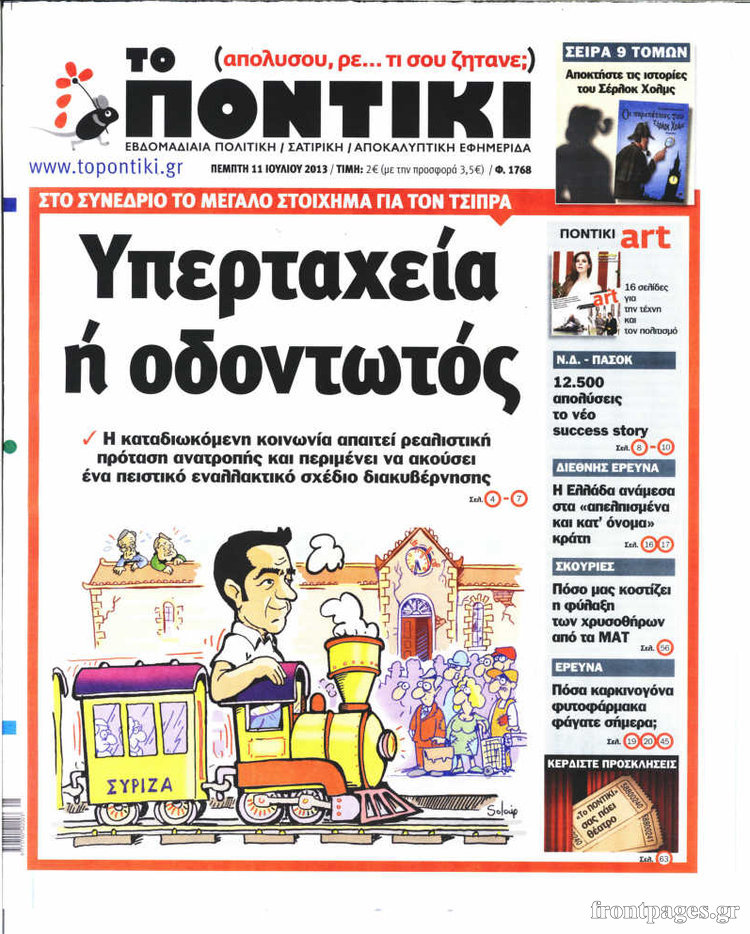 Το Ποντίκι σήμερα Enikos Newsroom 08:55, Πέμπτη 11 Ιουλίου 2013 Media Το Ποντίκι σήμερα Δείτε το σημερινό πρωτοσέλιδο της εφημερίδας Το Ποντίκι: ΕΦΗΜΕΡΙΔΕΣ ΠΡΩΤΟΣΕΛΙΔΑ ΤΟ ΠΟΝΤΙΚΙ Μοιράσου το: σχολίασε κι εσύ (0 σχόλια) Ακολουθήστε το enikos.gr στο Google News και μάθετε πρώτοι όλες τις ειδήσεις Δείτε όλες τις τελευταίες ειδήσεις από την Ελλάδα και τον Κόσμο στο enikos.gr Ειδήσεις Ροή Ειδήσεων 1 ώρα πριν Έρευνα MRB: Η πρόθεση ψήφου και τα σημαντικότερα προβλήματα – Οι «λέξεις» που εκφράζουν τους πολίτες 1 ώρα πριν Αλαλούμ με τις πληρωμές στους αγρότες: Δεν καταβλήθηκε η Βασική Ενίσχυση, αλλά έγινε παρακράτηση της εισφοράς στον ΕΛΓΑ – Τι απαντά η κυβέρνηση 2 ώρες πριν Ανδρέας Παναγιωτόπουλος: Δεν ψήφισε στον προϋπολογισμό για να πάει στην εκδήλωση του Αλέξη Τσίπρα – «Μείζονος πολιτικής σημασίας η μεγάλη συγκέντρωση που έκανε» 3 ώρες πριν Ρομπ Ράινερ: Το δείπνο με τους Ομπάμα που δεν έγινε ποτέ και νέα στοιχεία για τον «καβγά» στο πάρτι – Βίντεο με τον γιο του να περιφέρεται κοντά στο σπίτι της τραγωδίας 2 ώρες πριν Κυψέλη: Μαθητές κλείδωσαν τους καθηγητές μέσα στο Γυμνάσιο μετά την επίθεση με μαχαίρι 57 λεπτά πριν Τα 4 ζώδια που ξαναβρίσκουν τον εαυτό τους – «Μπαίνετε επιτέλους στην ουσία των πραγμάτων» 5 ώρες πριν Οπτική ψευδαίσθηση: Μόνο αν είσαι ο Σέρλοκ Χολμς θα βρεις τον σκύλο σε 15 δευτερόλεπτα 3 ώρες πριν Νεολιθικός σκύλος βρέθηκε προσεκτικά θαμμένος στον βυθό λίμνης – Δίπλα του βρέθηκε ένα στιλέτο 2 ώρες πριν Έλαβε τελεσίγραφο από τη σύντροφό του – «Μου είπε πως ή θα της κάνω πρόταση στα δύο χρόνια σχέσης ή θα με χωρίσει» 2 λεπτά πριν ΕΕ: Συνάντηση με τους ηγέτες των Δυτικών Βαλκανίων πριν από τη Σύνοδο Κορυφής – Οι χώρες που έχουν προβάδισμα ένταξης 7 λεπτά πριν Θεσσαλονίκη: Έξι λεωφορειακές γραμμές σε 24ωρη λειτουργία μέσα στις γιορτές 12 λεπτά πριν Ταλαιπωρία για επιβάτες του Προαστιακού λόγω τεχνικού προβλήματος – Αμαξοστοιχία έφτασε στον προορισμό της με καθυστέρηση 87 λεπτών 17 λεπτά πριν Εξεταστική ΟΠΕΚΕΠΕ – Μυλωνάκης: «Ουδέποτε είχα πληροφόρηση ή ενημέρωσα οποιονδήποτε για επισυνδέσεις της δικογραφίας» 22 λεπτά πριν «Δεν είχα κλάψει από τότε που διαγνώστηκα με καρκίνο, ώσπου ένα τηλεφώνημα με έκανε να λυγίσω» – Η συγκλονιστική εξομολόγηση ενός άνδρα ENIKOS NETWORK Ανησυχητική αύξηση της υπέρτασης στα παιδιά – Πώς θα τα προστατέψουμε; Αδενώματα Υπόφυσης: Μια πάθηση καλοήθης, αλλά όχι αθώα ΕΕ: Γιατί η Ελλάδα ξεχωρίζει στις ασφαλείς συναλλαγές-πληρωμές στην ΕΕ Ειδικό επιδοτούμενο πρόγραμμα κατάρτισης της ΔΥΠΑ για ανέργους: Αρχίζει σήμερα η υποβολή ενστάσεων-Ποιους αφορά Σύγχρονος Νοστράδαμος: Προειδοποιεί για «μεγάλο γεγονός» τους επόμενους μήνες που θα συγκλονίσει τη Βρετανία και τον κόσμο Τεστ παρατηρητικότητας: Μπορείτε να βρείτε τις 3 διαφορές στις εικόνες με έναν πιγκουίνο σε 14 δευτερόλεπτα περισσότερα 09:08 , Τετάρτη 17 Δεκεμβρίου 2025 Τηλεθέαση (16/12): Ανακατατάξεις στην πρωινή ψυχαγωγική ζώνη Ξεκάθαρη πρωτιά στην τηλεθέαση για την «Super Κατερίνα» στο δυναμικό κοινό με ποσοστό 18,5%, α... 08:00 , Τετάρτη 17 Δεκεμβρίου 2025 Την Κυριακή με τη Realnews: Δωροεπιταγή 10€ Δωροεπιταγή αξίας 10€ για αγορές άνω των 60€ από τα πολυκαταστήματα FactoryOutlet H προσφορά ι... 07:00 , Τετάρτη 17 Δεκεμβρίου 2025 Την Κυριακή με τη Realnews: Ό,τι και αν αγοράσεις, σκανάρεις και κερδίζεις! Την Κυριακή με τη Realnews: Ό,τι και αν αγοράσεις, σκανάρεις και κερδίζεις! Με το PADU app, το... 05:48 , Τετάρτη 17 Δεκεμβρίου 2025 Οι οικονομ