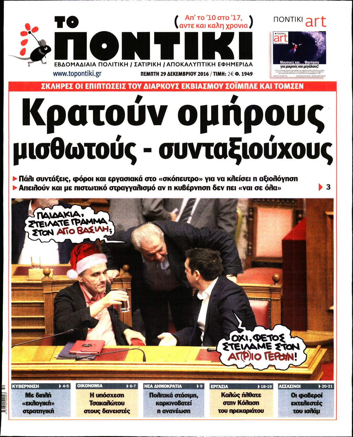 Το Ποντίκι σήμερα 29/12/2016 Enikos Newsroom 02:00, Πέμπτη 29 Δεκεμβρίου 2016 Media Διαβάστε το σημερινό πρωτοσέλιδο της εφημερίδας “Το Ποντίκι”: ΠΡΩΤΟΣΕΛΙΔΟ ΤΟ ΠΟΝΤΙΚΙ Μοιράσου το: σχολίασε κι εσύ (0 σχόλια) Ακολουθήστε το enikos.gr στο Google News και μάθετε πρώτοι όλες τις ειδήσεις Δείτε όλες τις τελευταίες ειδήσεις από την Ελλάδα και τον Κόσμο στο enikos.gr Ειδήσεις Ροή Ειδήσεων 1 ώρα πριν Αυτή είναι η λίστα με τα αιτήματα των αγροτών – Το «όχι» στη συνάντηση στο Μαξίμου και η έκκληση της κυβέρνησης για διάλογο με ανοιχτούς δρόμους 1 ώρα πριν Κρήτη: Θρίλερ με την εξαφάνιση του 33χρονου γιατρού – «Μου είπε “έλα πατέρα να μιλήσουμε γιατί δεν είμαι καλά”» 6 ώρες πριν ΟΠΕΚΕΠΕ – Παράνομες επιδοτήσεις: Τα 4 ΚΥΔ, οι 11 τραπεζικοί λογαριασμοί και οι ψευδείς αιτήσεις – Πεθαμένος «έκανε» αναλήψεις, 16 συλλήψεις 5 ώρες πριν Η «Άγρια Δύση» της δωρεάς σπέρματος: Τεράστια μπίζνα ύψους 2 δισ. δολαρίων – Τα «μωρά των Βίκινγκ» και η ανάγκη για όρια 3 ώρες πριν Μερτς: «Δεν ζούμε σε πόλεμο, αλλά, πλέον, ούτε και σε ειρήνη μόνο» – «Αν πέσει η Ουκρανία» στο στόχαστρο της Ρωσίας θα τεθεί η ΕΕ 4 ώρες πριν Το φινάλε του 2025 θα είναι μαγικό για 5 ζώδια – «Προαγωγές και νέες σχέσεις που θα διαρκέσουν μια ζωή» 8 ώρες πριν Ασθενής με νόσο του Crohn μοιράζεται τα 5 πράγματα που εύχεται να γνώριζε νωρίτερα για την πάθηση – «Τα συμπτώματα δεν περιορίζονται στο έντερο» 8 ώρες πριν Αυτές είναι οι 8 καθημερινές λέξεις που αποκαλύπτουν ότι είστε πιο έξυπνος από το 95% των ανθρώπων 10 ώρες πριν Ο σύντροφός της θέλει να γίνει «νοικοκυρά» στο σπίτι τους μετά τον γάμο – «Περιμένει από εμένα να καλύπτω όλα τα έξοδα» 3 λεπτά πριν Αργυρούπολη: Απείλησε με… τσεκούρι άλλον οδηγό ύστερα από καβγά – Στο αυτοκίνητό του βρέθηκε και αεροβόλο 11 λεπτά πριν Ελένη Χατζίδου για Τούνη – Αλεξάνδρου: «Σε αυτή την μάχη δεν υπάρχει νικητής» 19 λεπτά πριν ΗΠΑ: Οι πολίτες πιστεύουν ότι ο Τραμπ γνώριζε για τις παράνομες πράξεις του Επστάιν – Τι δείχνουν 2 δημοσκοπήσεις 27 λεπτά πριν Βουλή: Πυρά της αντιπολίτευσης με αιχμή τις αγροτικές κινητοποιήσεις – «Ο διάλογος που λέει η κυβέρνηση είναι προσχηματικός» – «Σταματήστε να ρίχνετε λάδι στη φωτιά» 35 λεπτά πριν Γιατί δεν είστε ευτυχισμένοι: Τα 7 σημάδια που μαρτυρούν ότι αναζητάτε την πηγή της χαράς σε λάθος μέρη ENIKOS NETWORK «Με αυτόν τον τρόπο κατάφερα να απογειώσω τη σεξουαλική μου ζωή» – Τι αποκαλύπτει 40χρονη Πείτε «τέλος» στην ακμή χωρίς φάρμακα – Ειδικός αποκαλύπτει αποτελεσματική ρουτίνα περιποίησης Χριστούγεννα: Πόσο κοστίζει το φετινό τραπέζι για 4 άτομα – Αναλυτικά οι τιμές σε βασικά είδη Στάση εργασίας στα λεωφορεία την Τετάρτη – Ποια δρομολόγια θα εκτελούνται κανονικά Σύγχρονος Νοστράδαμος: Προειδοποιεί για «μεγάλο γεγονός» τους επόμενους μήνες που θα συγκλονίσει τη Βρετανία και τον κόσμο Τεστ παρατηρητικότητας: Μπορείτε να βρείτε τις 3 διαφορές στις εικόνες με έναν πιγκουίνο σε 14 δευτερόλεπτα περισσότερα 18:00 , Σάββατο 13 Δεκεμβρίου 2025 Η Realnews στο www.pressreader.com Διαβάστε την ψηφιακή έκδοση της εφημερίδας στην οθόνη του κινητού, του tablet και του υπολογισ... 15:46 , Σάββατο 13 Δεκεμβρίου 2025 Τηλεθέαση (12/12): Ποιες εκπομπές της πρωινής ζώνης πήραν προβάδισμα την Παρασκευή; Συνεχίστηκε η «μάχη» στην πρωινή ζώνη την Παρασκευή 12 Δεκεμβρίου, όπως φαίνεται και στους πίν... 13:50 , Σάββατο 13 Δεκεμβρίου 2025 Η Realnews αυτής της Κυριακής Με τίτλο: «”Ενέσεις” ρευστότητας στους αγρότες» κυκλοφορεί, αυτήν την Κυρια