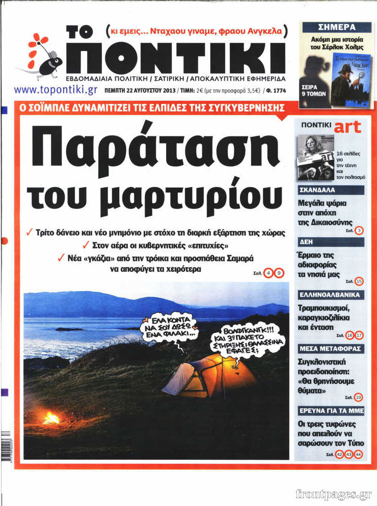 Το Ποντίκι σήμερα Enikos Newsroom 09:35, Πέμπτη 22 Αυγούστου 2013 Media Μοιράσου το: σχολίασε κι εσύ (0 σχόλια) Ακολουθήστε το enikos.gr στο Google News και μάθετε πρώτοι όλες τις ειδήσεις Δείτε όλες τις τελευταίες ειδήσεις από την Ελλάδα και τον Κόσμο στο enikos.gr Ειδήσεις Ροή Ειδήσεων 2 ώρες πριν Δολοφονία στην Κρήτη: «Τον σκότωσα» είπε στους αστυνομικούς – Ο ξυλοδαρμός πριν το μαχαίρωμα και ο καβγάς για τα κλειδιά του αυτοκινήτου 2 ώρες πριν Καιρός: Νέο έκτακτο από την ΕΜΥ – Οι περιοχές που βρίσκονται στο επίκεντρο της κακοκαιρίας μέχρι το απόγευμα 50 λεπτά πριν Δολοφονία στην Αλεξανδρούπολη: Δέχθηκε 16 μαχαιριές ο 84χρονος – Αύριο στον εισαγγελέα οι δύο ανήλικοι και ο 21χρονος 3 ώρες πριν Κυριάκος Μητσοτάκης: Οι πολίτες επιθυμούν μια Ελλάδα εθνικής αυτοπεποίθησης και όχι εθνικής υστερίας 1 ώρα πριν «Πνίγηκε» από την αφρικανική σκόνη η Αθήνα – Δείτε φωτογραφίες 4 ώρες πριν Νέα αρχή για 3 ζώδια από σήμερα, 15 Φεβρουαρίου 2026 – «Τέλος οι παλιοί κανόνες, αναμένεται μια σημαντική ανατροπή» 5 ώρες πριν Η δηλητηρίαση από μόλυβδο οδήγησε στην πτώση της Ρωμαϊκής Αυτοκρατορίας; Επιστήμονες καταρρίπτουν τη θεωρία και εξηγούν γιατί 5 ώρες πριν Έβγαινε με έναν τύπο που παρίστανε τον πάμπλουτο – «Έλεγε ότι έχει 3 σπίτια και τελικά ήταν ένας μεσίτης και με δούλευε» 3 ώρες πριν «Αποφεύγω 9 τροφές και φαίνομαι 30 χρόνια νεότερος από την ηλικία μου» – Άνδρας αποκαλύπτει την ρουτίνα αντιγήρανσης που ακολουθεί 9 λεπτά πριν Τζουμέρκα: Υποχώρησε επαρχιακός δρόμος – «Από θαύμα δεν θρηνήσαμε θύματα» λέει ο δήμαρχος 17 λεπτά πριν ΚΚΕ για ανάρτηση Μητσοτάκη: Συνεχίζει στη γνωστή τακτική της ωραιοποίησης και του εφησυχασμού 25 λεπτά πριν Το σόι σου – Γιώργος Γιαννόπουλος: «Το ότι το κανάλι αλλάζει τις μέρες, χαλάει την τηλεθέαση και μπερδεύει τον κόσμο» 34 λεπτά πριν Συναγερμός στον Πειραιά: Κρουαζιερόπλοιο με 3.000 επιβαίνοντες έμεινε ακυβέρνητο την ώρα που έμπαινε στο λιμάνι 42 λεπτά πριν Κωνσταντοπούλου για Γεωργιάδη: Μιλάμε για παρακράτος – Αποκαλύφθηκε ότι υπάρχει θύλακας αστυνομικών με τον οποίο είναι σε επαφή ENIKOS NETWORK Έντομα, 3D γεύματα, πρωτεΐνη από αέρα και άλλα 12 τρόφιμα που θα τρώμε στο κοντινό μέλλον Παιδικός καρκίνος: Ένα παιδί διαγιγνώσκεται με καρκίνο κάθε μέρα Πλειστηριασμοί: Για ποια ακίνητα… χτυπά το ηλεκτρονικό σφυρί έως και τις 3 Ιουνίου – Ζητούν περισσότερες δόσεις για τη ρύθμ... ΕΝΦΙΑ 2026: Τέλος χρόνου για την έκπτωση – Τι πρέπει να κάνουν όσοι δικαιούνται μειωμένο φόρο Ευπάθεια στο moltbook ai αποκαλύπτει email, tokens σύνδεσης και api keys Αυτός είναι ο ρόλος της μικρής τρύπας στους νυχοκόπτες – «Είμαι ο μόνος που δεν το ήξερε;»» περισσότερα 09:59 , Κυριακή 15 Φεβρουαρίου 2026 Τηλεθέαση (14/2): Τι νούμερα έκανε στην πρεμιέρα του το J2US Πρεμιέρα είχε χθες το J2US και έδωσε την πρώτη μάχη για την τηλεθέαση. Το μουσικό σόου με παρο... 08:47 , Κυριακή 15 Φεβρουαρίου 2026 Η ταινία θρίλερ που μπορείς να απολαύσεις αυτό το Σαββατοκύριακο, διαρκεί μόνο 1 ώρα και 30 λεπτά Πόσο εύκολο είναι άραγε το να μπει κανείς στο στόχαστρο ενός δολοφόνου; Πώς μπορείς να σωθείς ... 08:38 , Κυριακή 15 Φεβρουαρίου 2026 Eurovision: Γνωστοί Έλληνες τραγουδιστές που έχουν λάβει μέρος σε Εθνικούς Τελικούς Σε λίγες ώρες θα μάθουμε ποιος θα είναι ο καλλιτέχνης που θα εκπροσωπήσει τη χώρα μας στον φετ... 07:50 , Κυριακή 15 Φεβρουαρίου 2026 Porto Leone: Στη γειτονιά με τα κόκκινα φανάρια – Η Γαλήνη, με ένα πιστόλι στο χέρι, χτυπά την πόρτα της Αλεξάνδρας Οι δύο γυναίκε