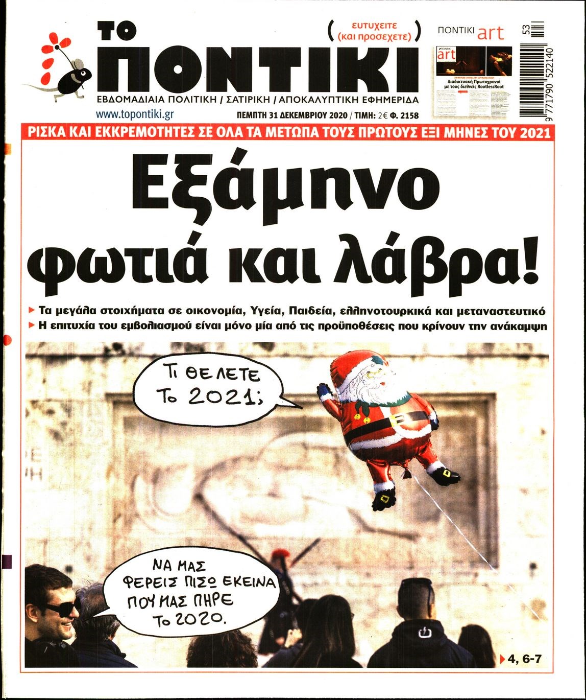 Το Ποντίκι σήμερα 31/12/2020 Διονύσης Νίκκας 07:50, Πέμπτη 31 Δεκεμβρίου 2020 Media Διαβάστε το πρωτοσέλιδο της εφημερίδας “Το Ποντίκι”… ΠΡΩΤΟΣΕΛΙΔΟ ΤΟ ΠΟΝΤΙΚΙ Μοιράσου το: σχολίασε κι εσύ (0 σχόλια) Ακολουθήστε το enikos.gr στο Google News και μάθετε πρώτοι όλες τις ειδήσεις Δείτε όλες τις τελευταίες ειδήσεις από την Ελλάδα και τον Κόσμο στο enikos.gr Ειδήσεις Ροή Ειδήσεων 3 ώρες πριν Παράνομες επιδοτήσεις 1,7 εκατ. ευρώ στον ΟΠΕΚΕΠΕ: Πώς έστησε την κομπίνα η εγκληματική οργάνωση – Οι ρόλοι, οι βαριές κατηγορίες και οι… κουμπαριές 3 ώρες πριν Αγρότες: Εν αναμονή της πανελλαδικής σύσκεψης στη Νίκαια το Σάββατο – Η διαμαρτυρία με σανό στη Λάρισα και η κινητοποίηση στο λιμάνι της Θεσσαλονίκης 3 ώρες πριν Η απόφαση της ΕΕ να παγώσει επ’ αόριστον τα ρωσικά περιουσιακά στοιχεία και το μυστικό πίσω από τις αντιδράσεις στο να γίνουν δάνειο στην Ουκρανία 3 ώρες πριν Φοινικούντα: «Όταν τελειώσει αυτό, θα δεις τι έχεις να πάθεις» έλεγε ο ανιψιός στην ξαδέλφη του πριν συλληφθεί – Το τρίτο πρόσωπο με την πολυτελή ζωή και τα κότερα 2 ώρες πριν Μπαρτσελόνα – Ολυμπιακός 98-85: Παραδόθηκε… άνευ όρων 4 ώρες πριν Ύπνος: Πώς η σωστή διαρρύθμιση των επίπλων στο υπνοδωμάτιο μπορεί να σας βοηθήσει να κοιμάστε καλά 5 ώρες πριν Αριθμολογία: Ποιος είναι ο ιδανικός σύντροφος για εσάς, ανάλογα με την ημερομηνία γέννησής σας 6 ώρες πριν Σφουγγάρι πιάτων: Πόσο συχνά πρέπει να το απολυμαίνετε – Η πιο εύκολη και αποτελεσματική μέθοδος 3 ώρες πριν Πέτρινη σαρκοφάγος αναδύθηκε έπειτα από υποχώρηση υδάτων σε μεγάλο φράγμα – Η δύσκολη επιχείρηση μεταφοράς και η άγνωστη κληρονομιά 22 λεπτά πριν Γιώργος Τσαλίκης: Διέκοψε συναυλία του γιατί νόμιζε ότι τον σημαδεύουν με όπλο – «Λέω “μ@λ@@α έτσι θα πεθάνω”» 37 λεπτά πριν Γιώργος Μπαρτζώκας: «Παίξαμε κάτω από το επίπεδό μας» 52 λεπτά πριν ΗΠΑ: Έφοδος αμερικανικών δυνάμεων σε πλοίο στον Ινδικό Ωκεανό, το οποίο ταξίδευε από την Κίνα προς το Ιράν 1 ώρα πριν Πετράλωνα: 44χρονος κυκλοφορούσε με κάρτα αστυνομικού, πιστόλι και μαχαίρι 1 ώρα πριν Ρωσία: 155.368 νεκροί στρατιωτικοί στον πόλεμο της Ουκρανίας – Εθελοντές το 30% των θυμάτων ENIKOS NETWORK 6 σοβαροί λόγοι που πρέπει να βάλετε παπλωματοθήκη απόψε πριν κοιμηθείτε ΣΦΕΕ: Ευρωπαϊκή φαρμακευτική μεταρρύθμιση- Σημαντικό βήμα αλλά όχι αρκετό για την ενίσχυση της καινοτομίας ΑΑΔΕ: Νέα σημαντική μείωση του κενού ΦΠΑ στην Ελλάδα – Υποχώρησε 61% σε έξι χρόνια Ανοιχτή επιστολή παραγωγικών φορέων για τις αγροτικές κινητοποιήσεις – Τι ζητούν Σύγχρονος Νοστράδαμος: Προειδοποιεί για «μεγάλο γεγονός» τους επόμενους μήνες που θα συγκλονίσει τη Βρετανία και τον κόσμο Τεστ παρατηρητικότητας: Μπορείτε να βρείτε τις 3 διαφορές στις εικόνες με έναν πιγκουίνο σε 14 δευτερόλεπτα περισσότερα 18:30 , Παρασκευή 12 Δεκεμβρίου 2025 «Τρομεροί γονείς»: Αυτό το Σάββατο 13/12 στις 20:00 με διπλό επεισόδιο Η Λουκία ετοιμάζεται να παντρευτεί τον Χάρη, ο Στέφανος έχει τις αντιρρήσεις του, η Ναταλία δε... 17:40 , Παρασκευή 12 Δεκεμβρίου 2025 GNTM: Η Δέσποινα Μοιραράκη είναι η καλεσμένη έκπληξη, απόψε στις 21:00 στο Star Στο προηγούμενο επεισόδιο (Τετάρτη 10/12) η Άννα Μιχαηλίδου, ήταν αυτή που αποχώρησε από το GN... 14:45 , Παρασκευή 12 Δεκεμβρίου 2025 Το σόι σου: Το δράμα του Σάββα και οι αποκαλύψεις των Ζουζουνέλ Ο Σάββας δυσκολεύεται να δεχθεί ότι οι κόρες του έχουν πια μεγαλώσει, ενώ οι Ζουζουνέλ αποφασί... 14:20 , Παρασκευή 12 Δεκεμβρίου 2025 Μια Νύχτα Μόνο: Η Αρετή εξοργίζεται με μια πρωτ