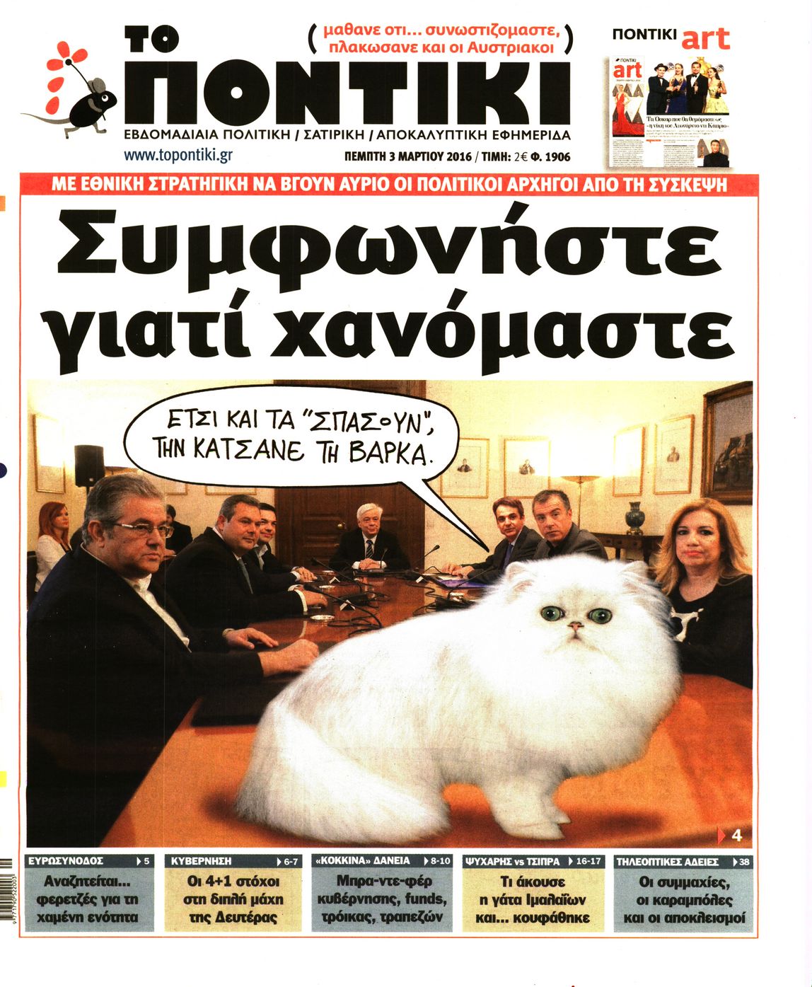 Το Ποντίκι σήμερα 3/3/2016 Enikos Newsroom 07:12, Πέμπτη 03 Μαρτίου 2016 Media Διαβάστε το σημερινό πρωτοσέλιδο της εφημερίδας ”Το Ποντίκι”. ΕΦΗΜΕΡΙΔΑ ΠΡΩΤΟΣΕΛΙΔΟ ΤΟ ΠΟΝΤΙΚΙ Μοιράσου το: σχολίασε κι εσύ (0 σχόλια) Ακολουθήστε το enikos.gr στο Google News και μάθετε πρώτοι όλες τις ειδήσεις Δείτε όλες τις τελευταίες ειδήσεις από την Ελλάδα και τον Κόσμο στο enikos.gr Ειδήσεις Ροή Ειδήσεων 3 ώρες πριν Αυτή είναι η λίστα με τα αιτήματα των αγροτών – Το «όχι» στη συνάντηση στο Μαξίμου και η έκκληση της κυβέρνησης για διάλογο με ανοιχτούς δρόμους 1 ώρα πριν Απάτες με επιδοτήσεις από τον ΟΠΕΚΕΠΕ στην Κρήτη: Ξεκίνησε η μεταγωγή των 16 συλληφθέντων στην Αθήνα – Τι λένε οι δικηγόροι τους 3 ώρες πριν Κρήτη: Θρίλερ με την εξαφάνιση του 33χρονου γιατρού – «Μου είπε “έλα πατέρα να μιλήσουμε γιατί δεν είμαι καλά”» 2 ώρες πριν Αργυρούπολη: Απείλησε με… τσεκούρι άλλον οδηγό ύστερα από καβγά – Στο αυτοκίνητό του βρέθηκε και αεροβόλο 2 ώρες πριν ΗΠΑ: Οι πολίτες πιστεύουν ότι ο Τραμπ γνώριζε για τις παράνομες πράξεις του Επστάιν – Τι δείχνουν 2 δημοσκοπήσεις 2 ώρες πριν Γιατί δεν είστε ευτυχισμένοι: Τα 7 σημάδια που μαρτυρούν ότι αναζητάτε την πηγή της χαράς σε λάθος μέρη 5 ώρες πριν Το φινάλε του 2025 θα είναι μαγικό για 5 ζώδια – «Προαγωγές και νέες σχέσεις που θα διαρκέσουν μια ζωή» 9 ώρες πριν Ασθενής με νόσο του Crohn μοιράζεται τα 5 πράγματα που εύχεται να γνώριζε νωρίτερα για την πάθηση – «Τα συμπτώματα δεν περιορίζονται στο έντερο» 1 ώρα πριν Χριστουγεννιάτικο δέντρο: Το έξυπνο κόλπο με τα στολίδια για να φαίνεται πιο γεμάτο 6 λεπτά πριν Ισραήλ: Η στιγμή που εκτελεί με πύραυλο τον Ραάντ Σαάντ, Νο2 στην ηγεσία της Χαμάς – Πώς δικαιολογεί την νέα παραβίαση της εκεχειρίας 13 λεπτά πριν Κωνσταντοπούλου: Προσωπικά έχω σκίσει πολλά καλσόν – Έχω δώσει πολλές μάχες για τα δικαιώματα για να αφήσω να κακοποιούν την αλήθεια 22 λεπτά πριν Αριθμολογία: Οι άνθρωποι που έχουν γεννηθεί αυτές τις 4 ημερομηνίες, δεν αντέχουν να κάνουν μία κλασική δουλειά γραφείου 25 λεπτά πριν ΗΠΑ: Έψαχνε τον γιο του στο Ground Zero για έξι μήνες – 24 χρόνια αργότερα, η 11η Σεπτεμβρίου τον σκότωσε και αυτόν 33 λεπτά πριν Απάτη στο Ηράκλειο: Προσποιούνταν τον αντιδήμαρχο και ζητούσε χρήματα για παράβολα ENIKOS NETWORK «Με αυτόν τον τρόπο κατάφερα να απογειώσω τη σεξουαλική μου ζωή» – Τι αποκαλύπτει 40χρονη Πείτε «τέλος» στην ακμή χωρίς φάρμακα – Ειδικός αποκαλύπτει αποτελεσματική ρουτίνα περιποίησης Voucher 200 ευρώ: Ποιοι και πώς θα το λάβουν – Οι καταληκτικές ημερομηνίες για τις αιτήσεις και την εξαργύρωση Δώρο Χριστουγέννων: Ποιοι θα πάρουν περισσότερα χρήματα φέτος – Η προθεσμία καταβολής Σύγχρονος Νοστράδαμος: Προειδοποιεί για «μεγάλο γεγονός» τους επόμενους μήνες που θα συγκλονίσει τη Βρετανία και τον κόσμο Τεστ παρατηρητικότητας: Μπορείτε να βρείτε τις 3 διαφορές στις εικόνες με έναν πιγκουίνο σε 14 δευτερόλεπτα περισσότερα 18:00 , Σάββατο 13 Δεκεμβρίου 2025 Η Realnews στο www.pressreader.com Διαβάστε την ψηφιακή έκδοση της εφημερίδας στην οθόνη του κινητού, του tablet και του υπολογισ... 15:46 , Σάββατο 13 Δεκεμβρίου 2025 Τηλεθέαση (12/12): Ποιες εκπομπές της πρωινής ζώνης πήραν προβάδισμα την Παρασκευή; Συνεχίστηκε η «μάχη» στην πρωινή ζώνη την Παρασκευή 12 Δεκεμβρίου, όπως φαίνεται και στους πίν... 13:50 , Σάββατο 13 Δεκεμβρίου 2025 Η Realnews αυτής της Κυριακής Με τίτλο: «”Ενέσεις” ρευστότητας στους αγρότες» κυκλοφορεί, αυτήν την Κυριακή, η R... 12:49 , Σάββατο 13 Δεκεμβρίου 2025 Gr